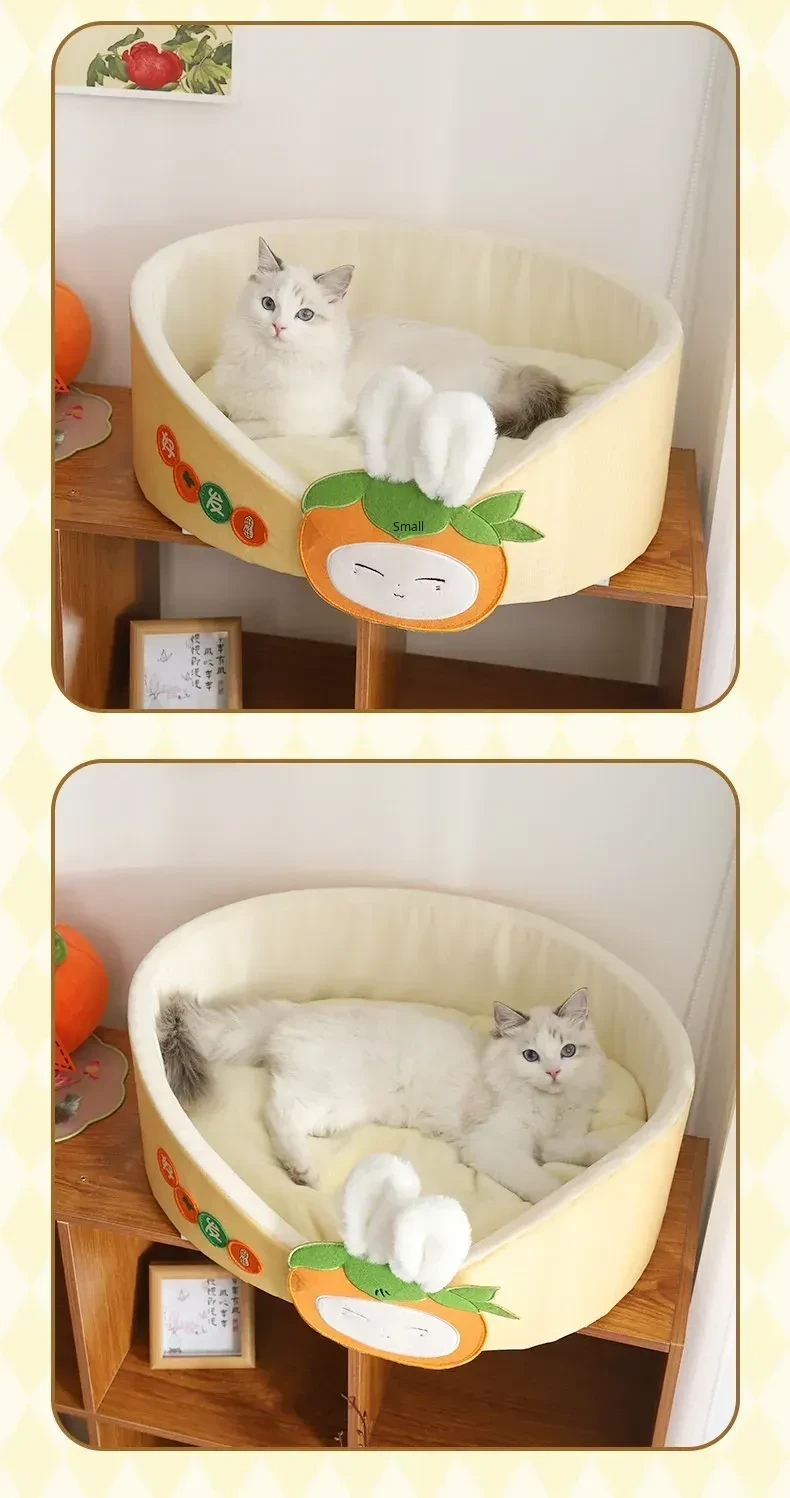 All-Season Cat Bed - Cozy Cat House & Mat for Sleeping, Ideal for Small Dogs - Winter Warmth Pet Bed