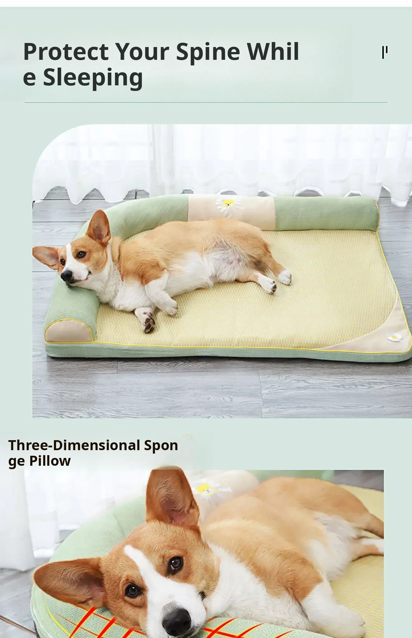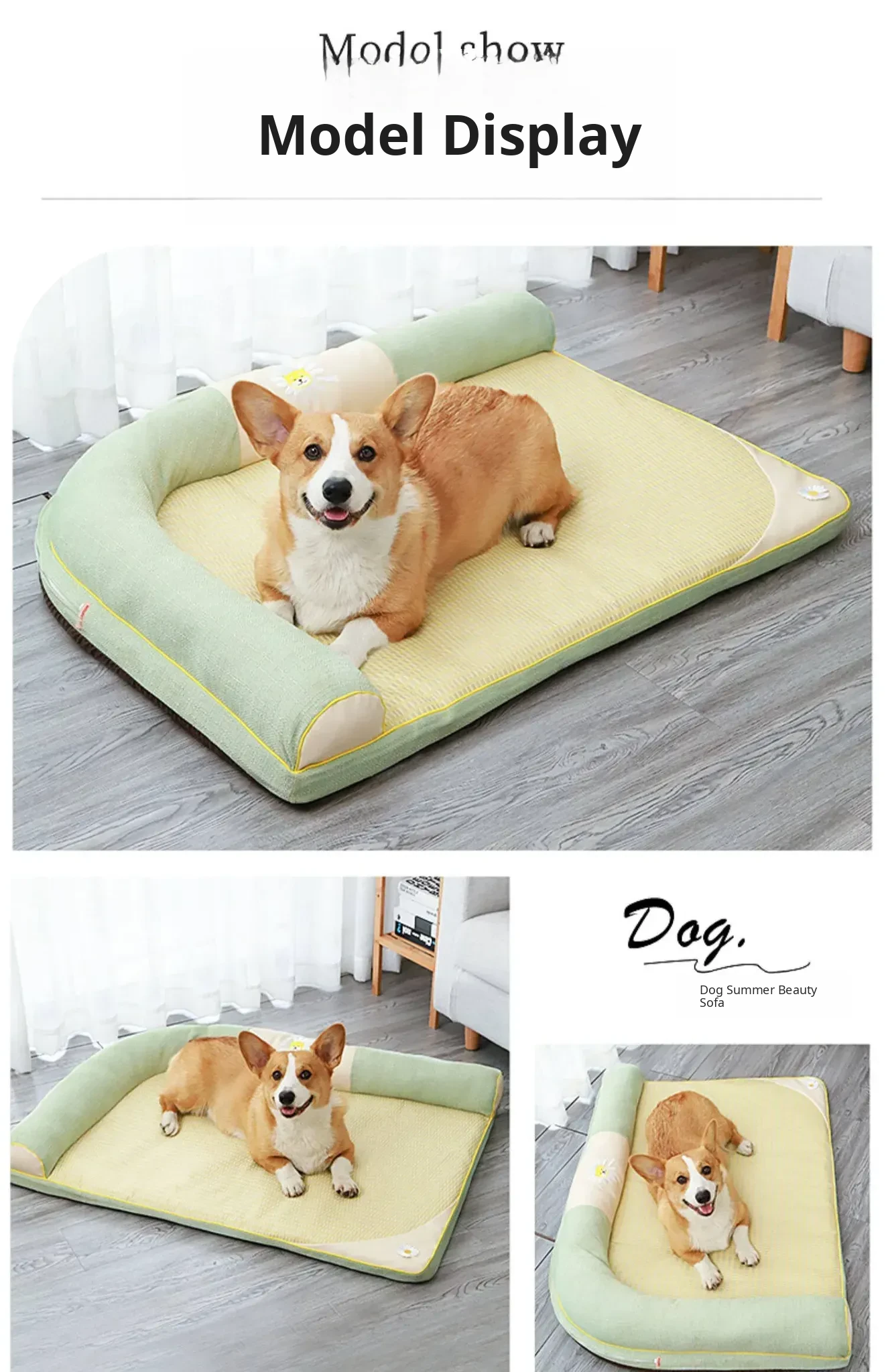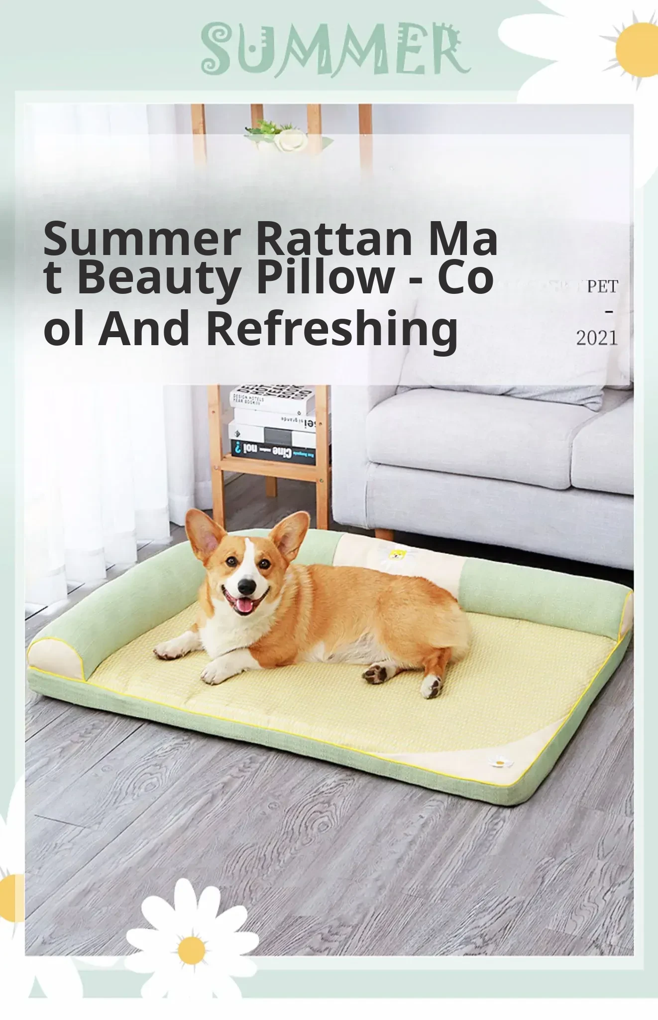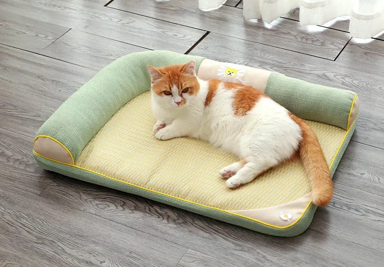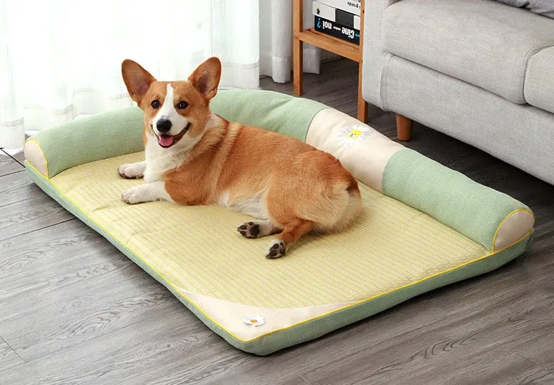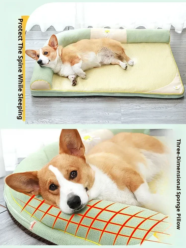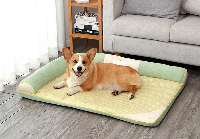 All-Season Dog Bed with Cooling Mat for Summer - Removable and Washable Pet Bed for Corgis and Cats, Perfect for Hot Weather!