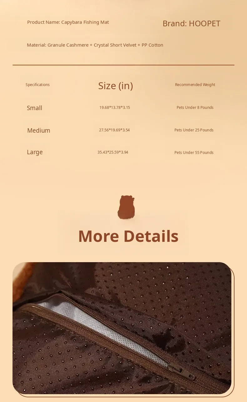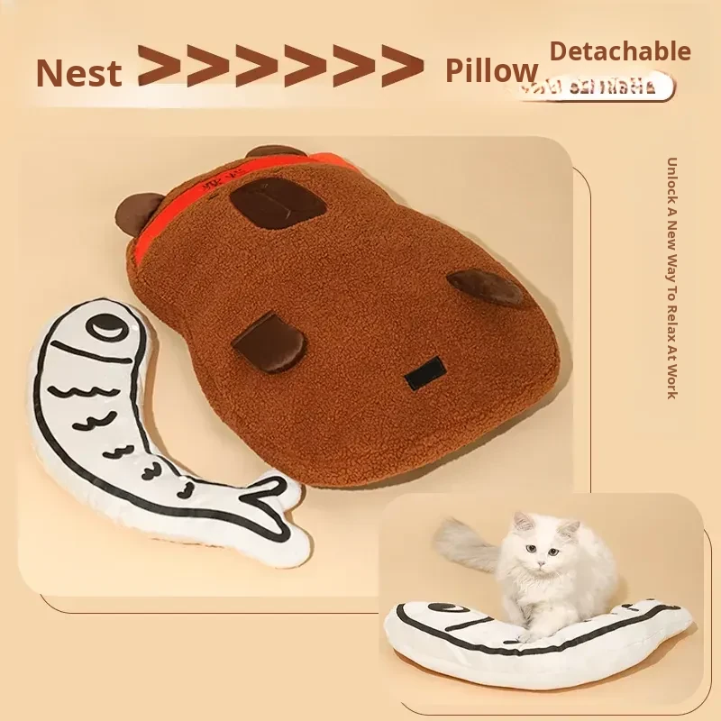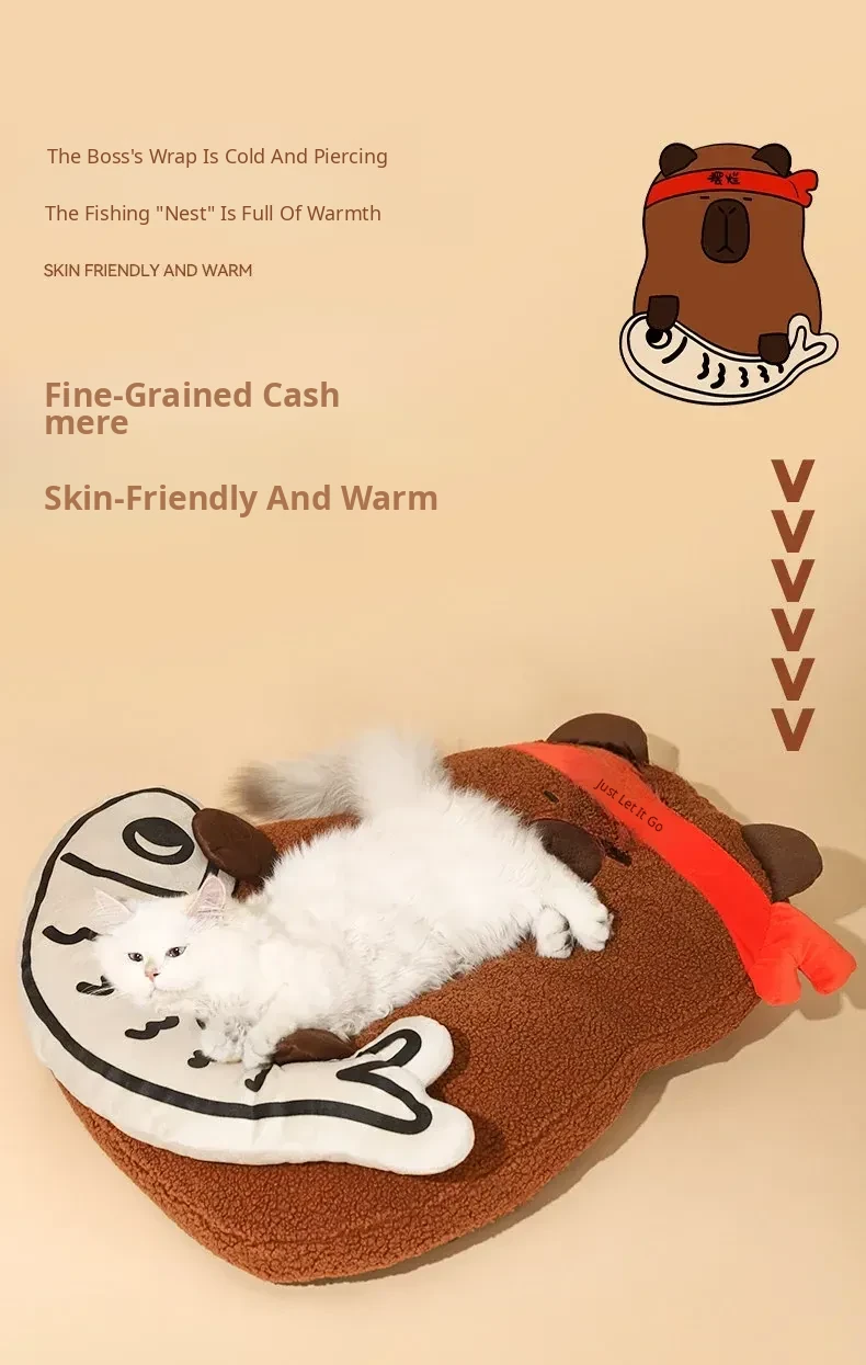 Capybara Snuggle Mat - Cozy All-Season Cat and Dog Bed, Winter Warmth, Removable and Washable, Perfect for Sofa or Pet Nest