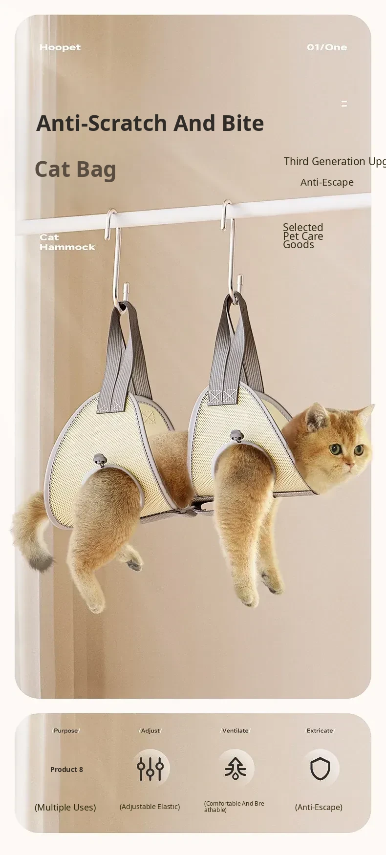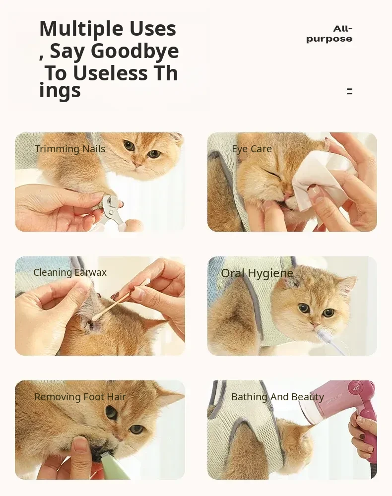 Cat Bathing & Nail Clipping Tool - Anti-Scratch & Bite Resistant Cat Bag, Secure Cat Carrier with Grooming Hammock for Pet Care and Beauty