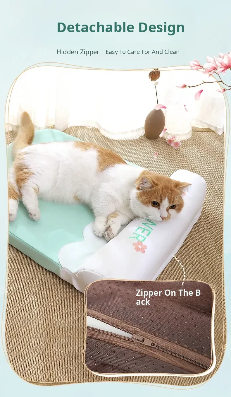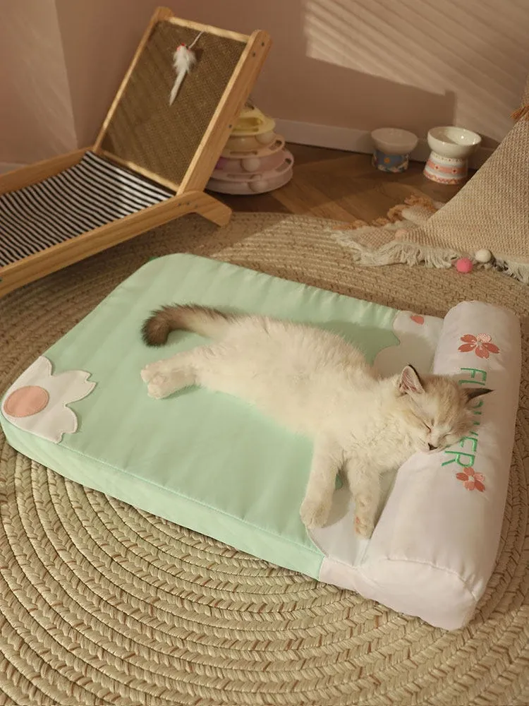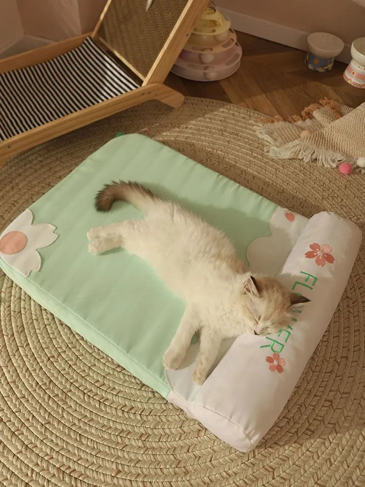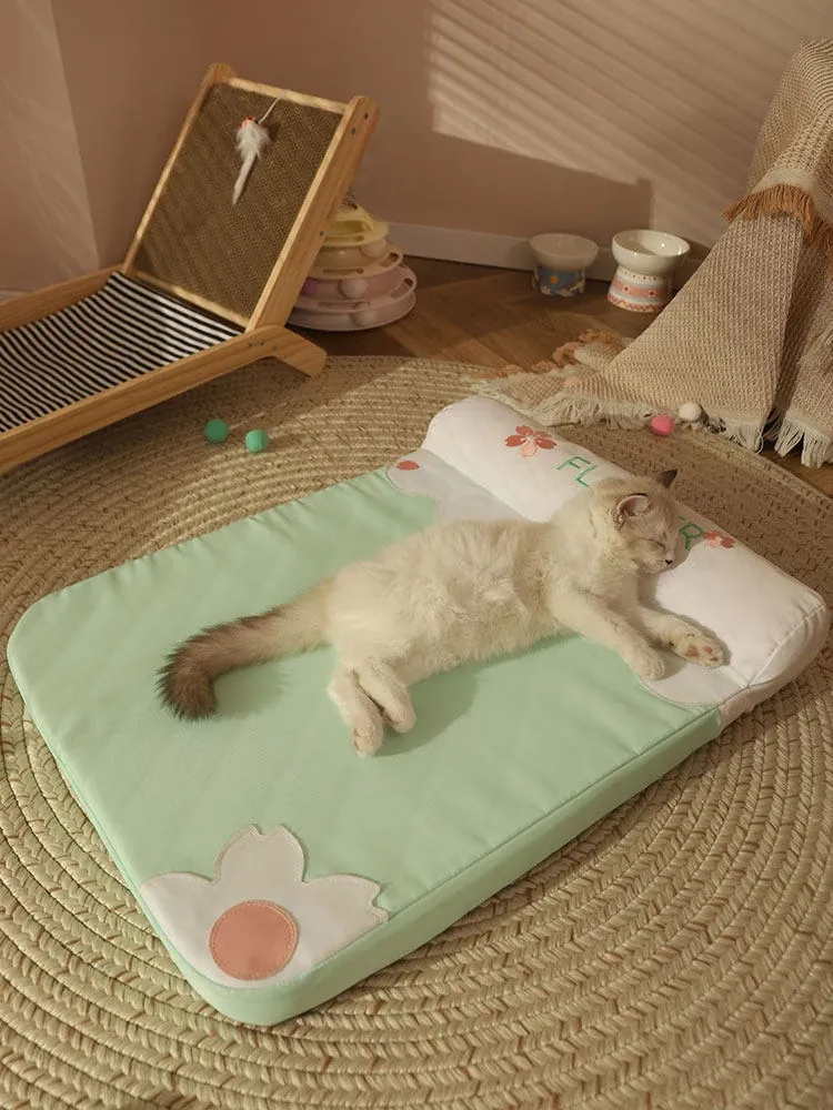 [Fully Removable and Washable] Four Seasons Embroidered Cat Mat Sleeping Mat - Fresh Green(The Thickness of the Mat Is 1.57in and It Is Fully Detachable and Washable)