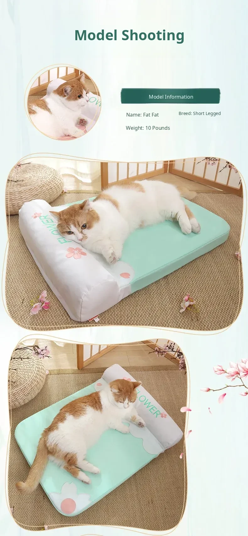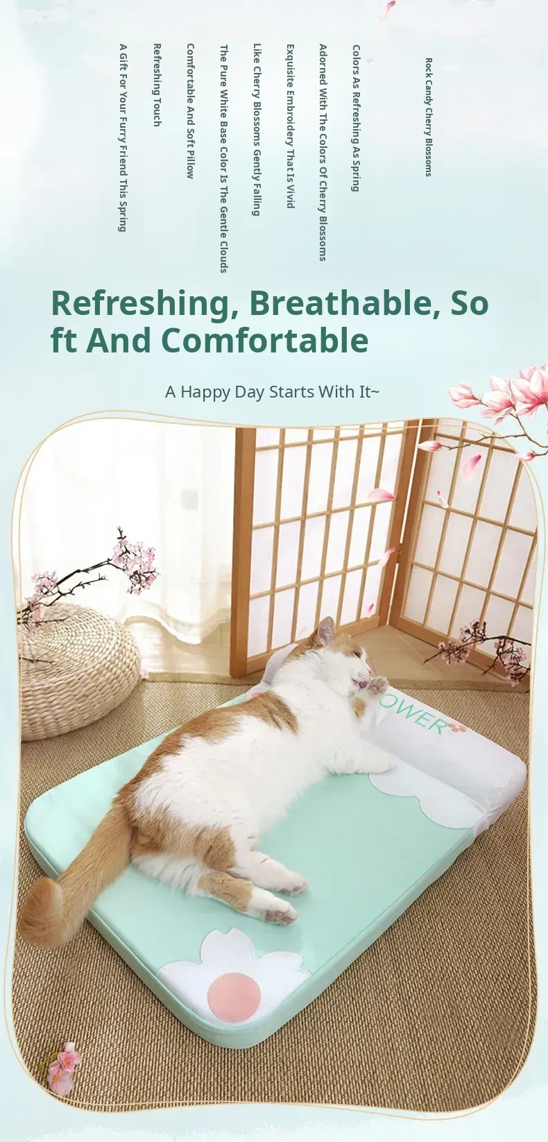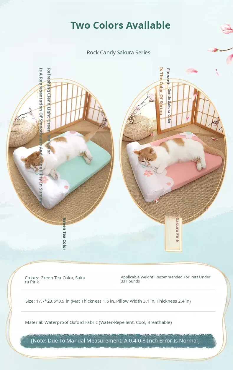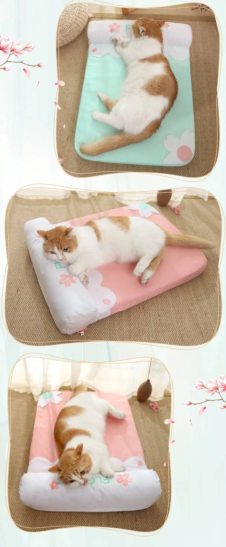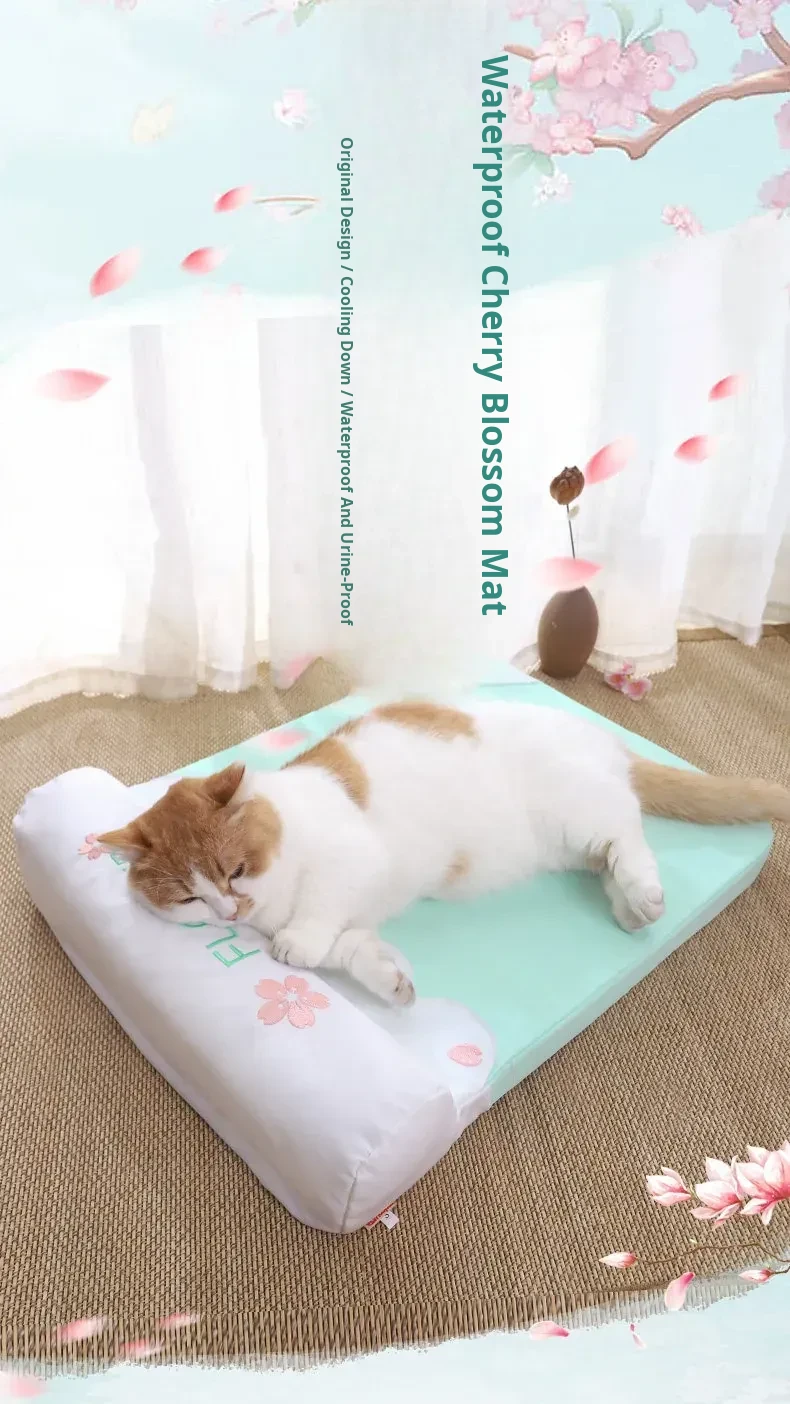 [Fully Removable and Washable] Four Seasons Embroidered Cat Mat Sleeping Mat - Sakura Pink(The Thickness of the Mat Is 1.57in and It Is Fully Detachable and Washable)