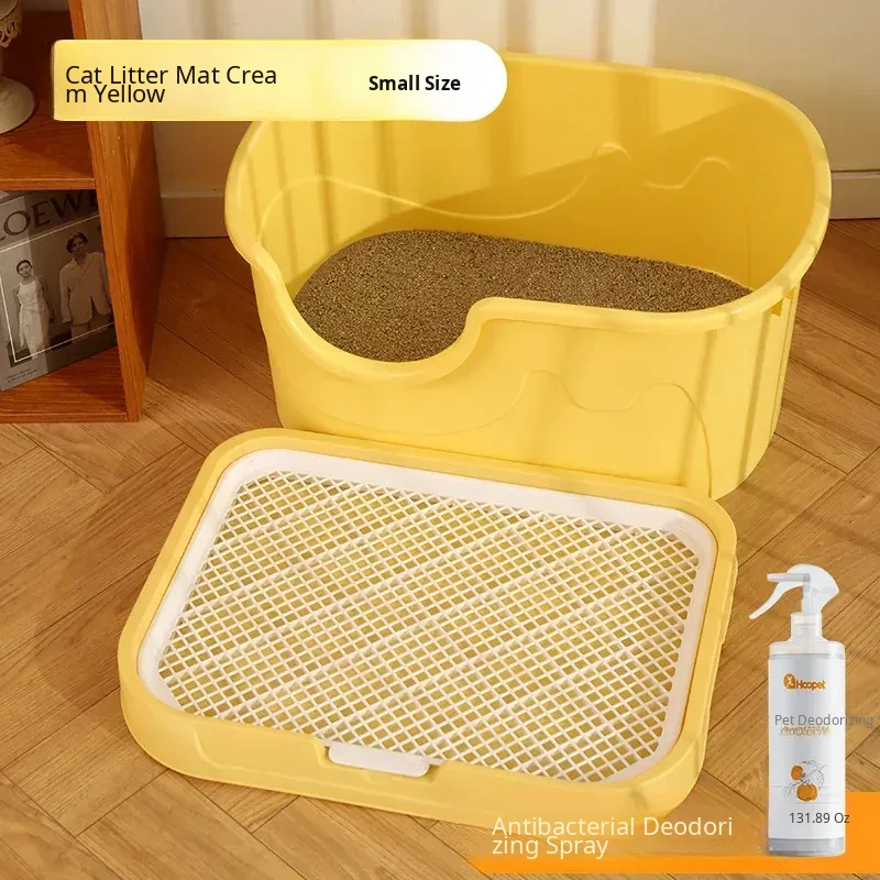 Small Cat Litter Mat (Yellow) with Deodorizing Spray