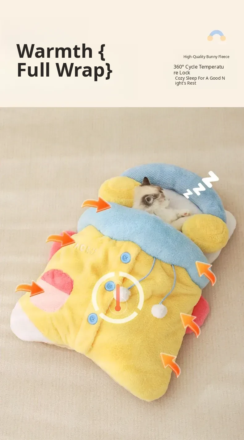 Cozy Cat and Dog Sleeping Bag - Enclosed Pet Bed for Winter Warmth and Security, Ideal for Kittens and Puppies, Perfect All-Season Nest