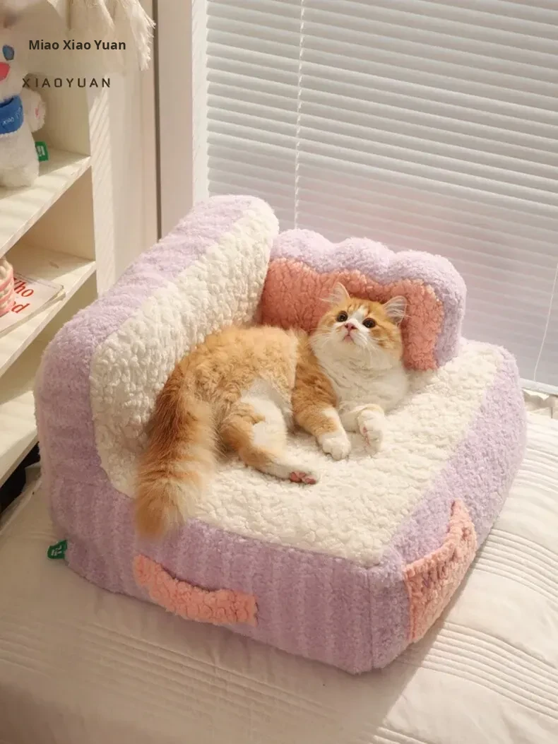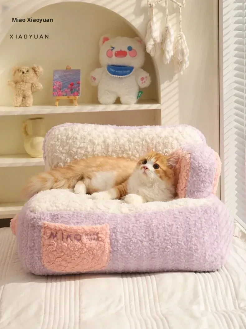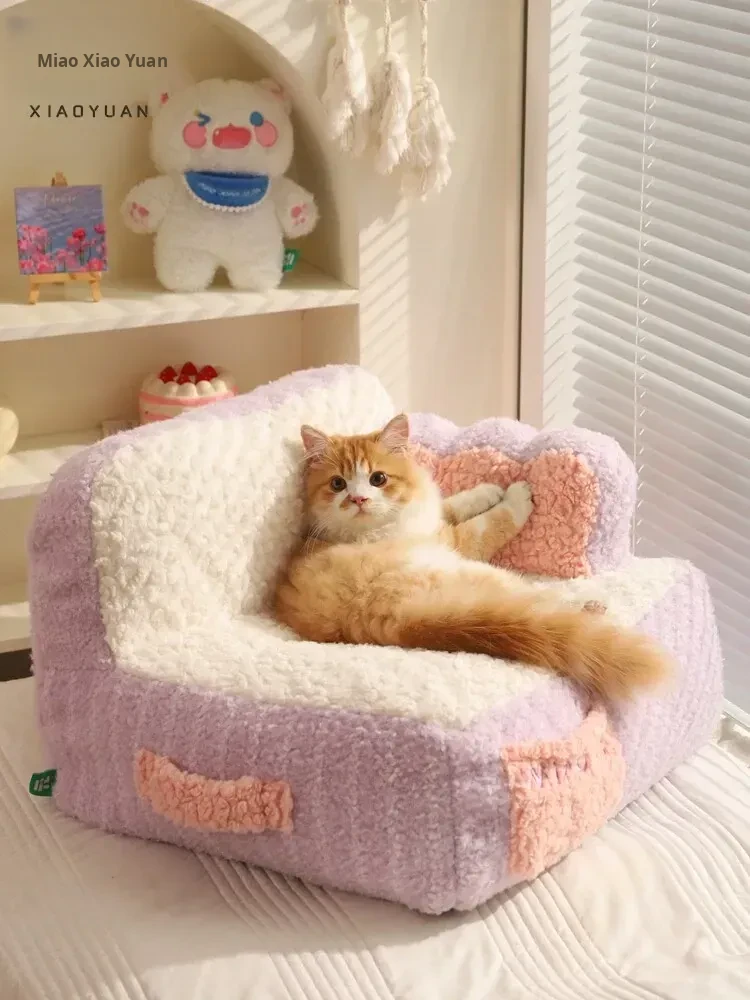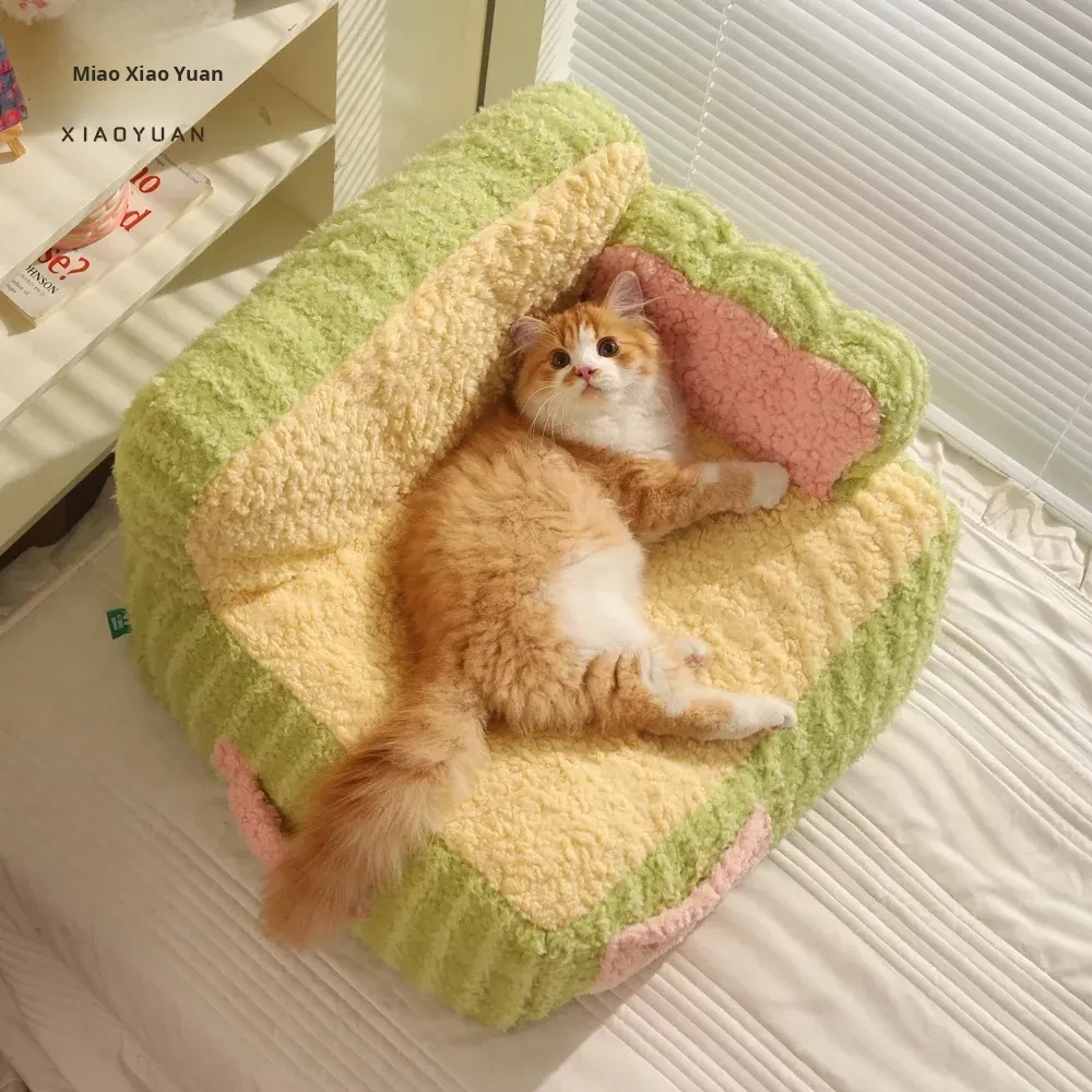 Cozy Cat Bed for Kittens - Thickened Winter Blanket for Folded Ear Cats, Perfect for Snuggling and Resting in Autumn and Winter