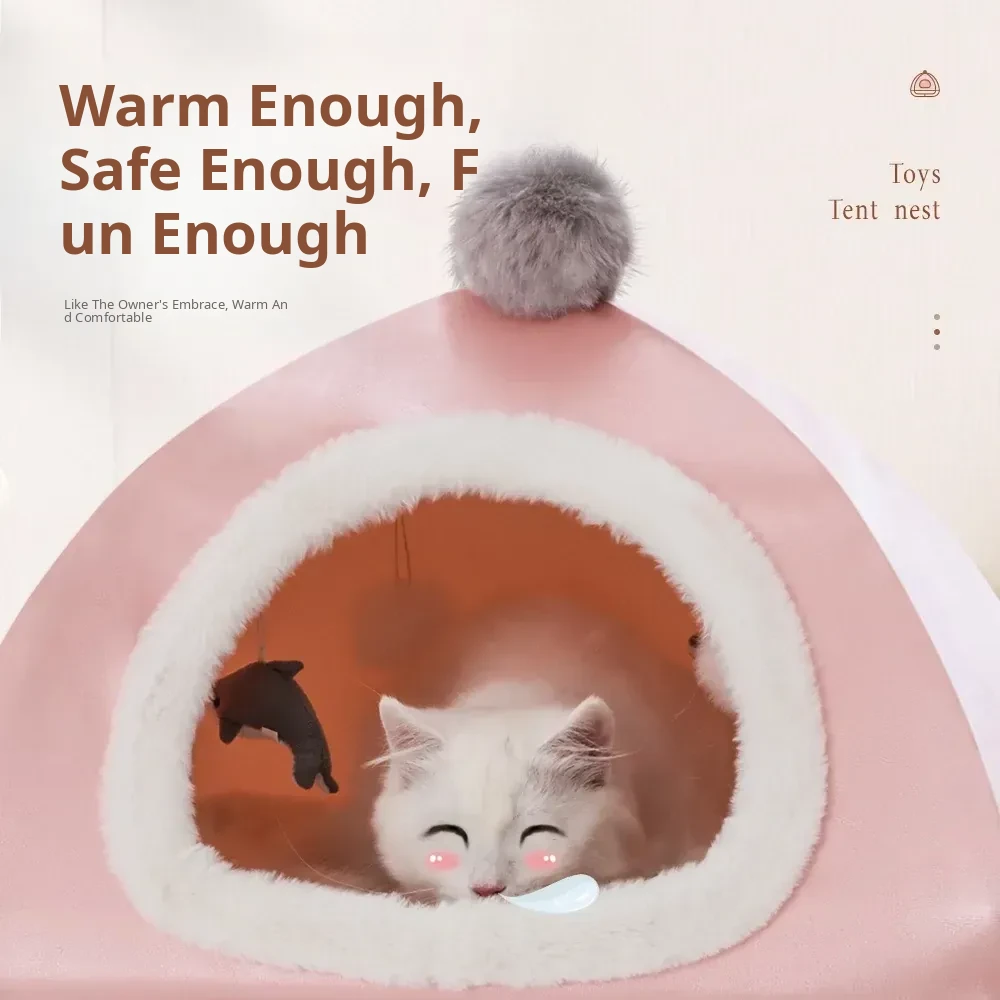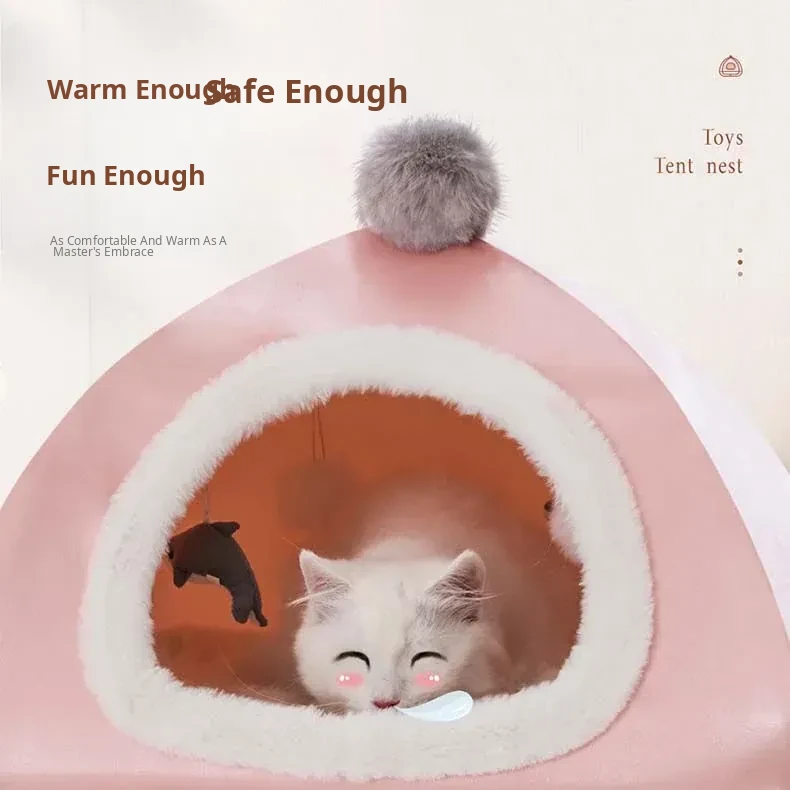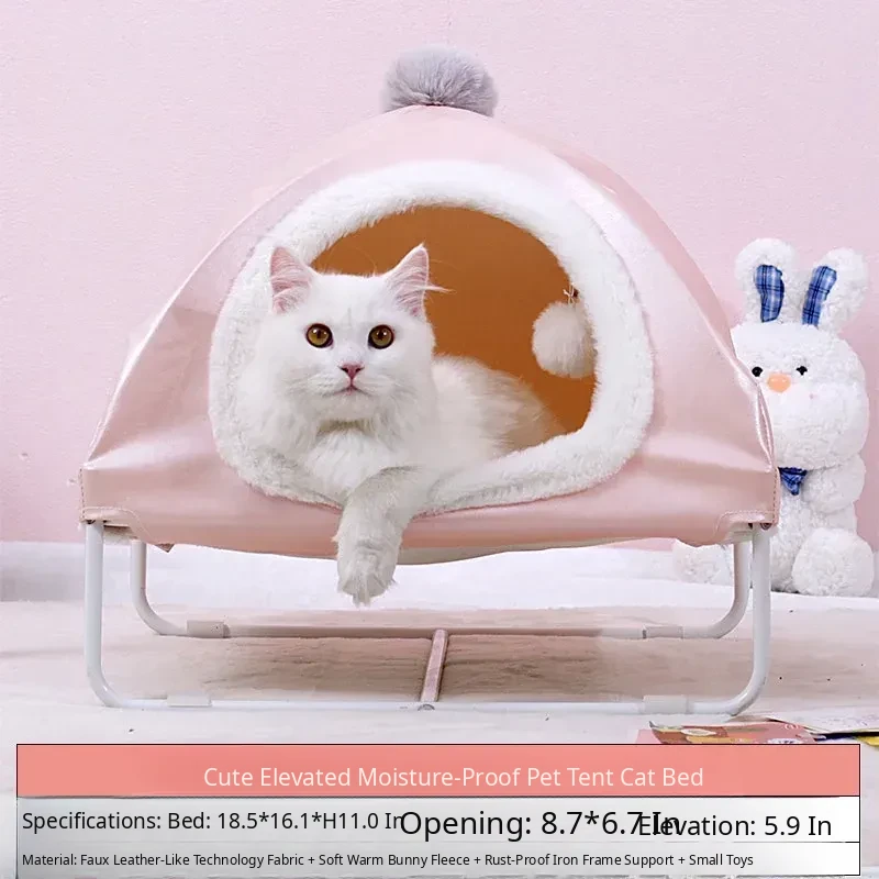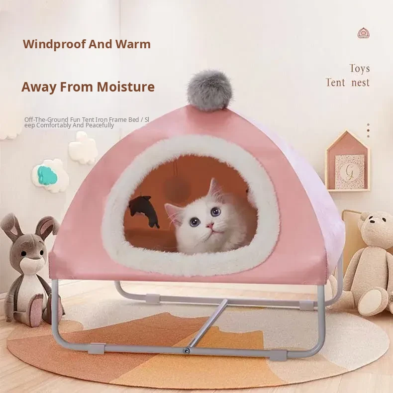 Pink Pet Tent Cat Bed - Winter Warm, Off-Ground, Moisture-Proof