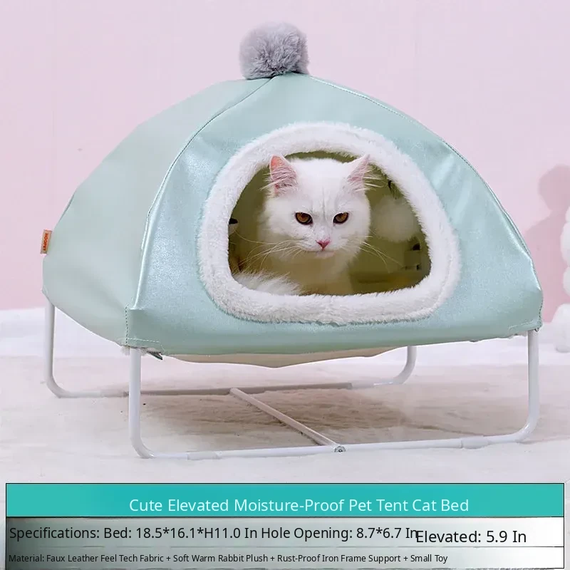 Green Pet Tent Cat Bed - Winter Warm, Off-Ground & Moisture-Proof