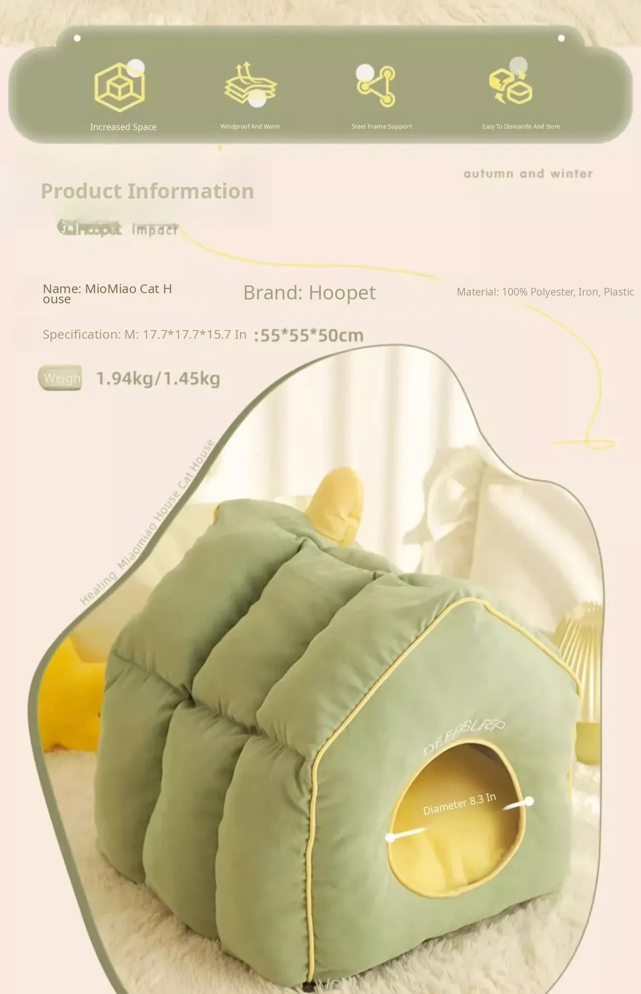 Cozy Enclosed Cat Bed for Winter - Warm and Secure Cat House, Perfect for All Seasons, Ideal for Cats to Hide and Relax