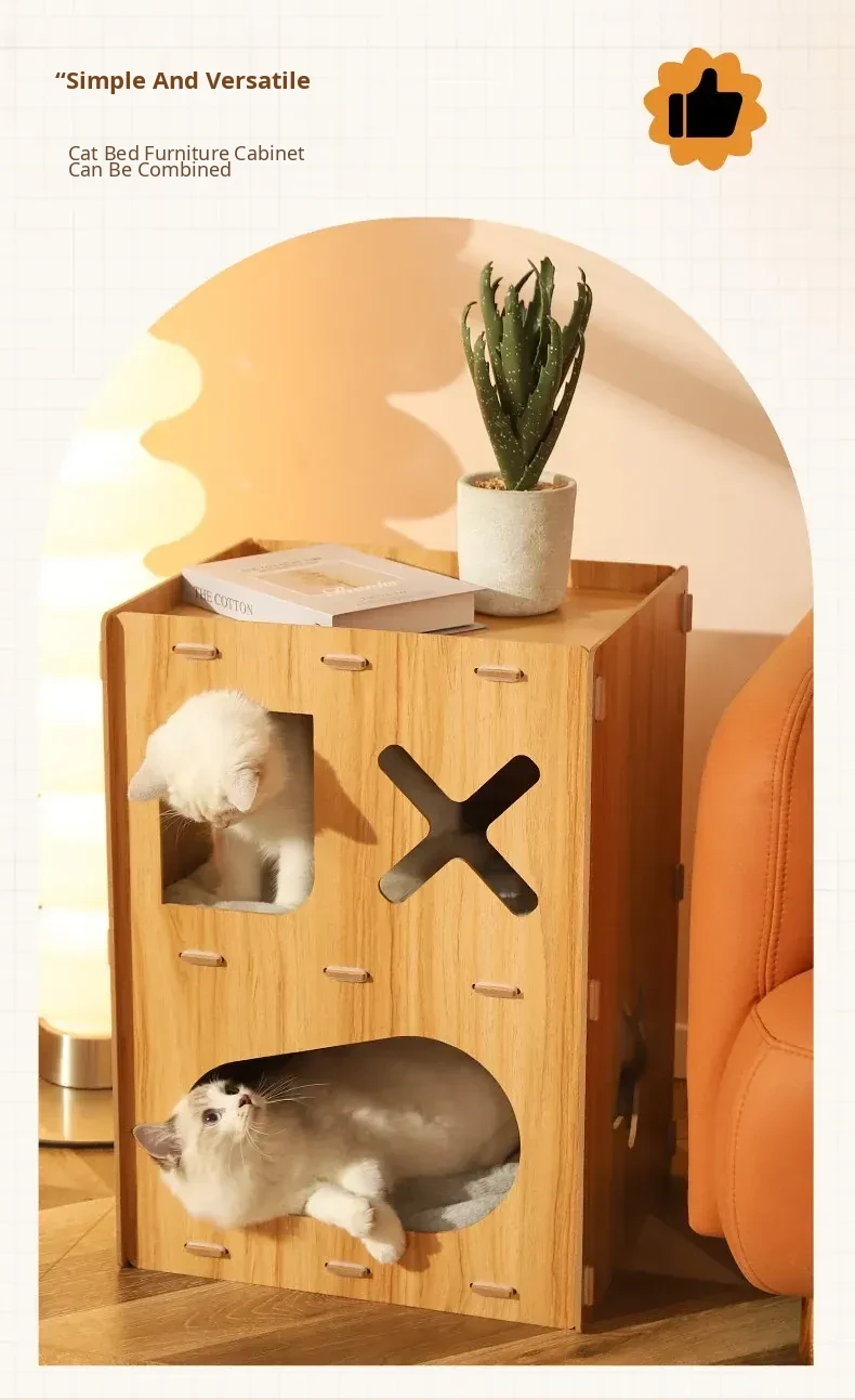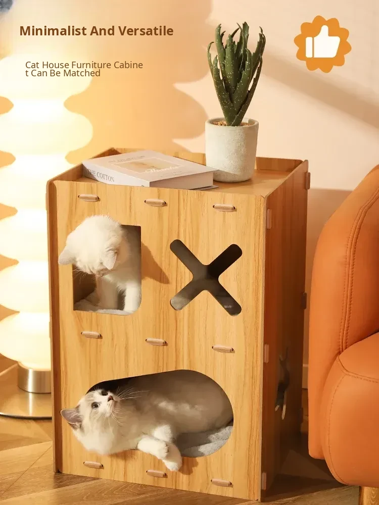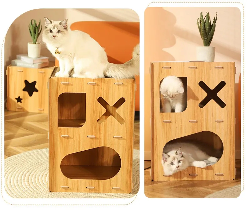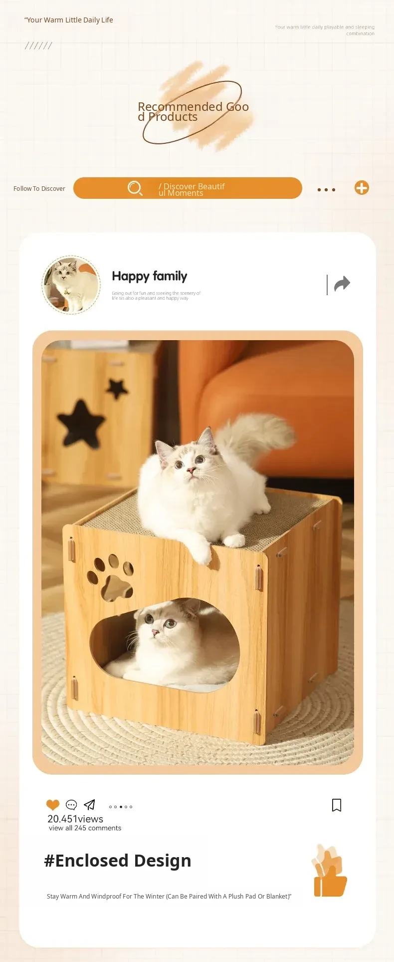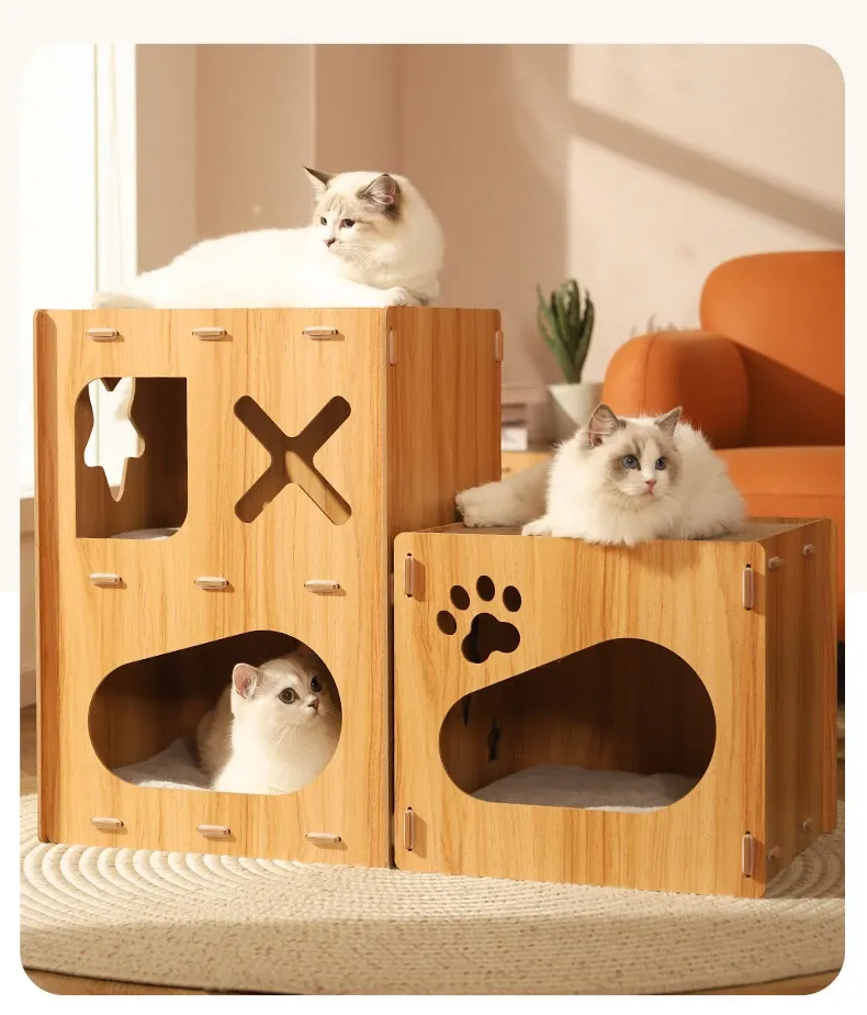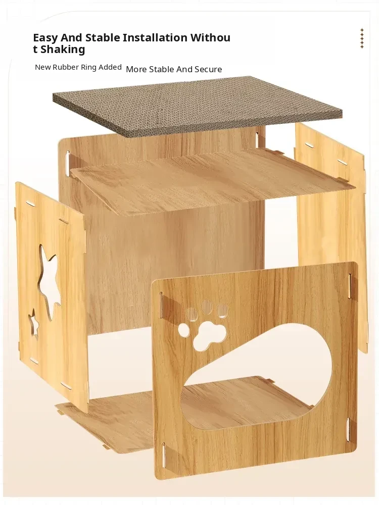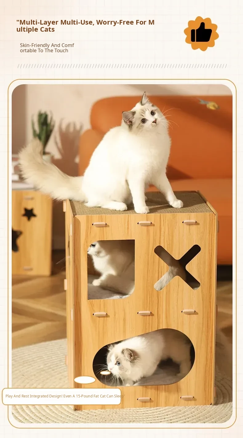 Cozy Multi-Season Pet Cube for Kittens - Cute Villa-Style Cat House with Scratch Pad, Play Area & Resting Space - Perfect for Fun and Relaxation!