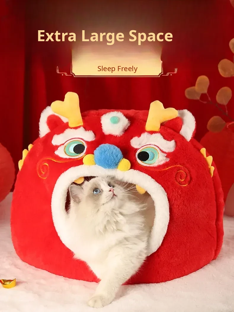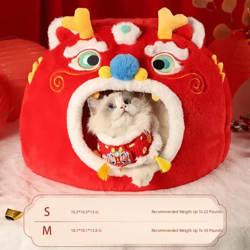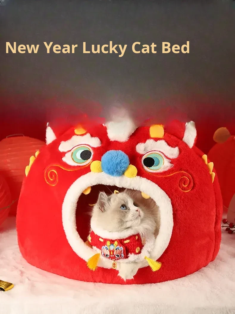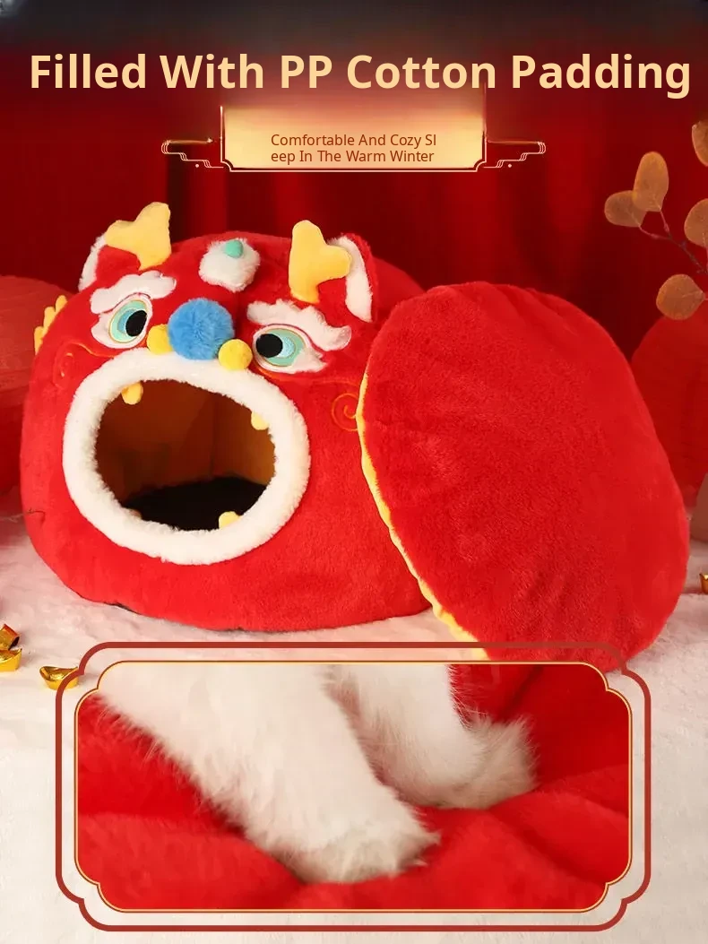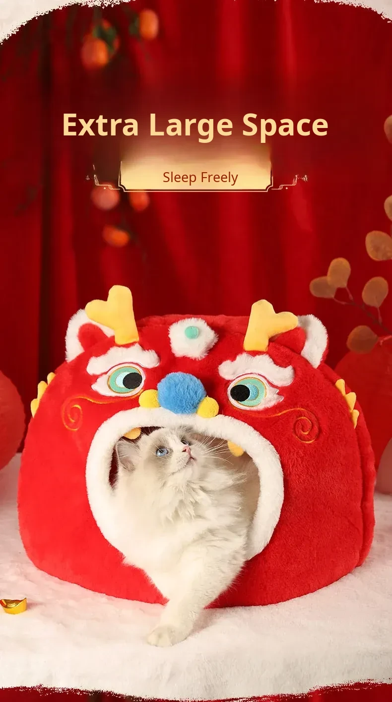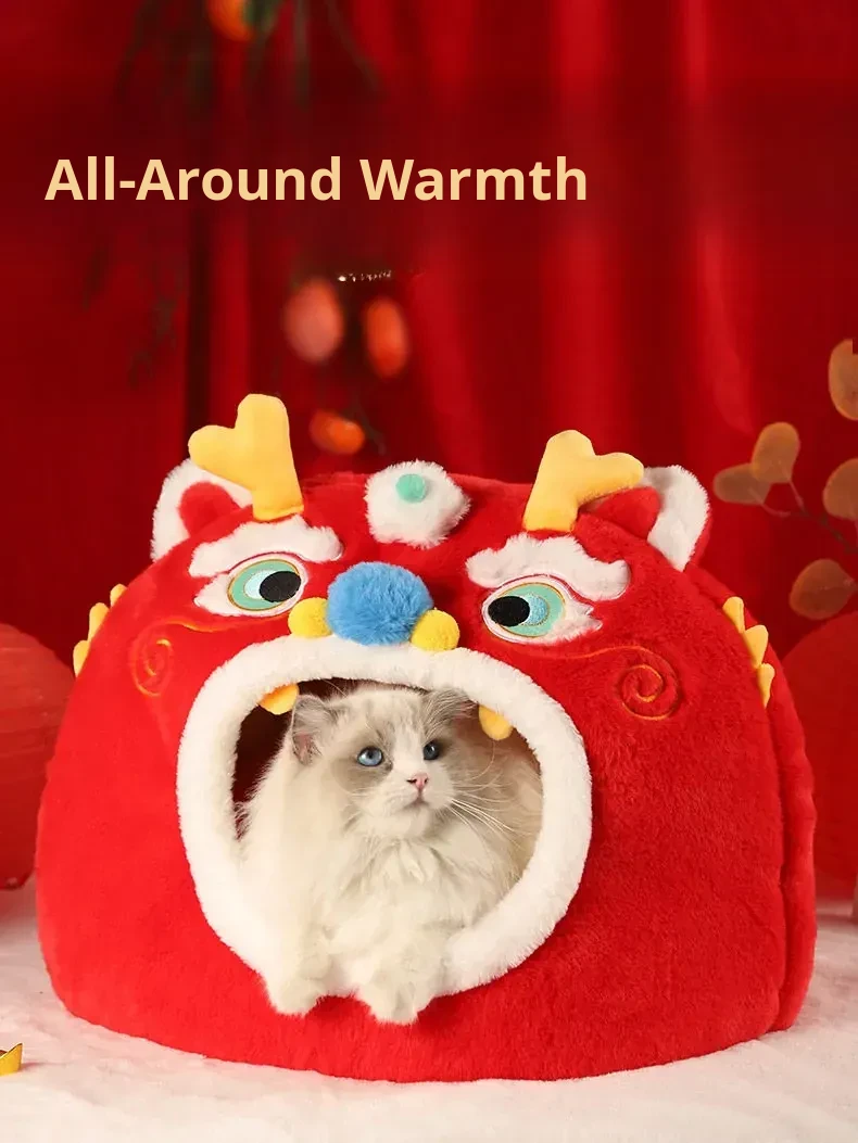 Cozy New Year Cat Bed - Winter Insulated Enclosed Sleeping Bag for Cats, Providing Safety and Comfort. Perfect for Cats and Small Dogs, Keeps Pets Warm in Cold Weather!