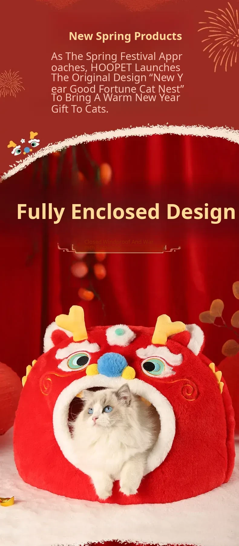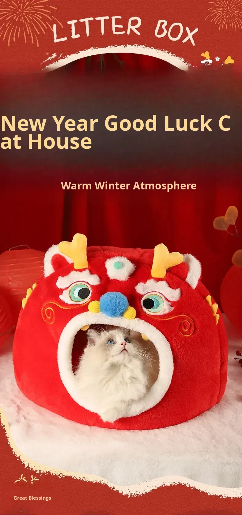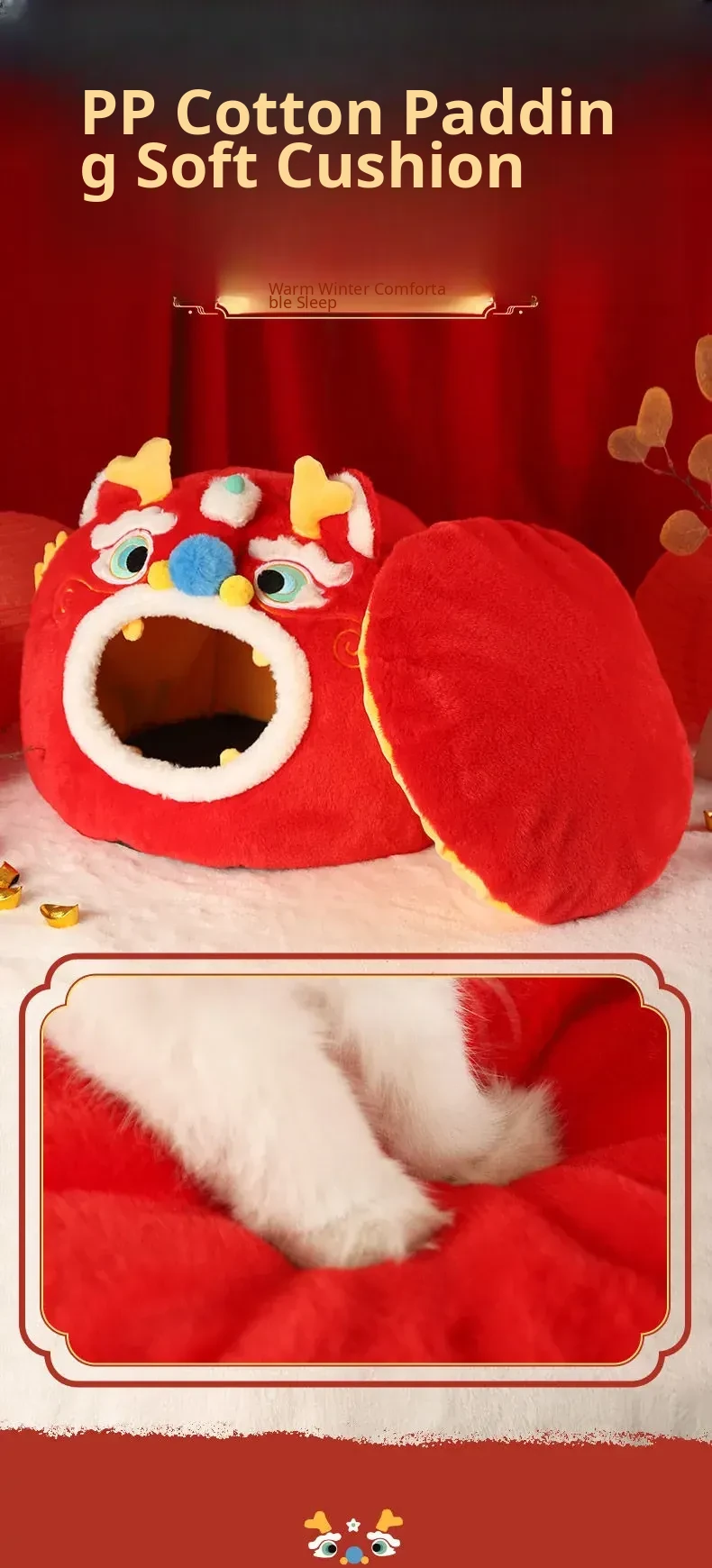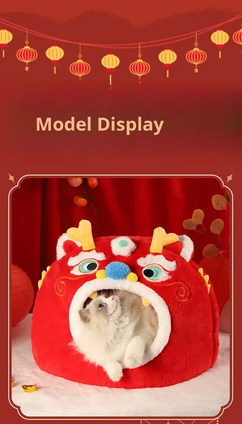 Cozy New Year Cat Bed - Winter Insulated Enclosed Sleeping Bag for Cats, Providing Safety and Comfort. Perfect for Cats and Small Dogs, Keeps Pets Warm in Cold Weather!
