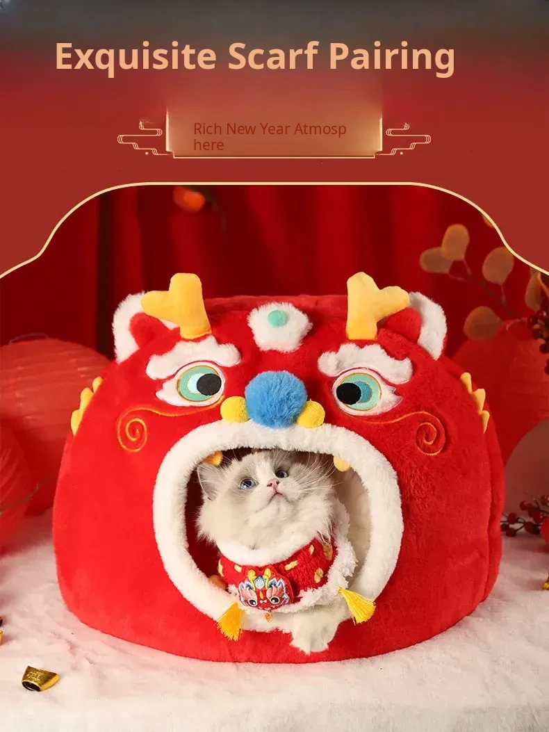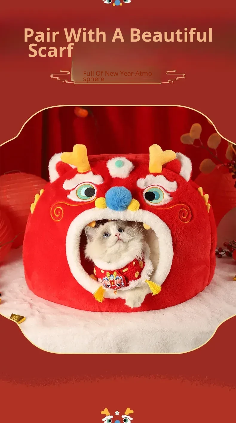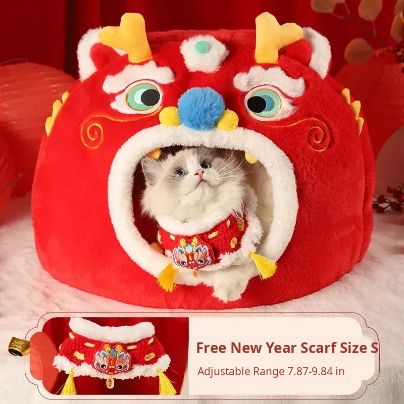 New Year Cat Nest + New Year Scarf S Size