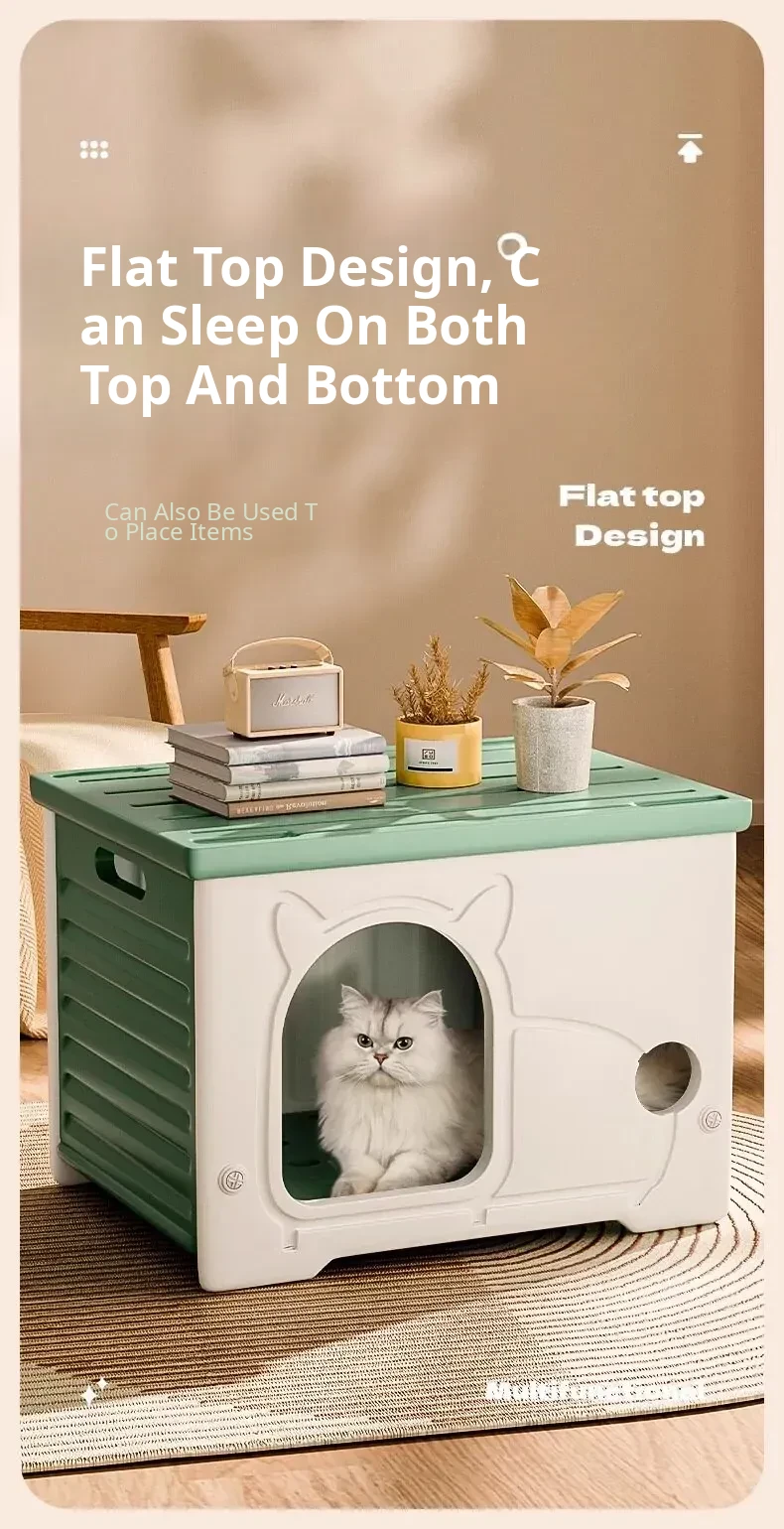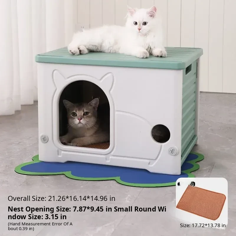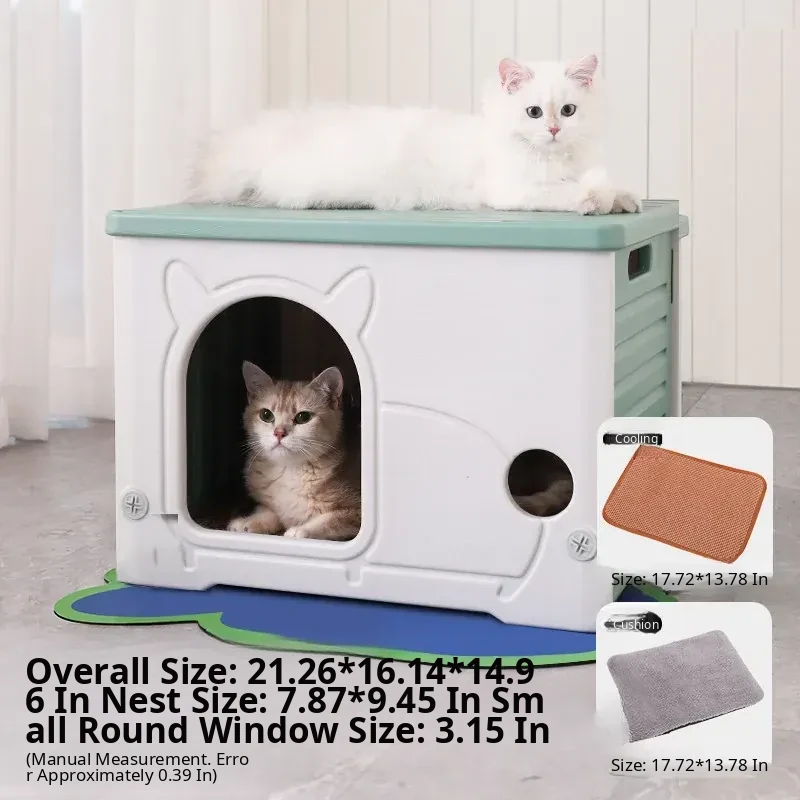 Cat Nest Enclosed Cat House (Green) + Cooling Mat