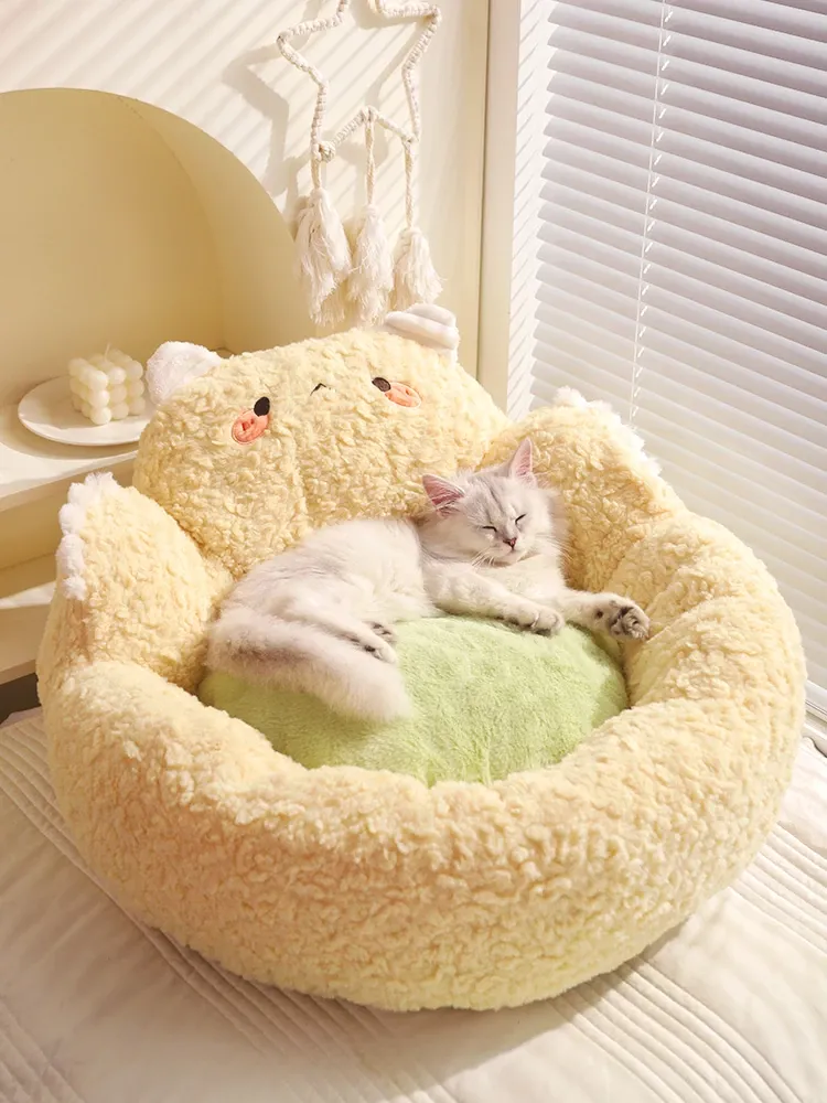 Cozy Plush Cat Bed for Winter - Safe and Warm Circular Cat Mat - Universal for All Seasons - Adorable Sofa Bed for Kittens - Perfect for Autumn and Winter Comfort