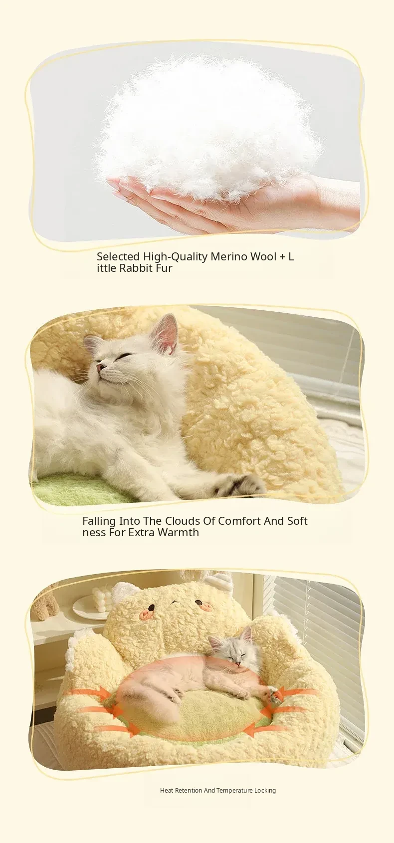 Cozy Winter Cat Bed - Thickened Large Cat Sofa for Ultimate Comfort and Security - Perfect Warm Sleeping Nest for Your Feline Friend