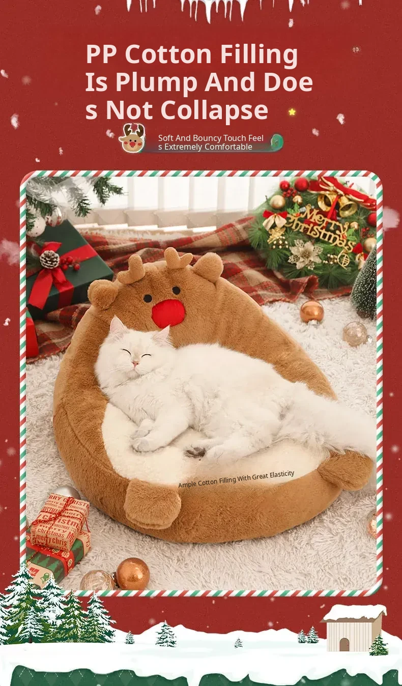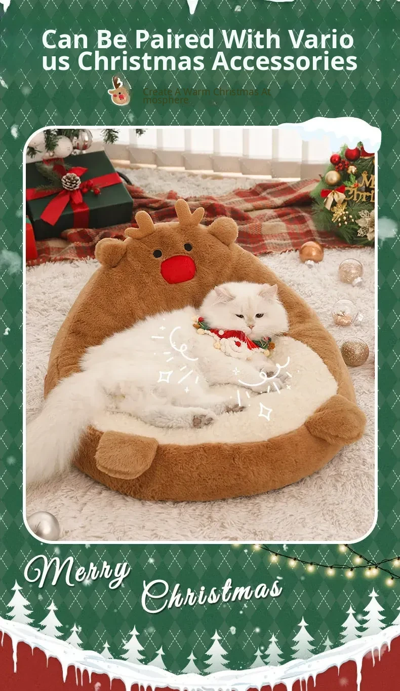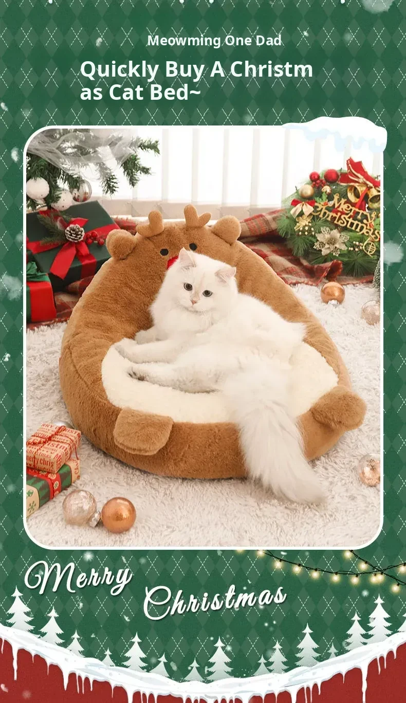 [Christmas Limited Edition] Elk High Back Nest + Santa Claus Cat Funny Stick