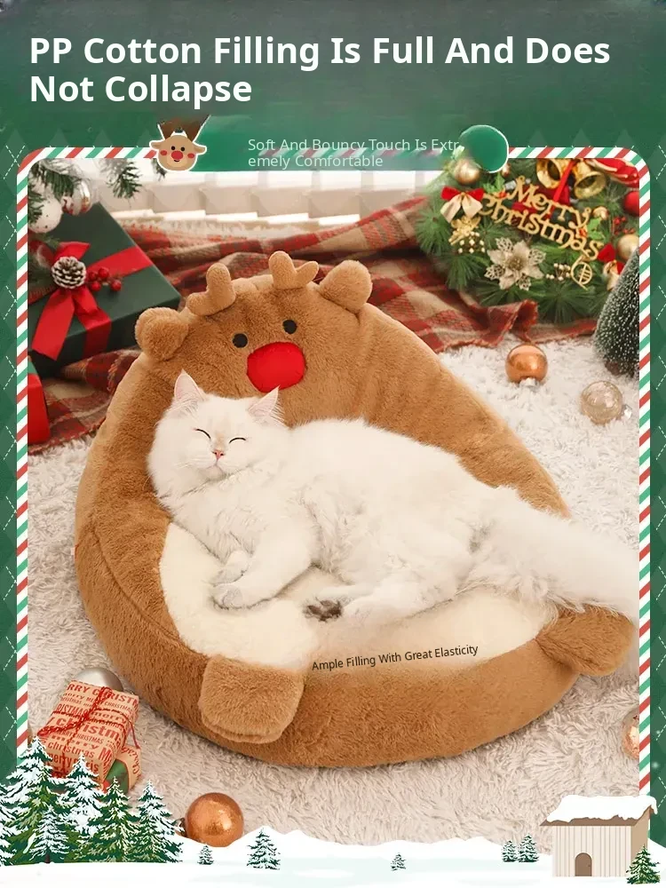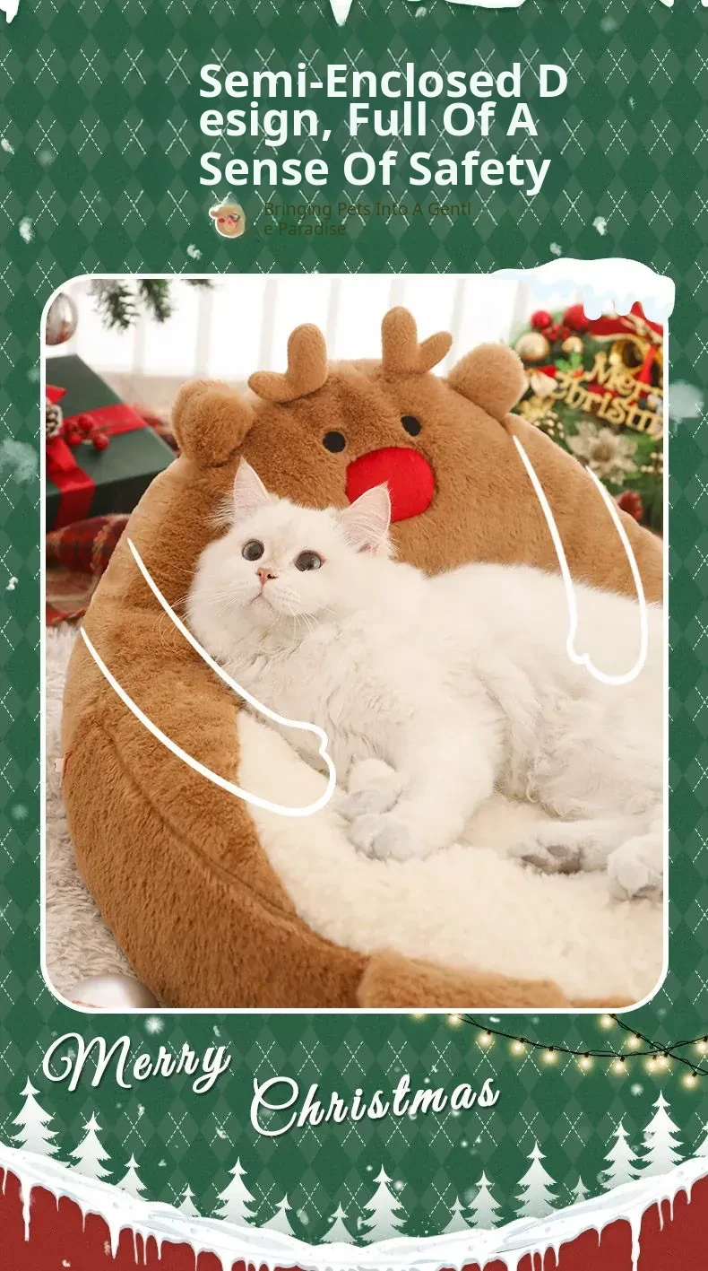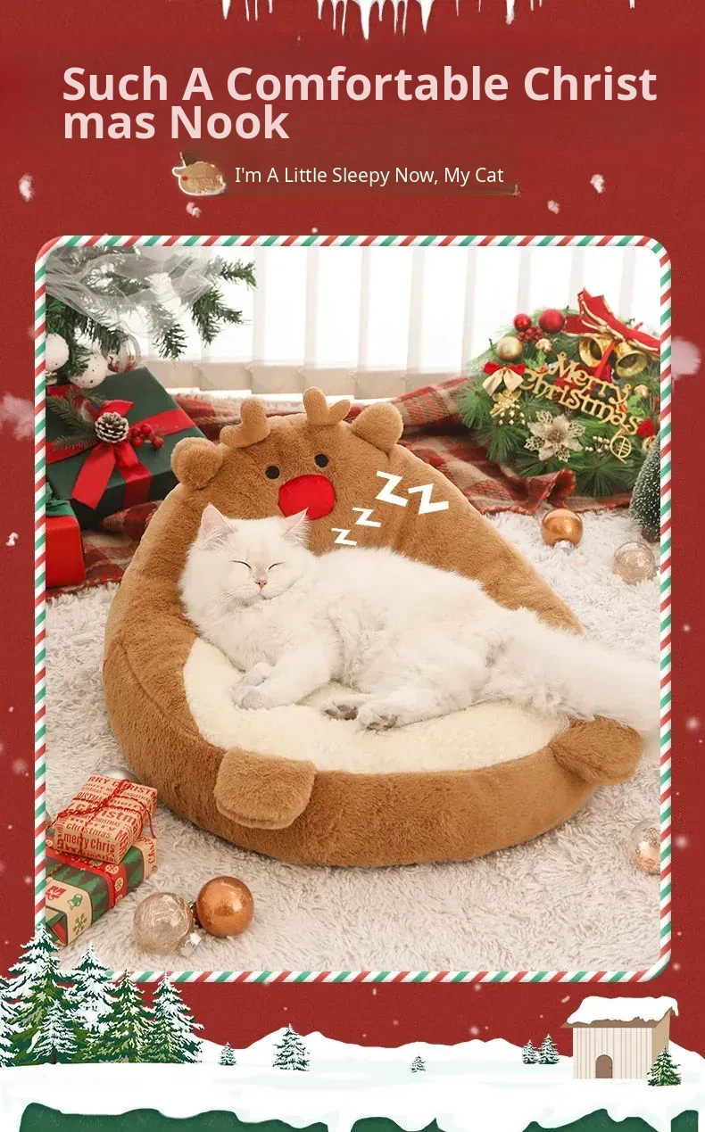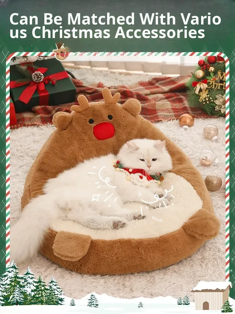 [Christmas Limited Edition] Elk High Back Nest + Santa Claus Cat Funny Stick