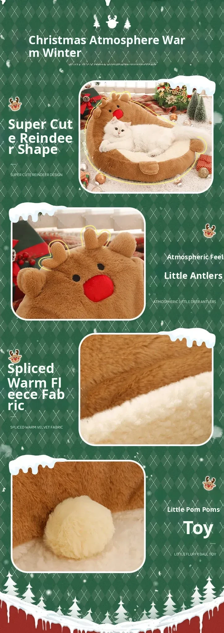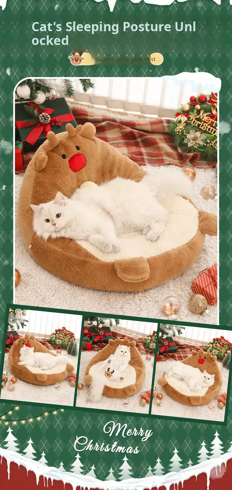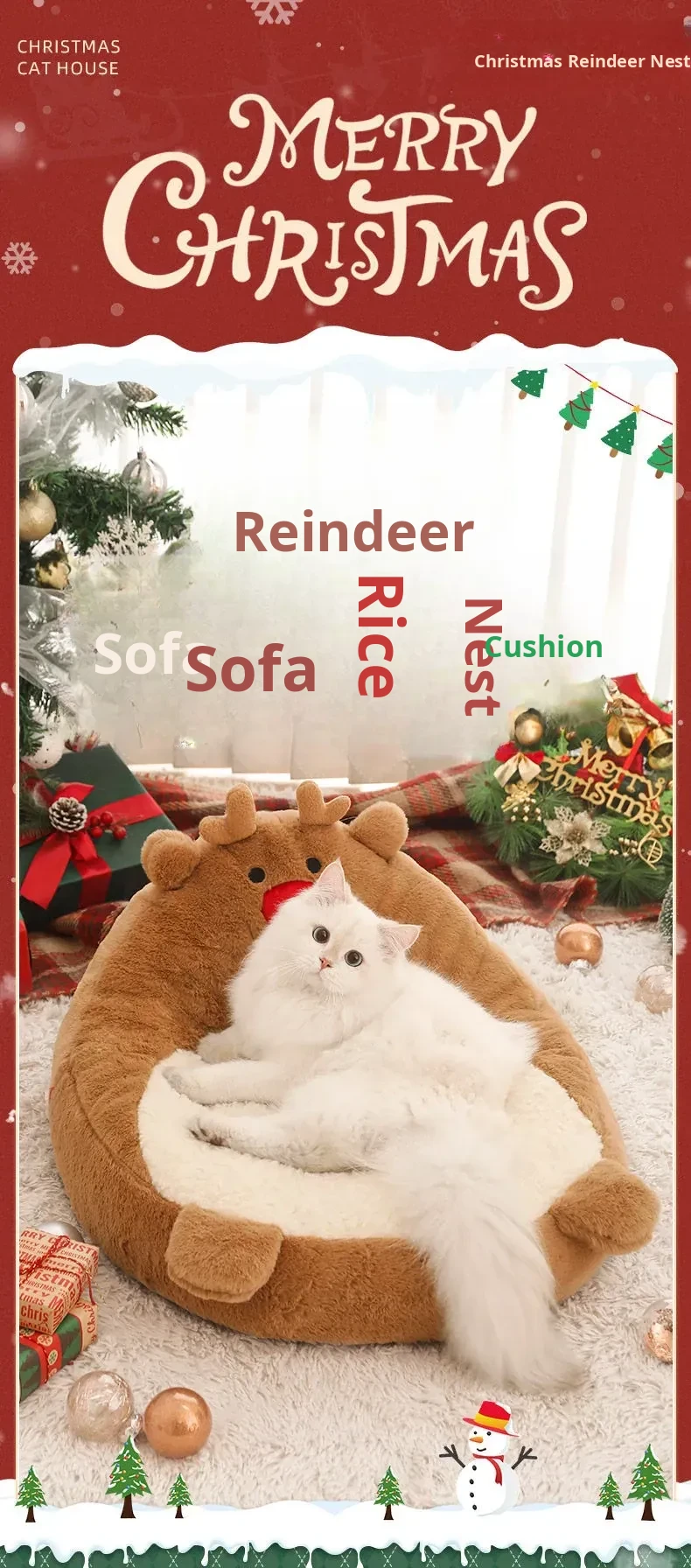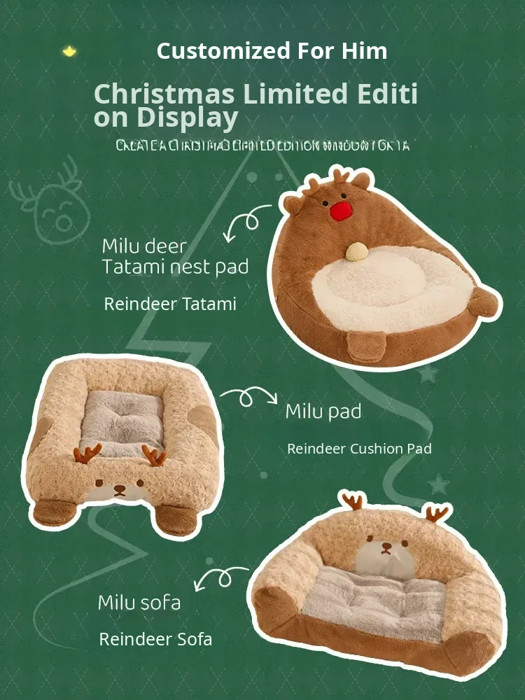 [Christmas Limited Edition] Elk High Back Nest + Fawn Cat Funny Stick