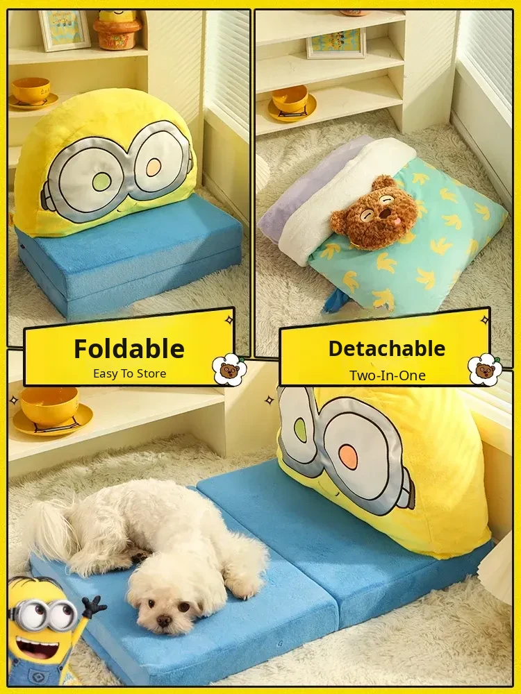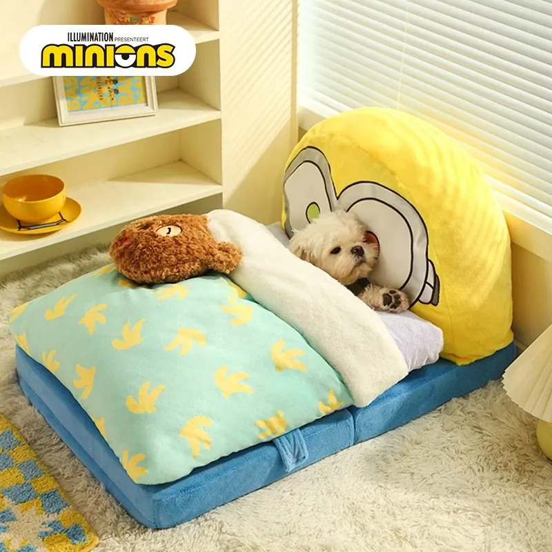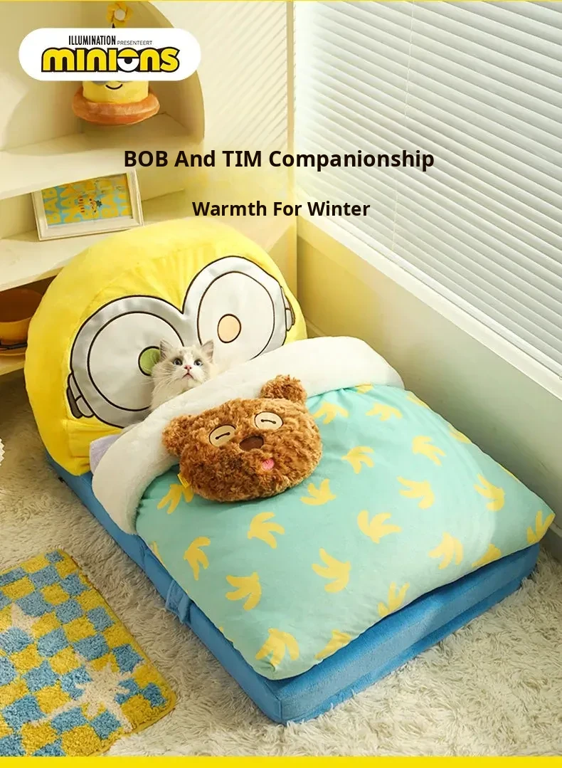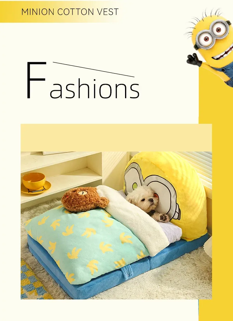 Cozy Winter Dog Bed for Minions Lovers - Removable & Washable Pet Mat for Cats and Small Dogs, Ideal for Cold Days