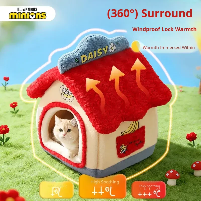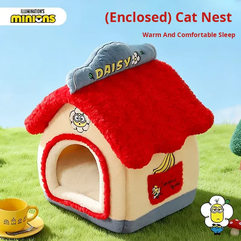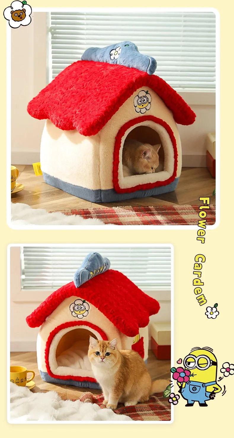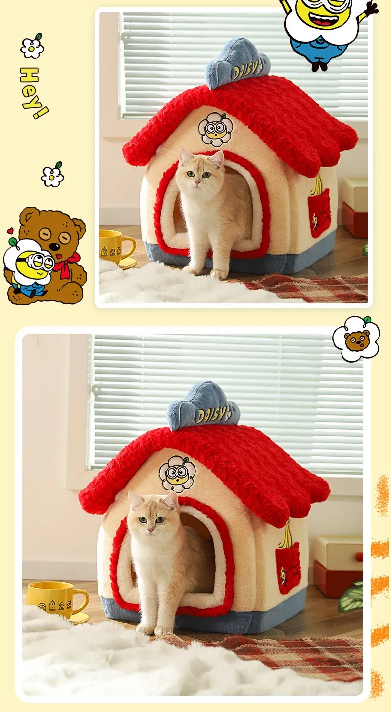 Cozy Winter Enclosed Cat Bed - Warm and Safe Minion Tent for Cats & Dogs, Perfect Hideaway for Your Furry Friend This Winter