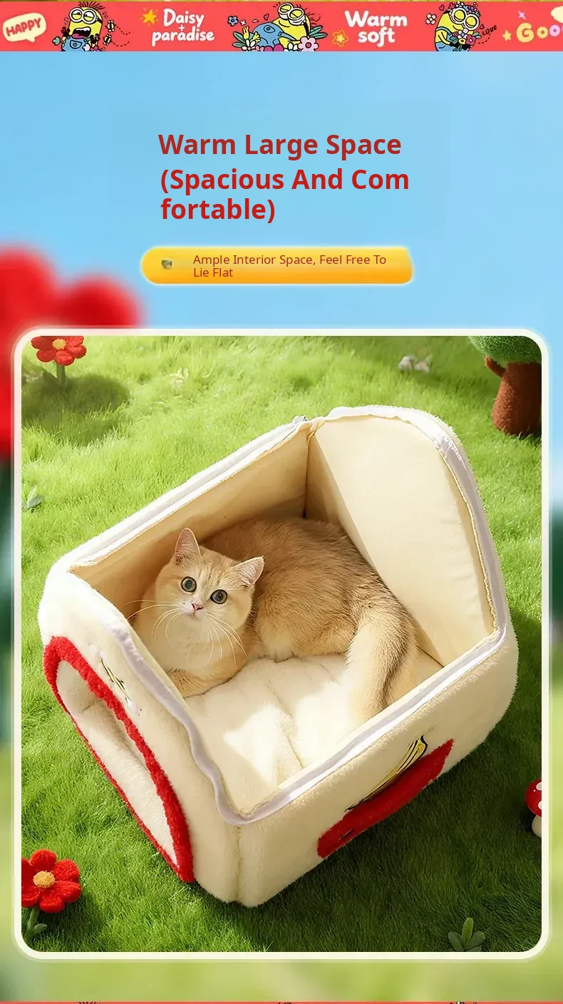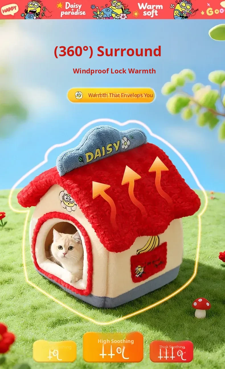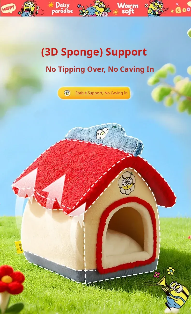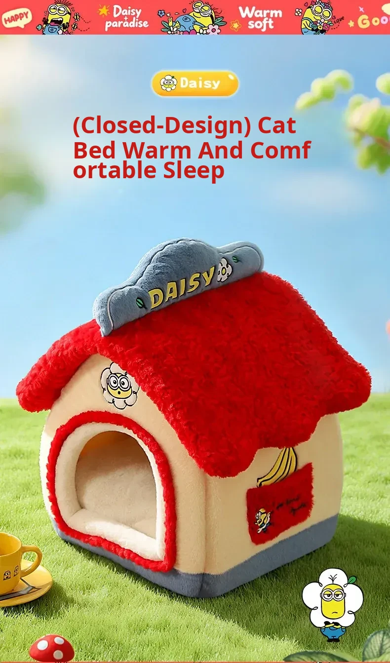 Cozy Winter Enclosed Cat Bed - Warm and Safe Minion Tent for Cats & Dogs, Perfect Hideaway for Your Furry Friend This Winter