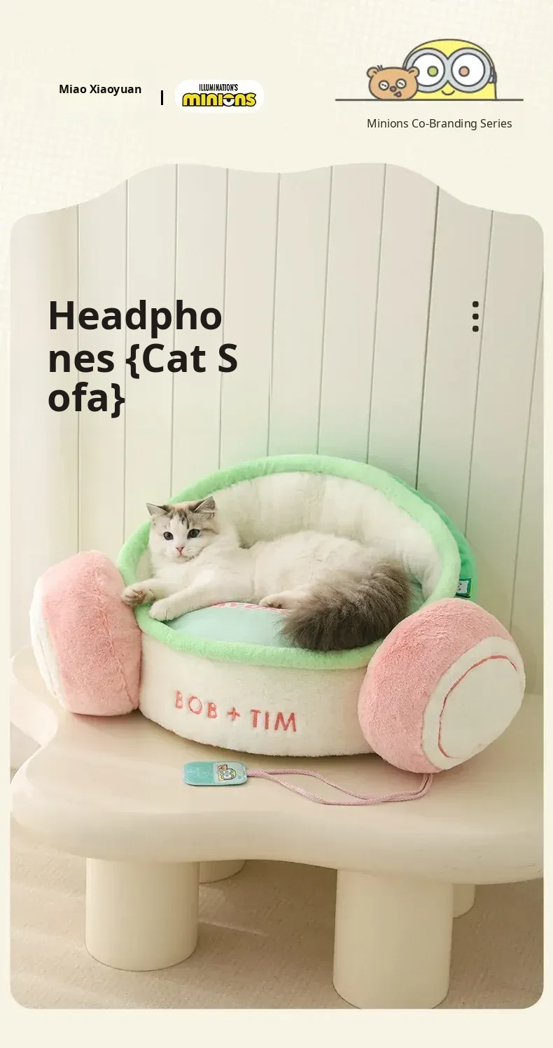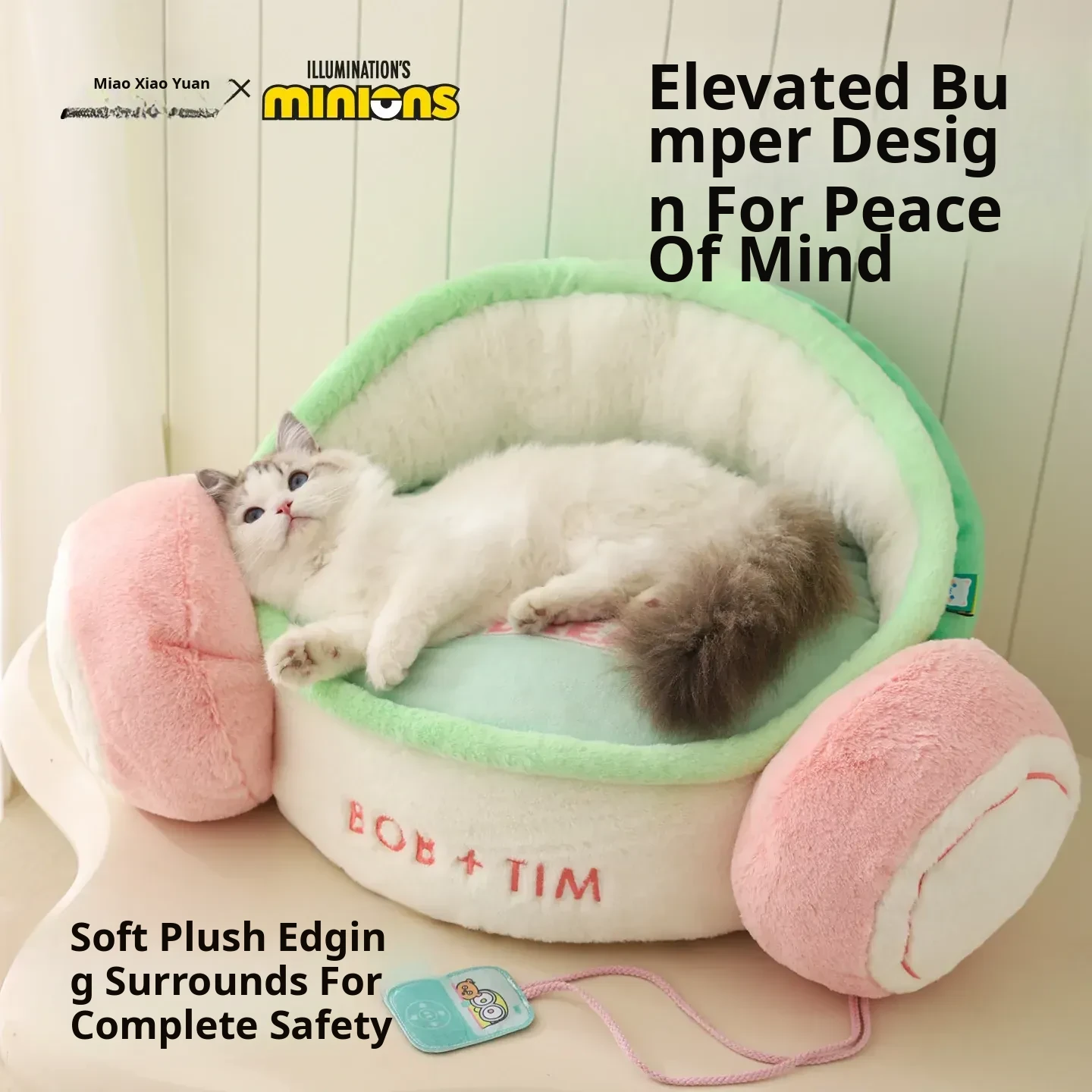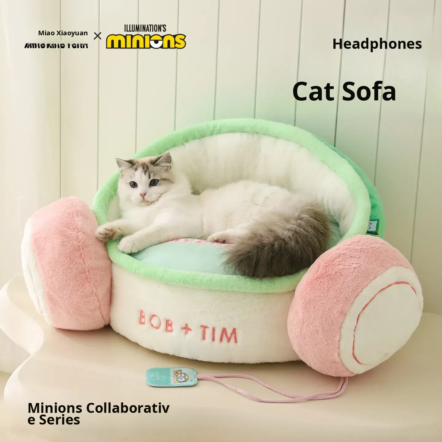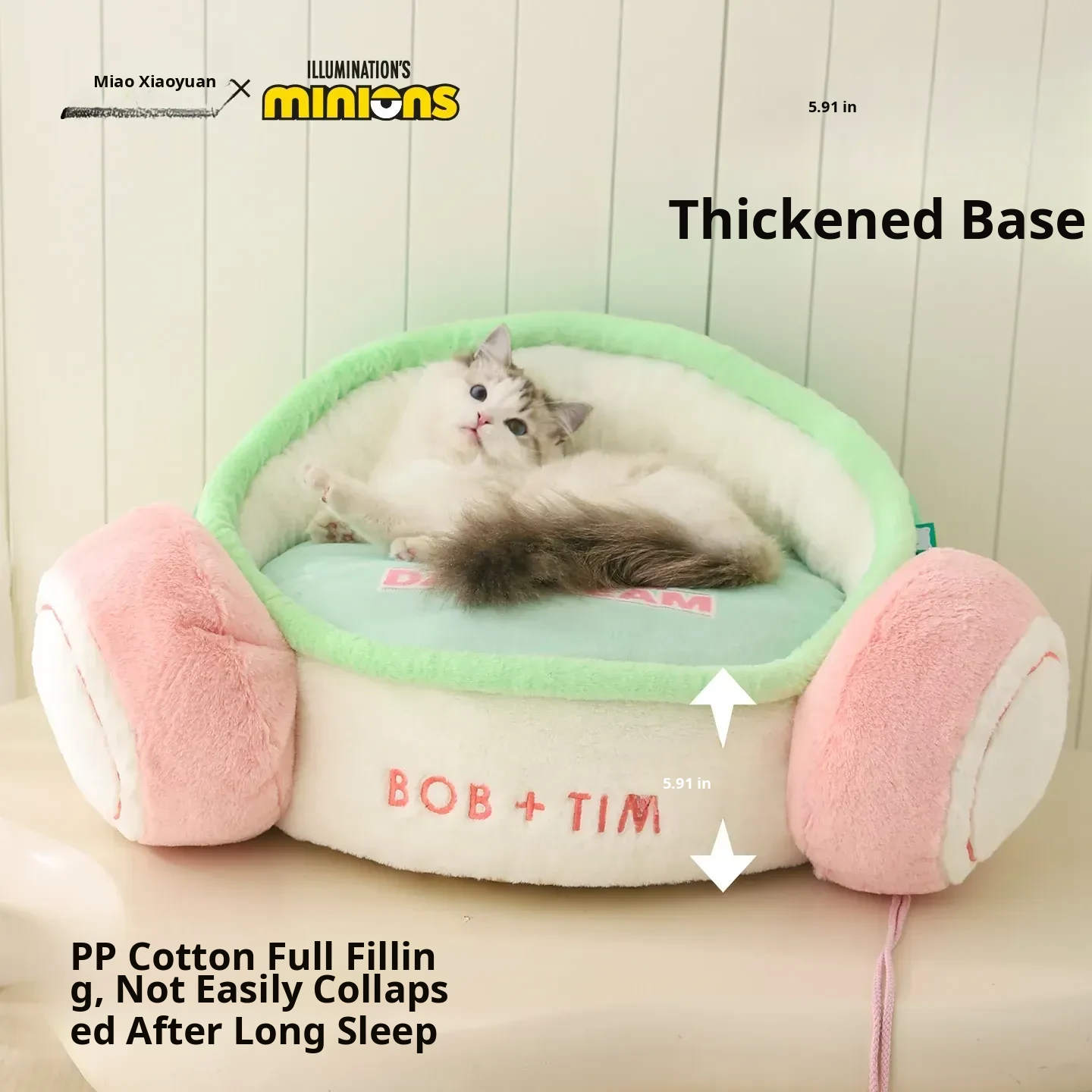 Cozy Winter Pet Sofa for Cats - Minions Collaboration, Removable and Washable, Perfect for Teddy and Garfield, Keeps Your Furry Friend Warm and Comfy!
