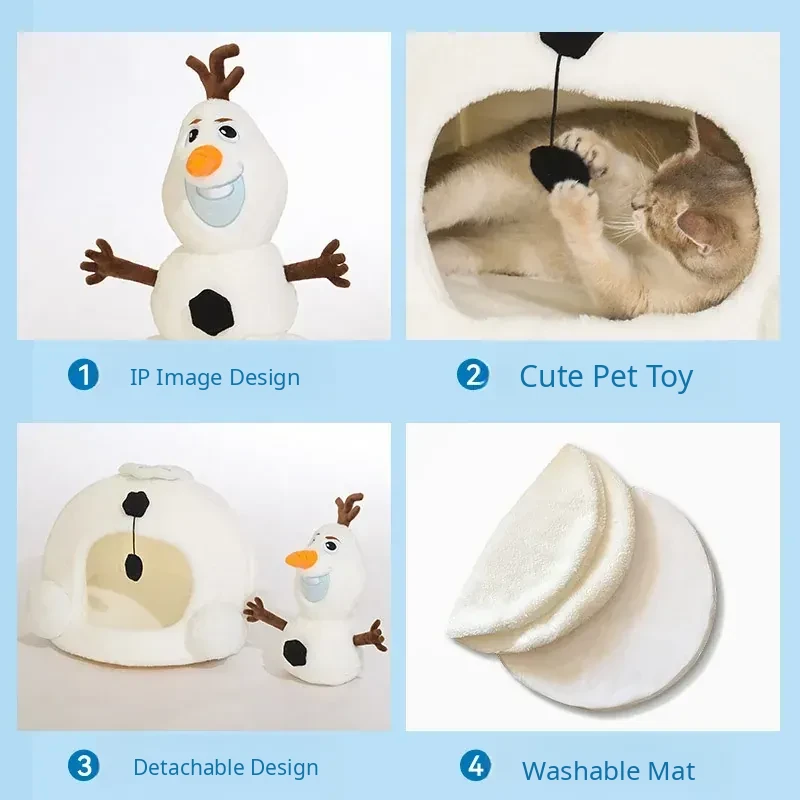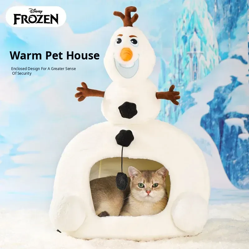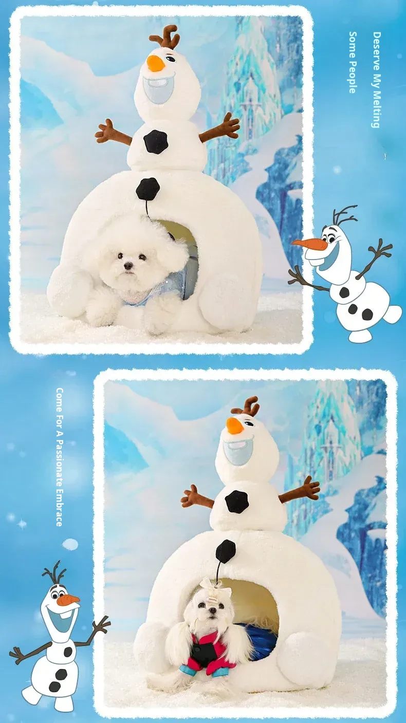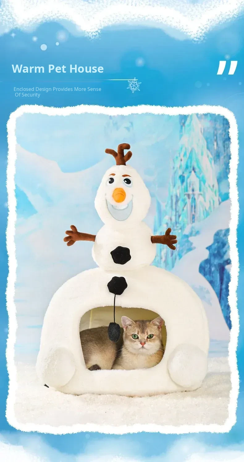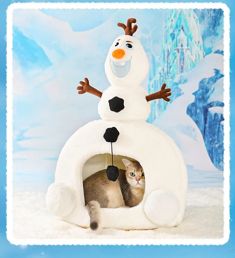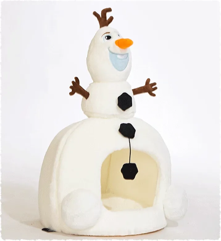 Disney Frozen Cozy Cat Cave - Winter Warm Dog House with Plush Mat, Perfect for Christmas and Cold Days, Featuring Adorable Snowman Design