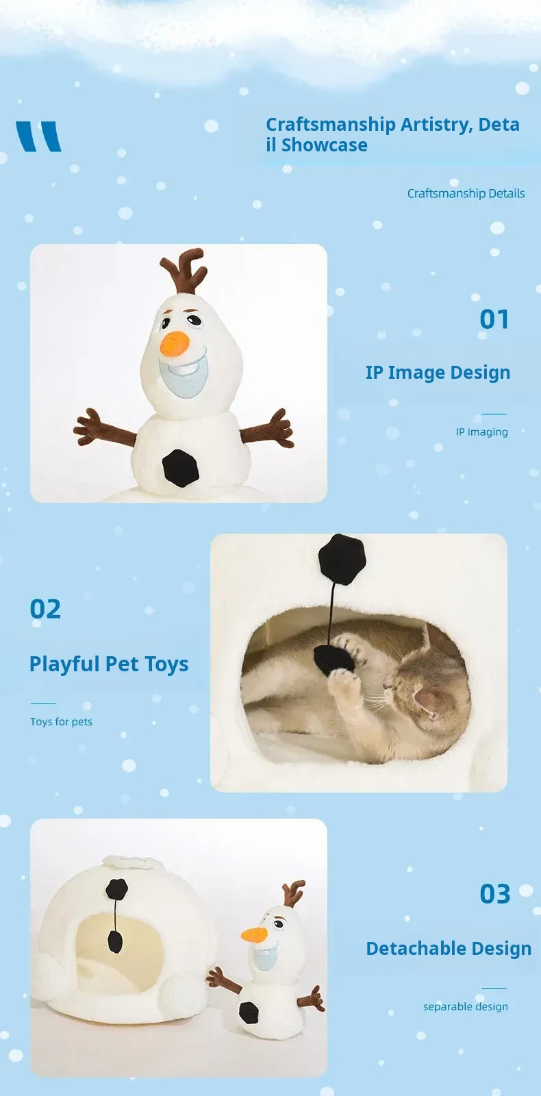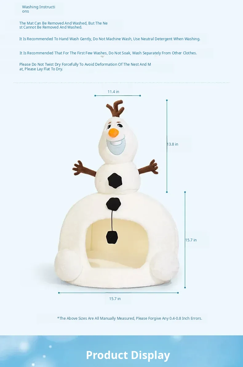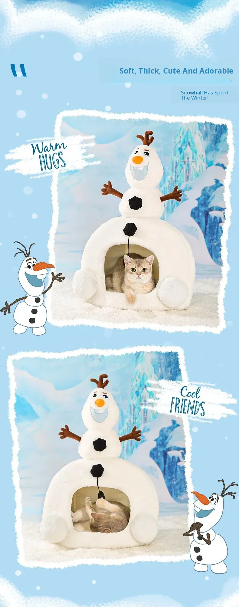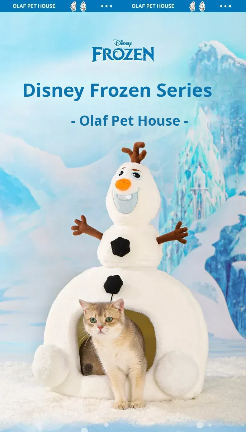 Disney Frozen Cozy Cat Cave - Winter Warm Dog House with Plush Mat, Perfect for Christmas and Cold Days, Featuring Adorable Snowman Design