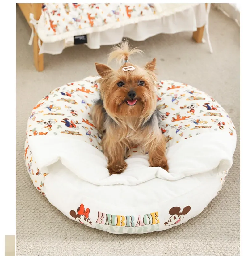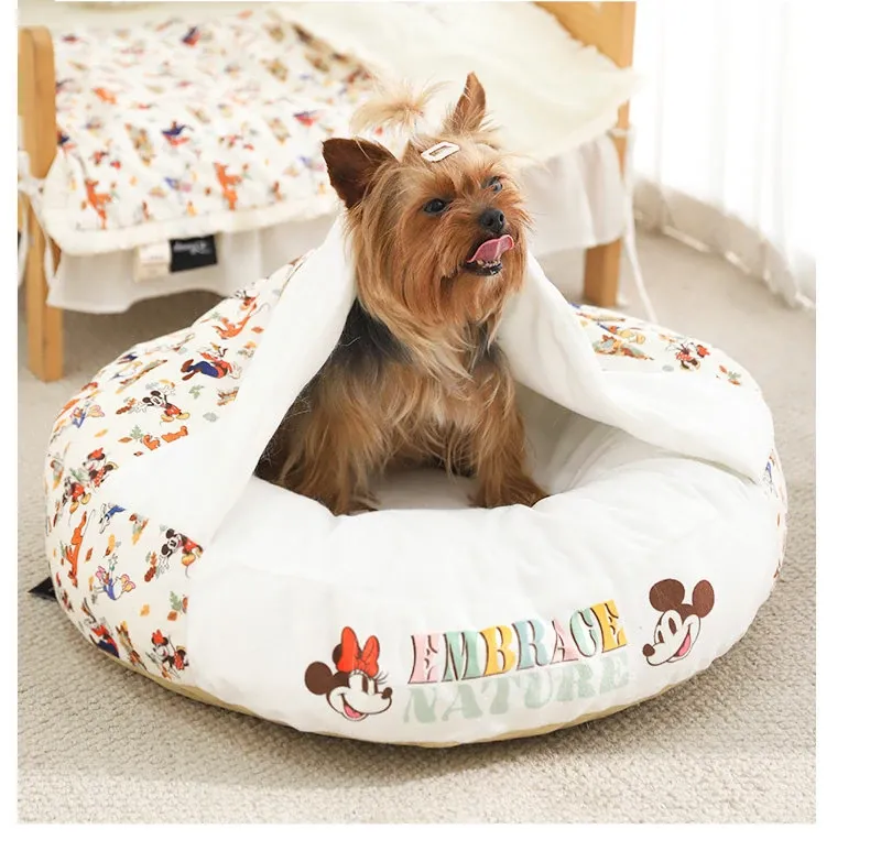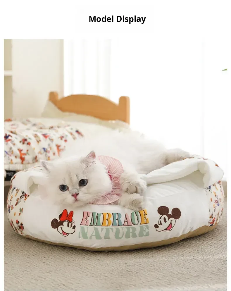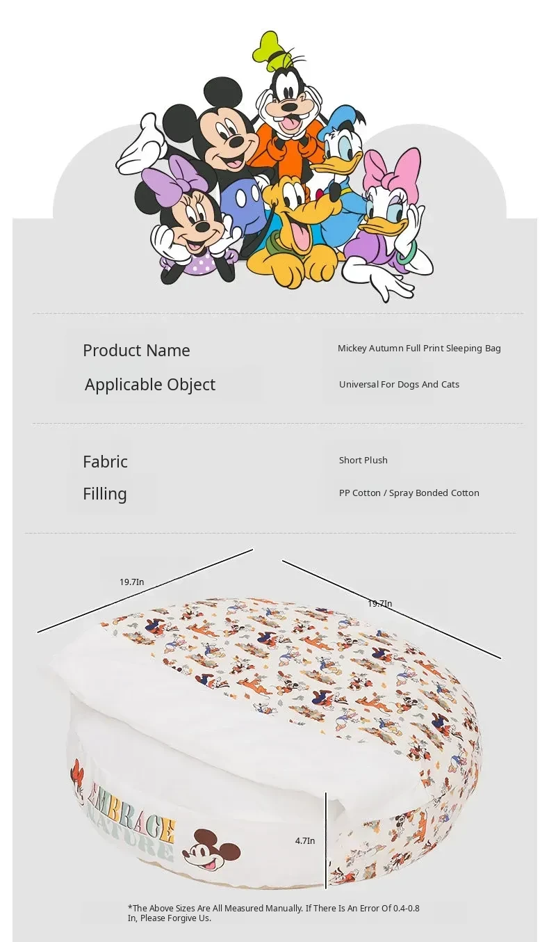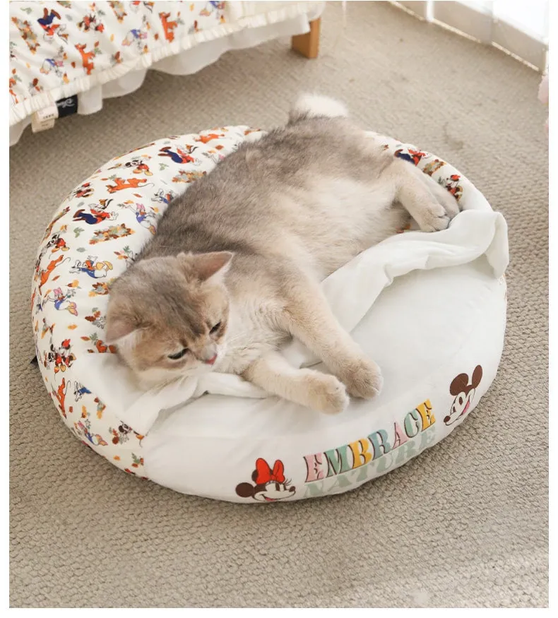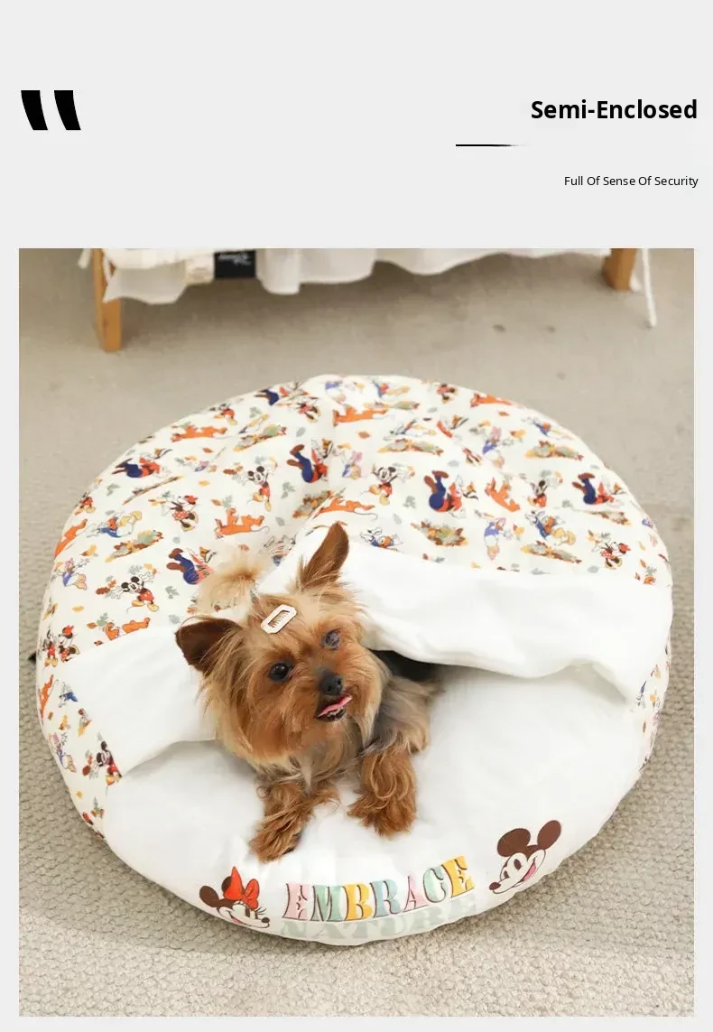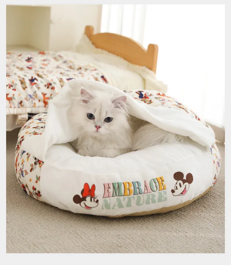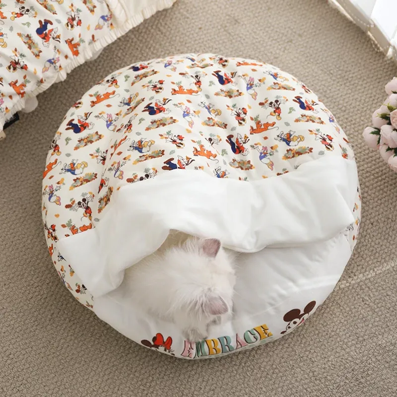 Disney Mickey Series Autumn Full Print Sleeping Bag Cat Nest - Cozy Enclosed Pet Bed for Dogs and Cats, All-Season Mat for Ultimate Comfort