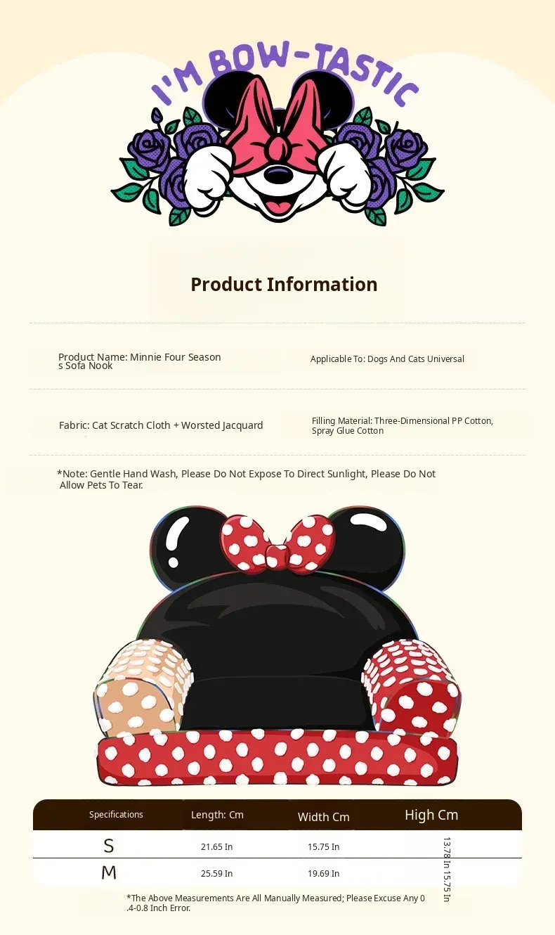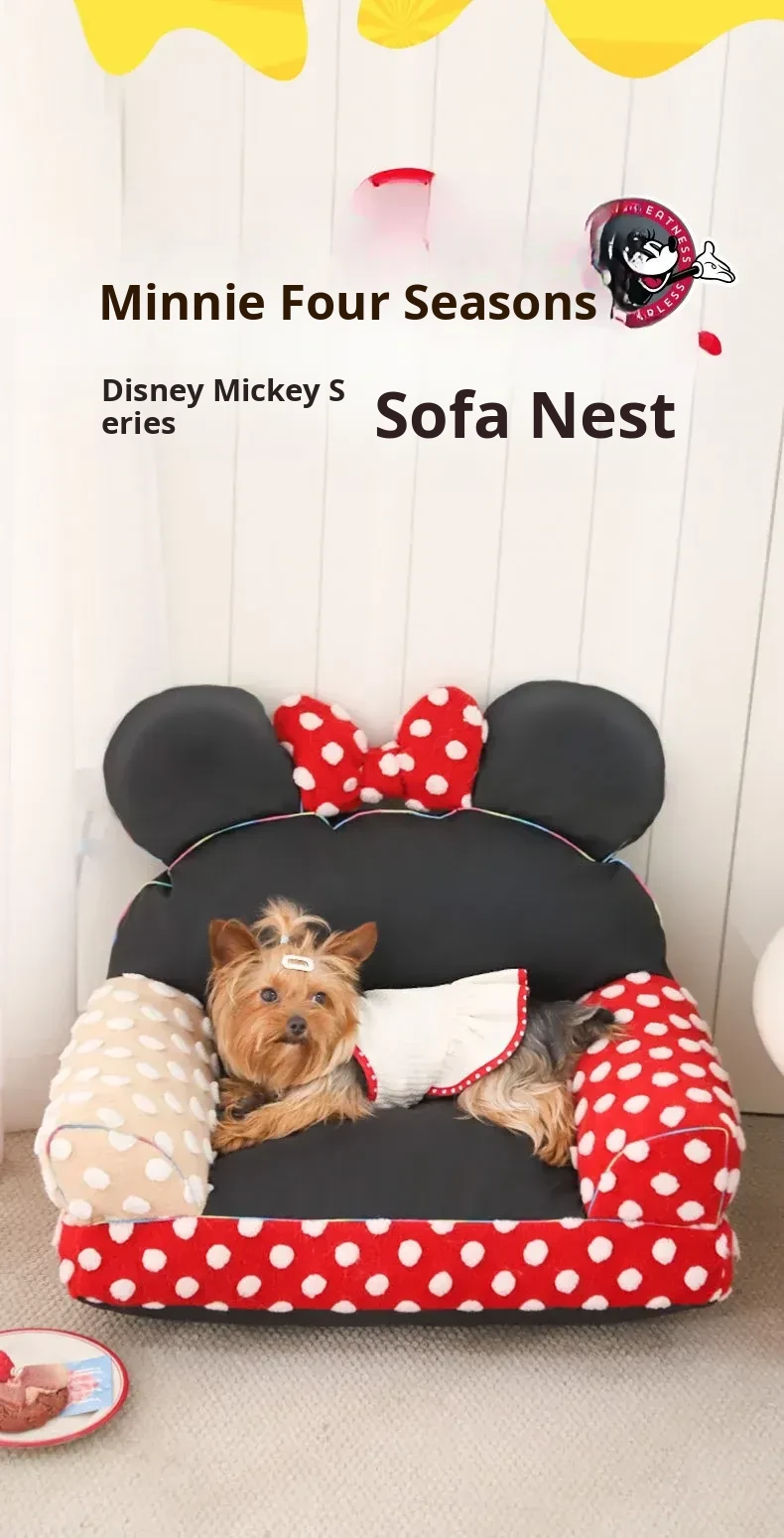 Disney Mickey Series Minnie Sofa Bed for Dogs - Removable and Washable Cushion, Perfect for Small Dogs and Cats, All-Season Use