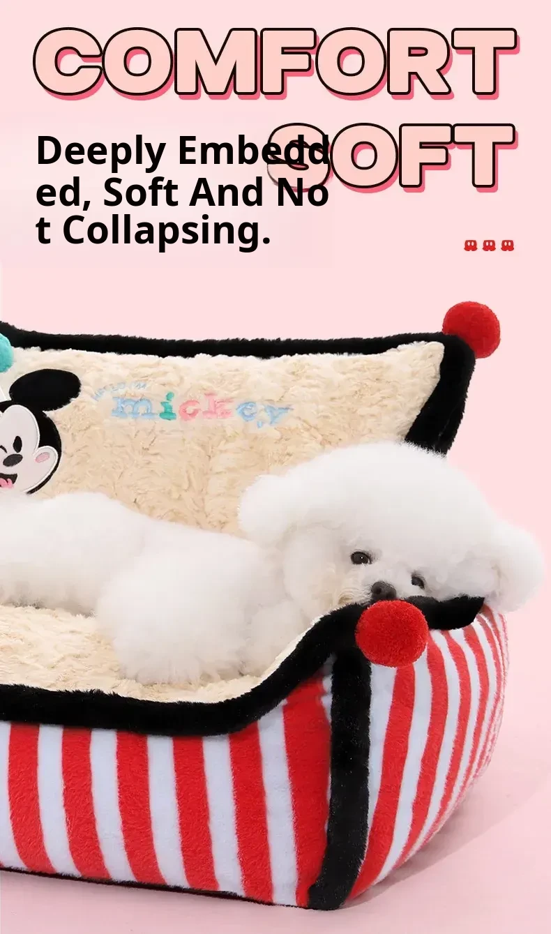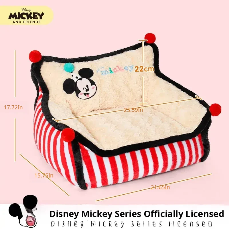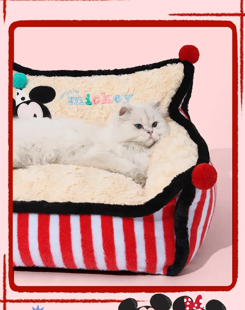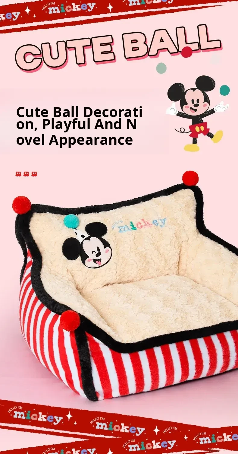 Disney Mickey Striped Sofa Dog Bed - Cozy Winter Sleeping Nest for Dogs and Cats, Universal for All Seasons