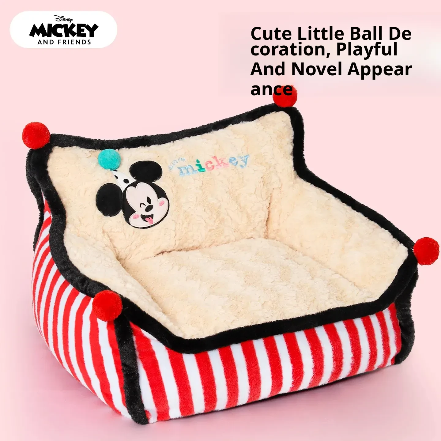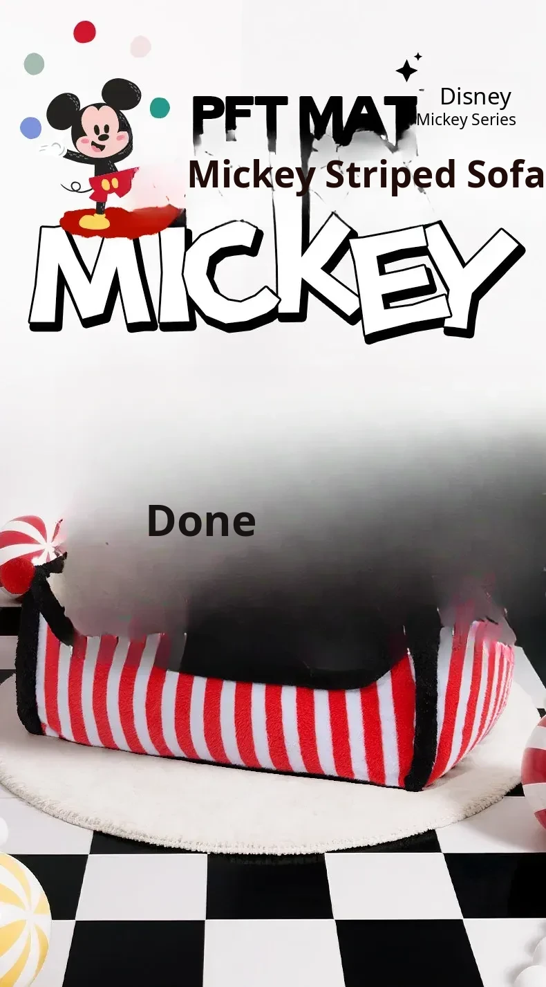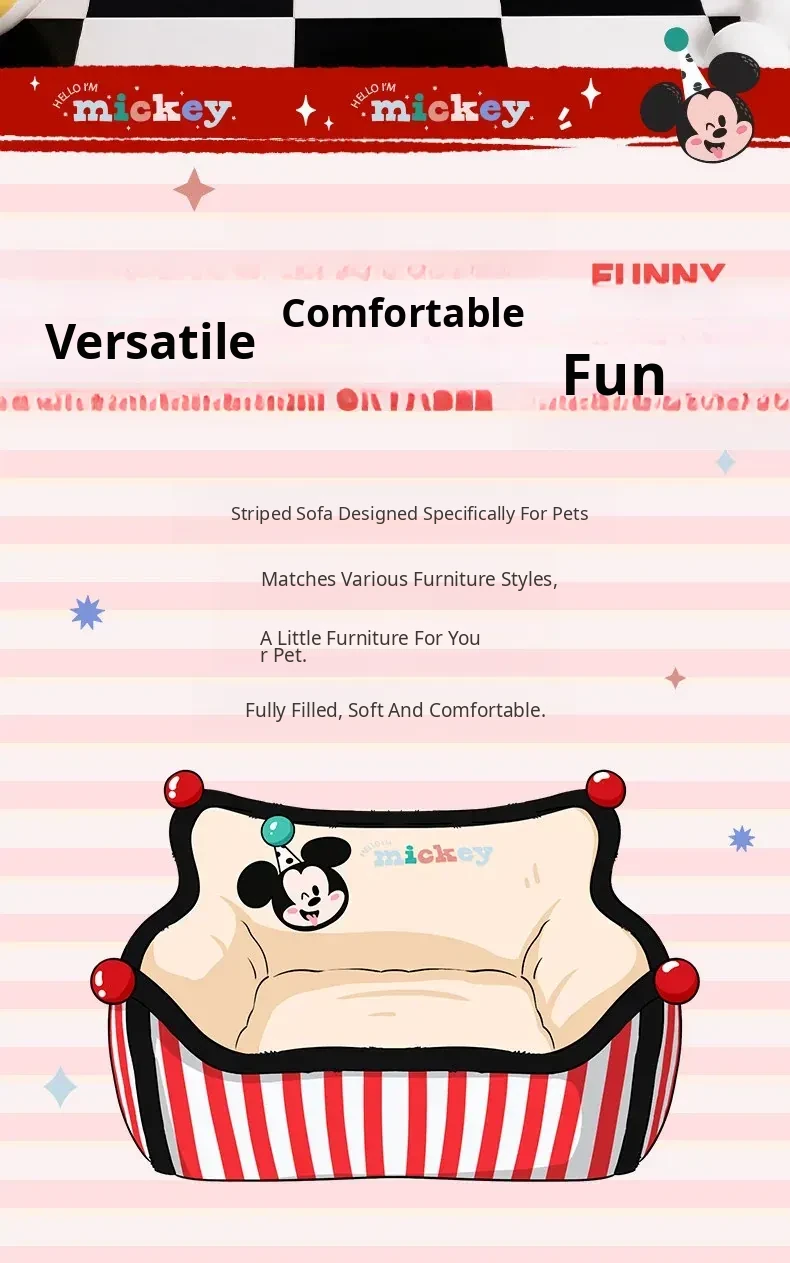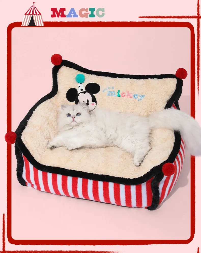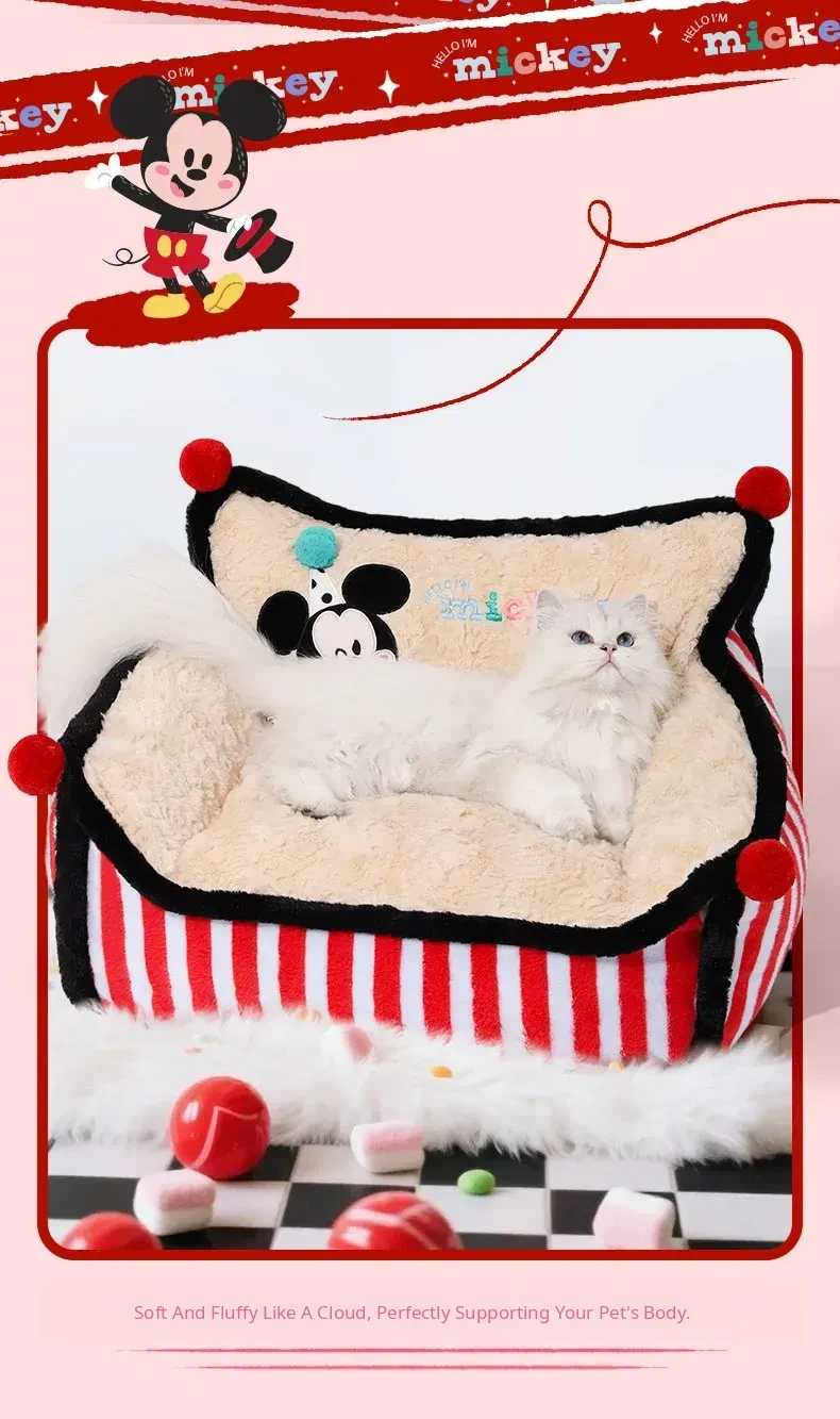 Disney Mickey Striped Sofa Dog Bed - Cozy Winter Sleeping Nest for Dogs and Cats, Universal for All Seasons