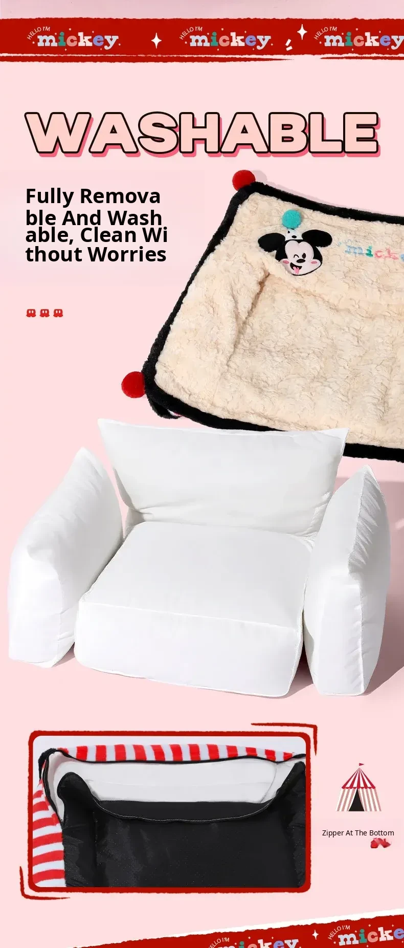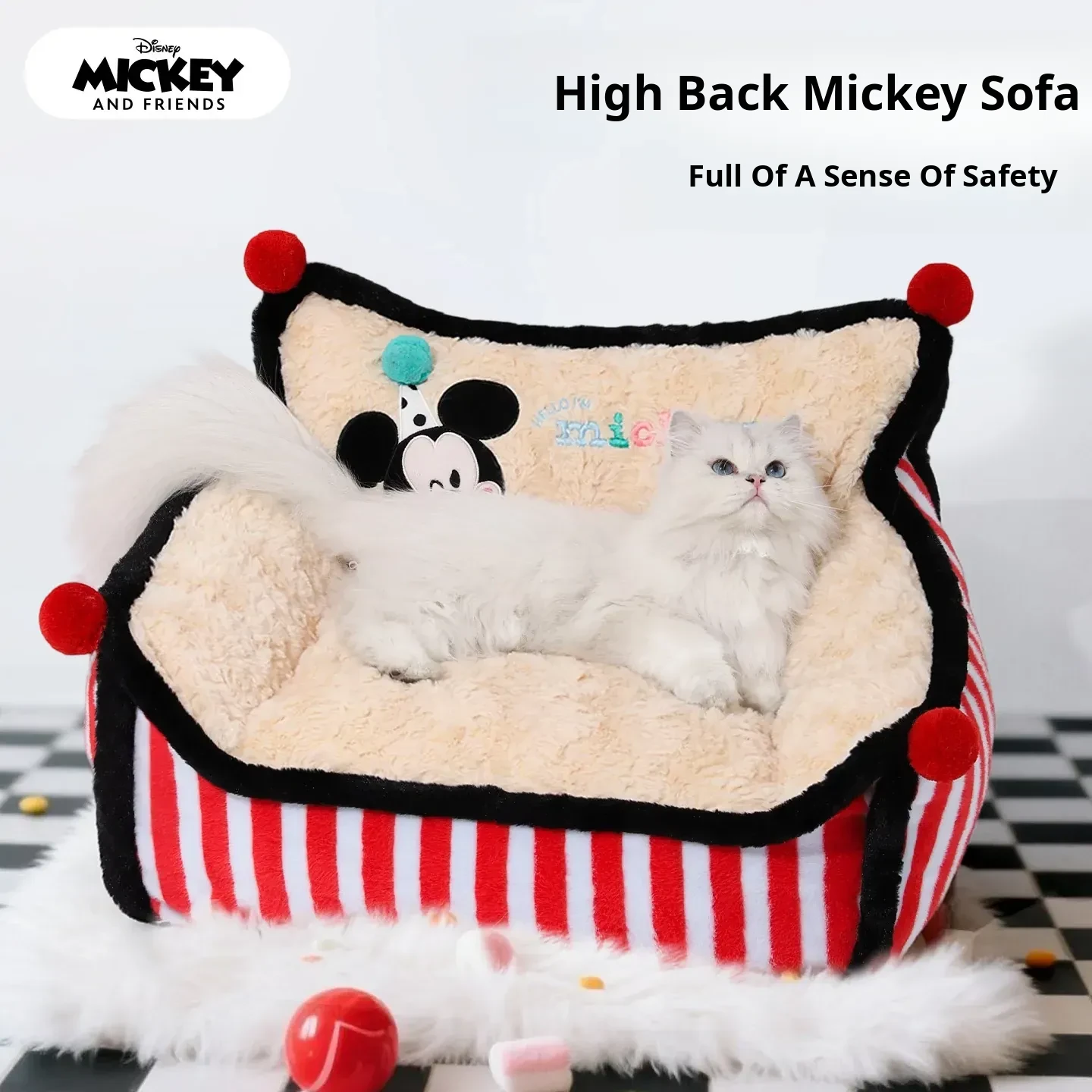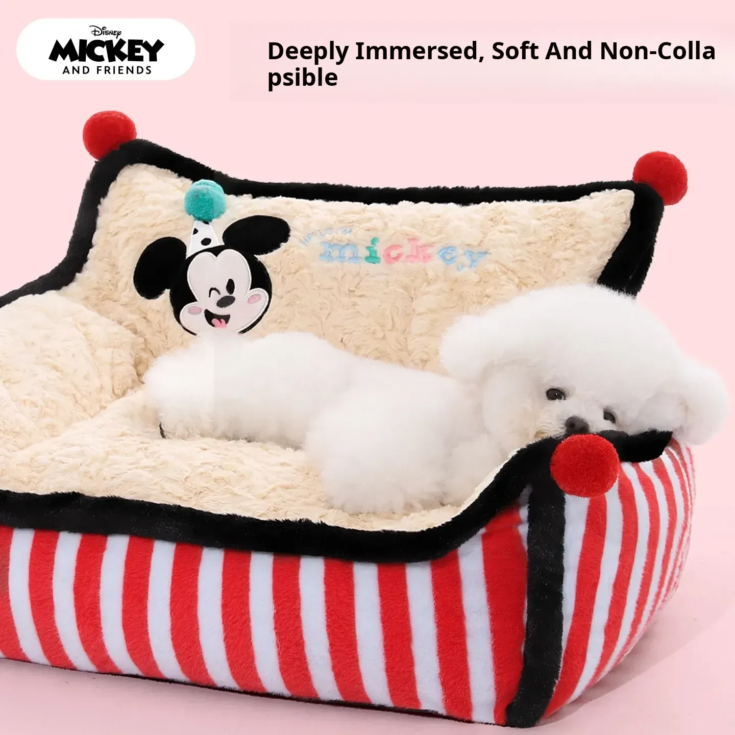 Disney Mickey Striped Sofa Dog Bed - Cozy Winter Sleeping Nest for Dogs and Cats, Universal for All Seasons