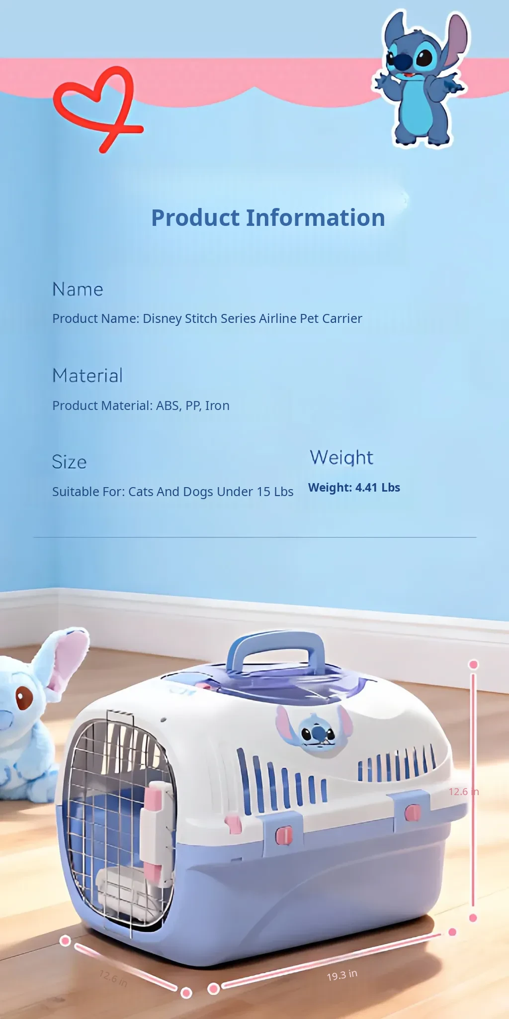 Disney Pet Air Travel Carrier for Cats & Dogs - Portable & Convenient Travel Crate for Pets, Ideal for Car Use and Outdoor Adventures