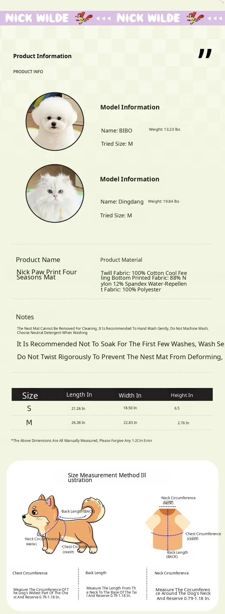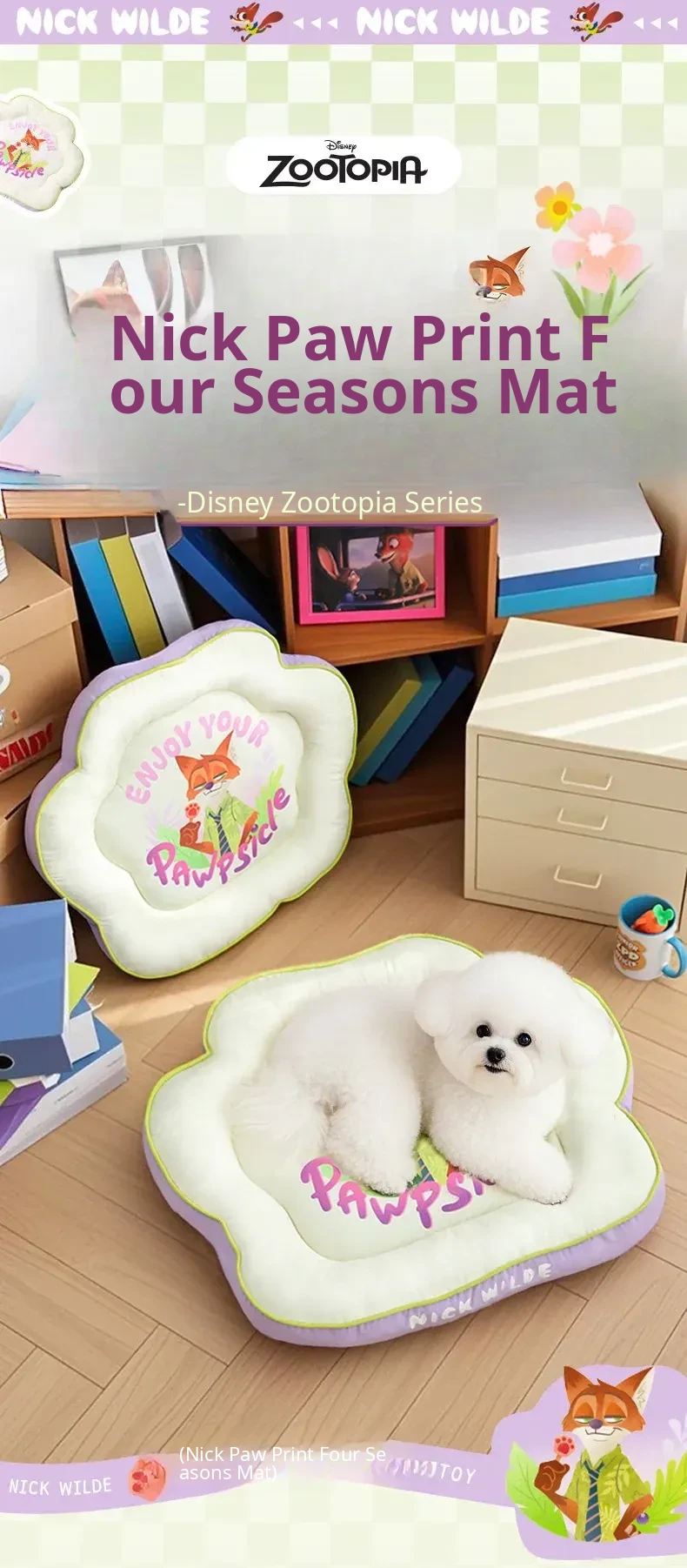 Disney Zootopia Nick Paw Print Seasonal Mat for Small to Medium Dogs - Summer Waterproof Cooling Pad for Cats and Dogs