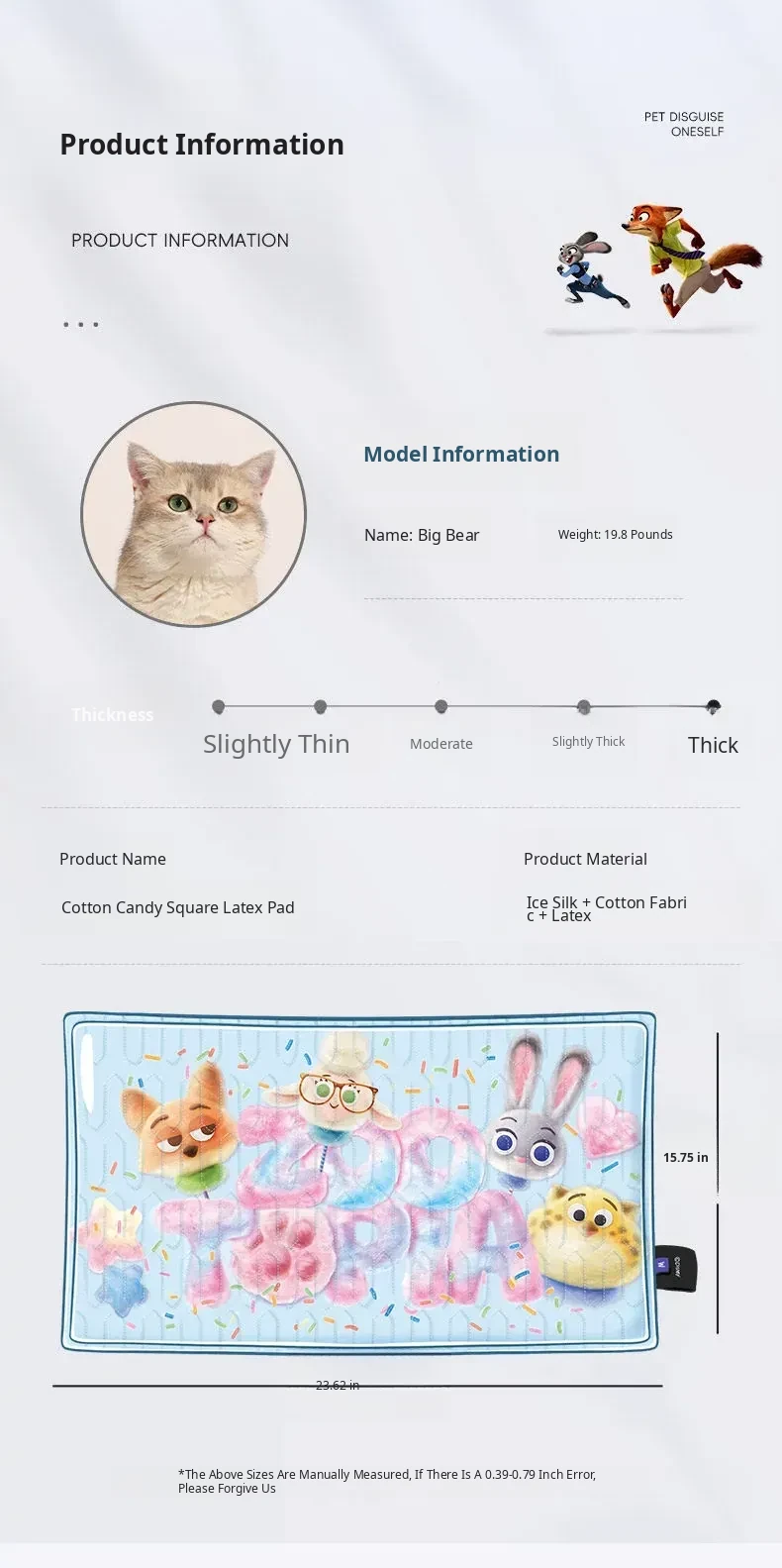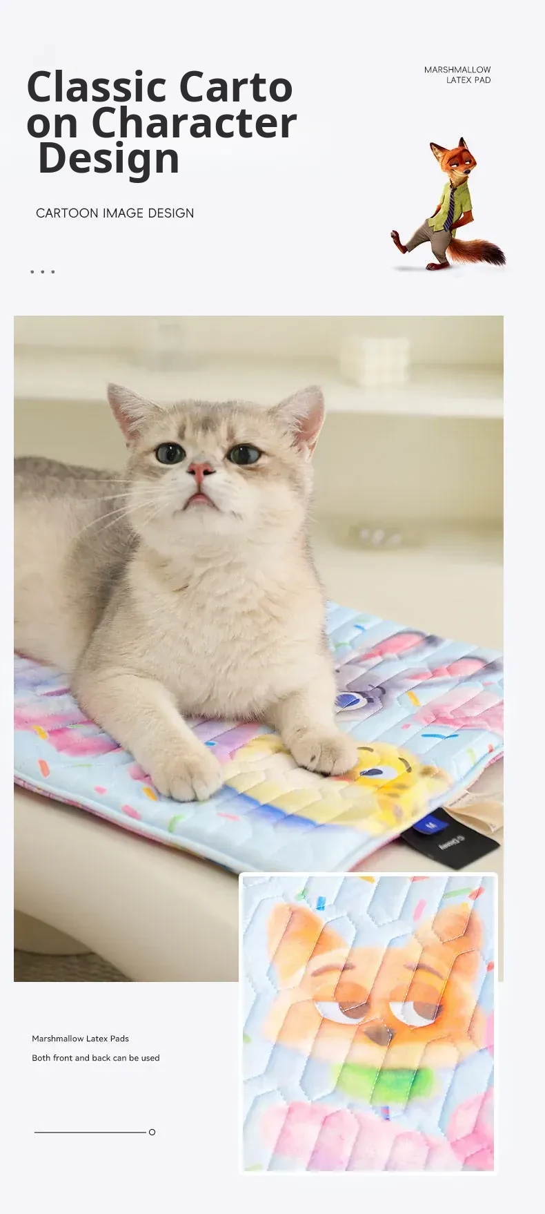 Disney Zootopia Series Cat Square Latex Mat - Summer Pet Cooling Pad with Ice Silk for Dogs and Cats, Perfect for Keeping Your Furry Friends Cool and Comfortable!