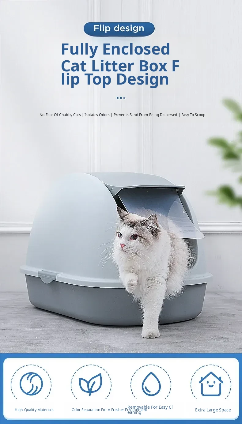 Extra Large Closed Cat Litter Box - Splash-Proof, Odor-Resistant Toilet for Maine Coons and Large Cats - Perfect Solution for a Clean and Fresh Home!
