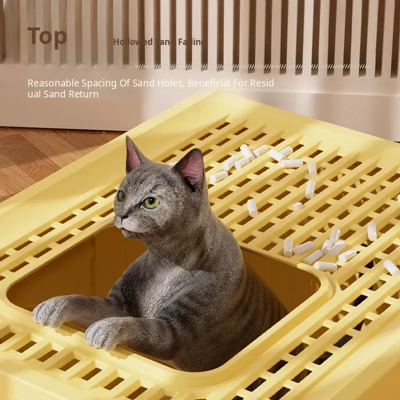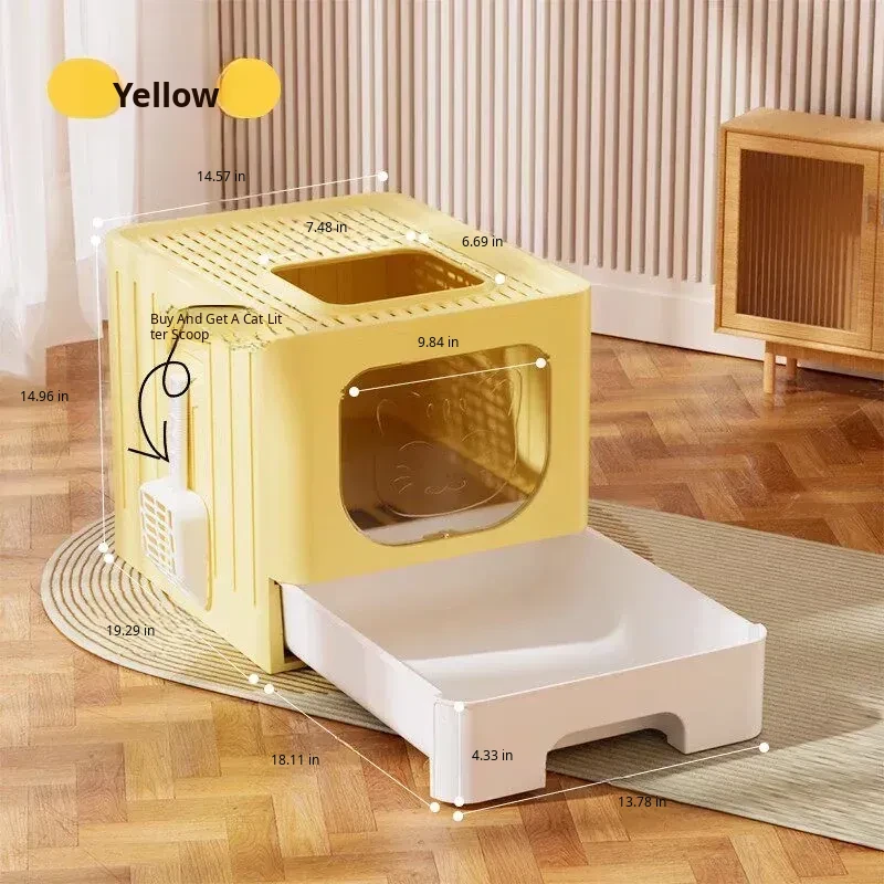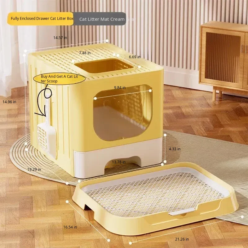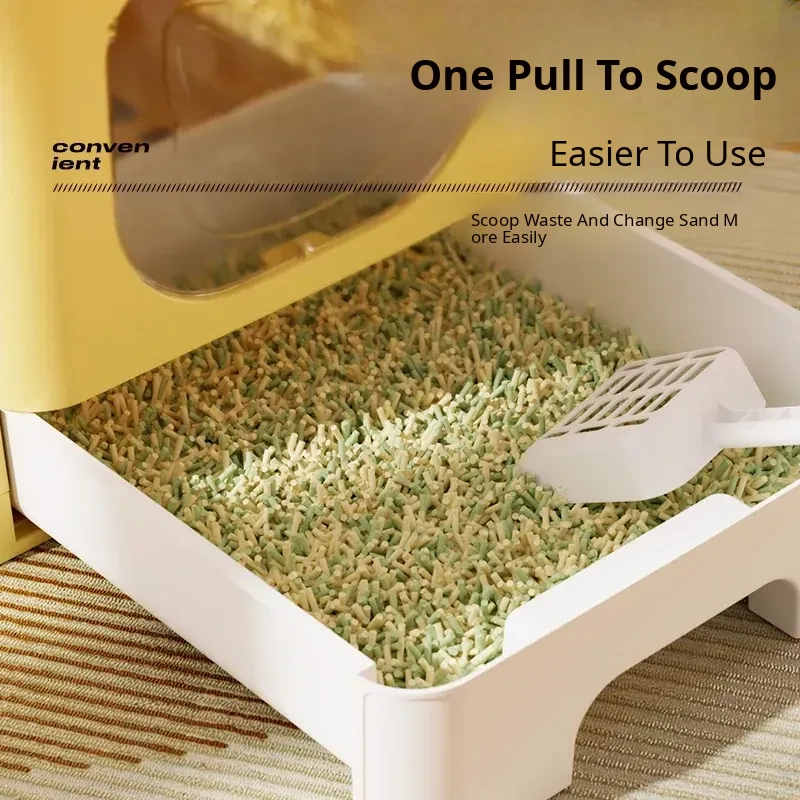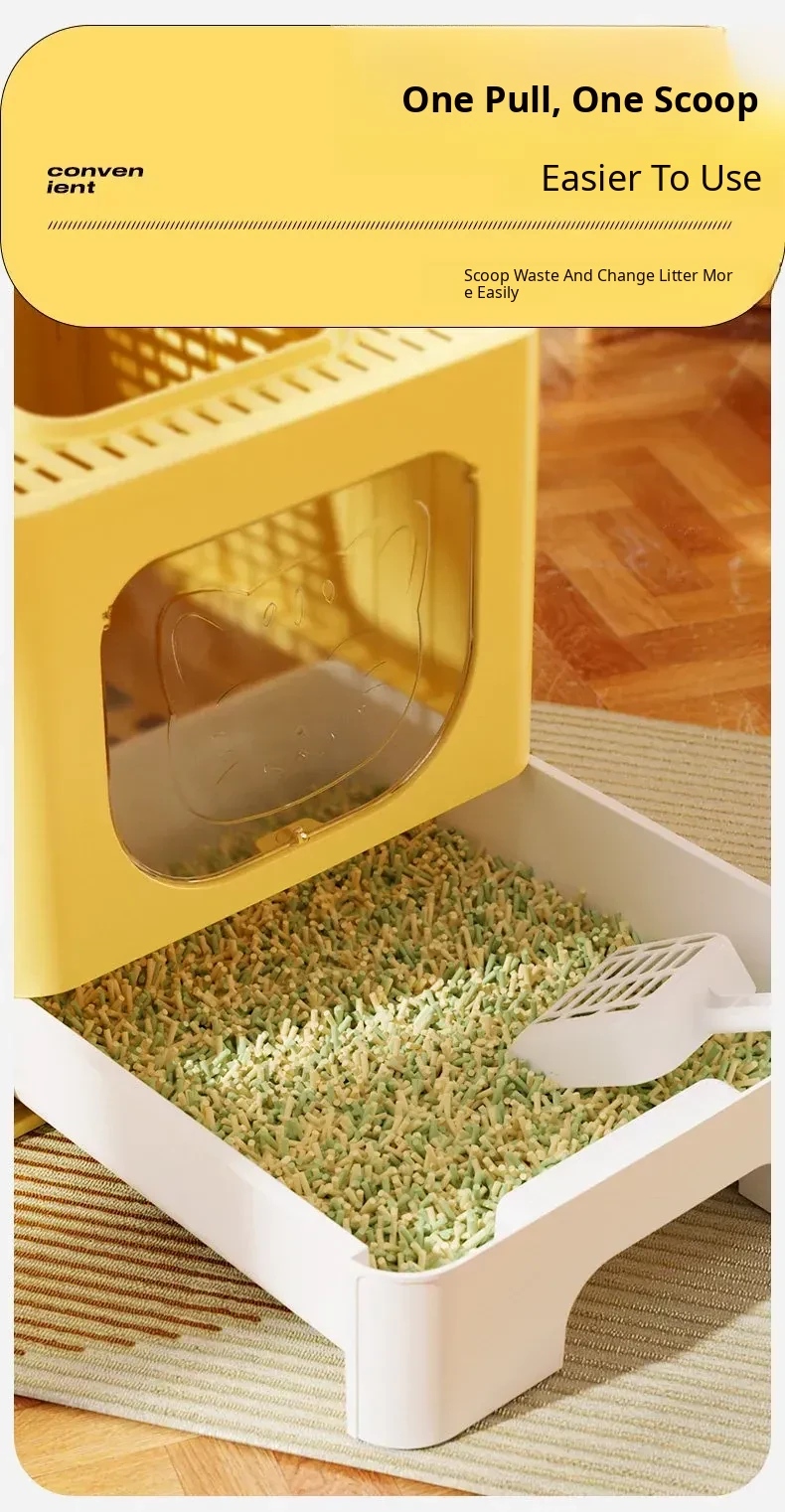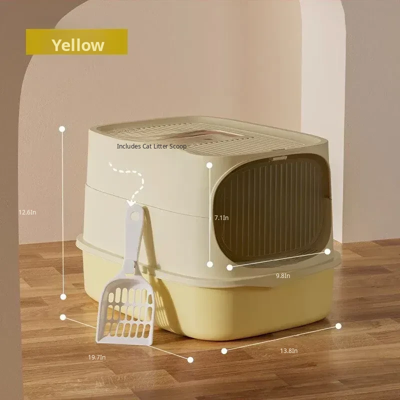 [Luxury Thickened and Enlarged] Enclosed Cat Litter Box (Yellow) (15kg Available)