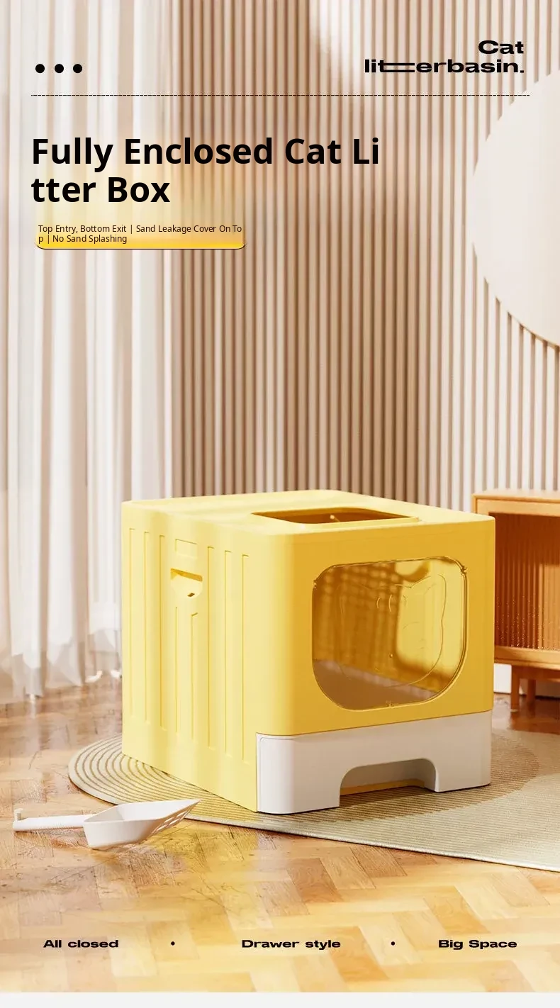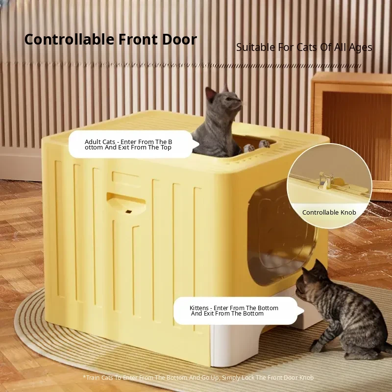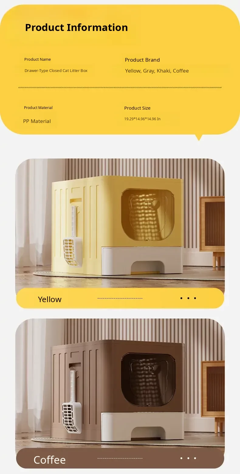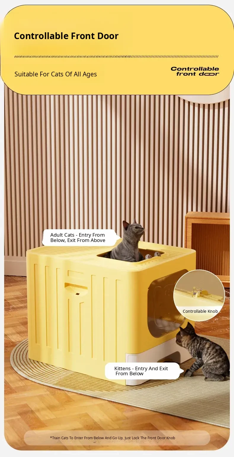 [Luxury Thickened and Enlarged] Enclosed Cat Litter Box (Yellow) (15kg Available)