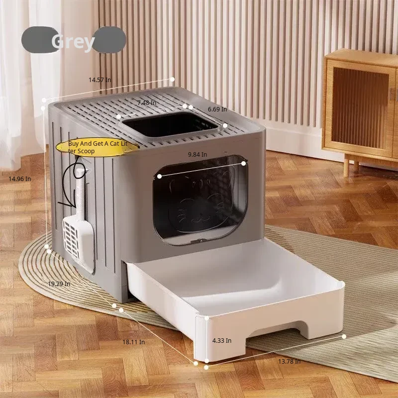 [Luxury Thickened and Enlarged] Enclosed Cat Litter Box (Grey) (Available in 15kg Sizes)