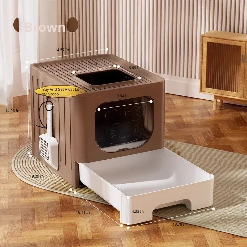 [Luxury Thickened and Enlarged] Enclosed Cat Litter Box (Brown) (Available 15kg