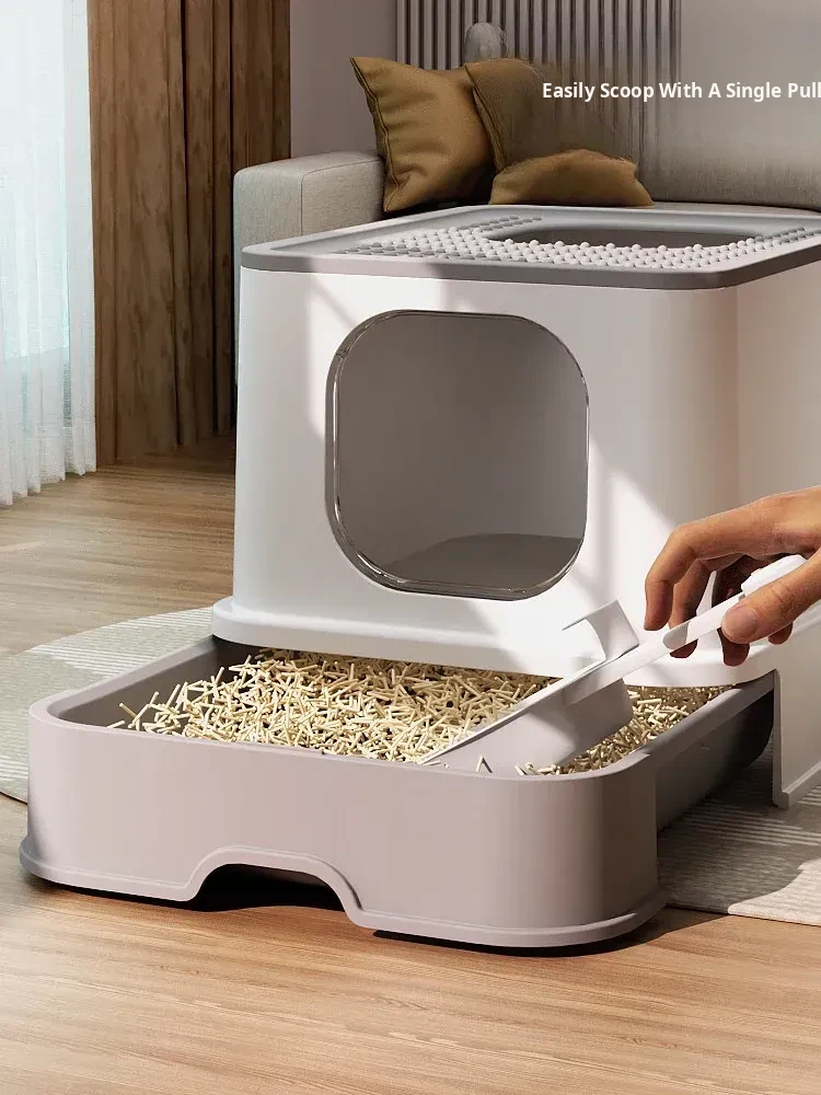 Large Double Door Drawer Top Entry-Mousse Coffee-Free Cat Litter Scoop
