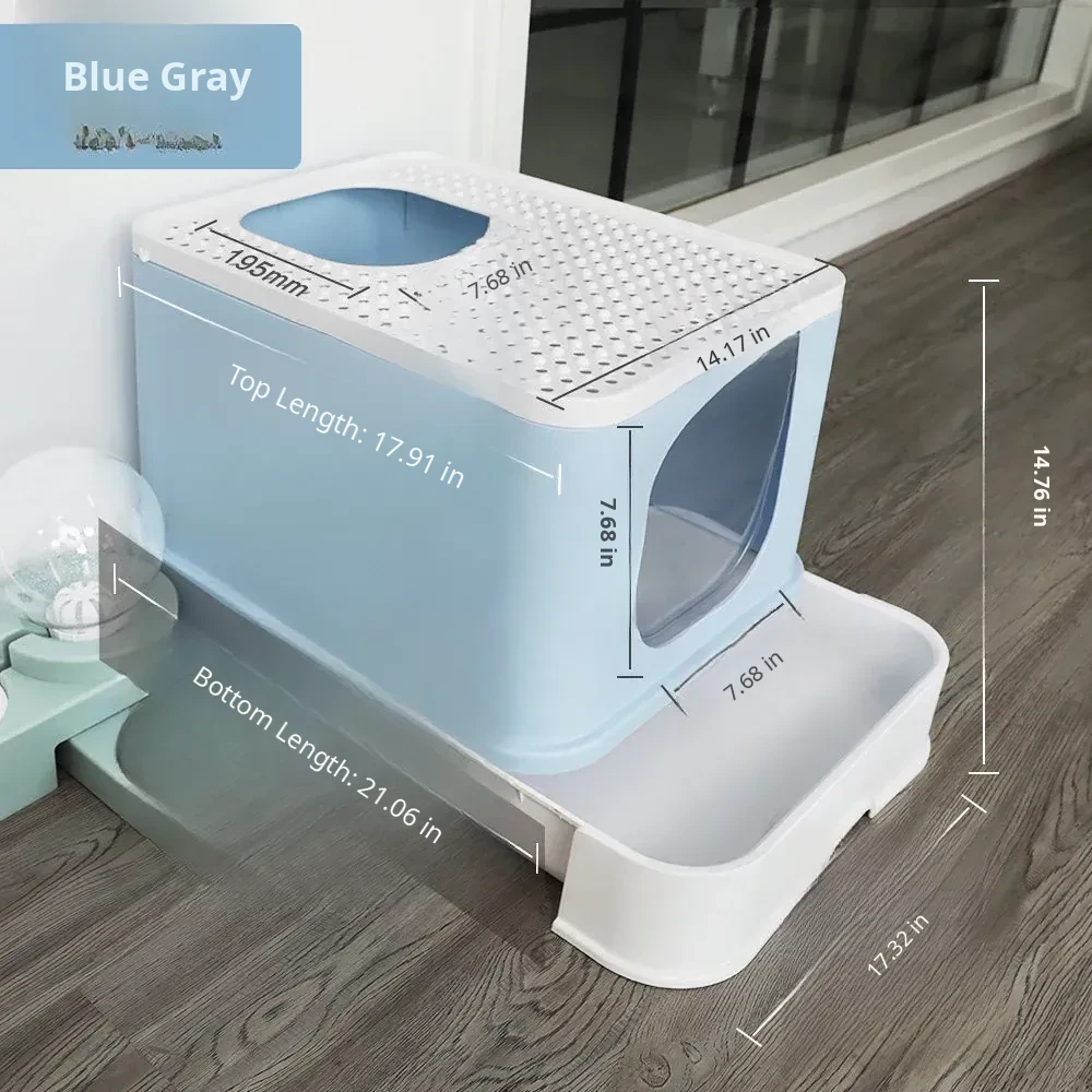 Large Double Door Drawer Top Entry - Blue Gray - Free Cat Litter Scoop - Limited Edition