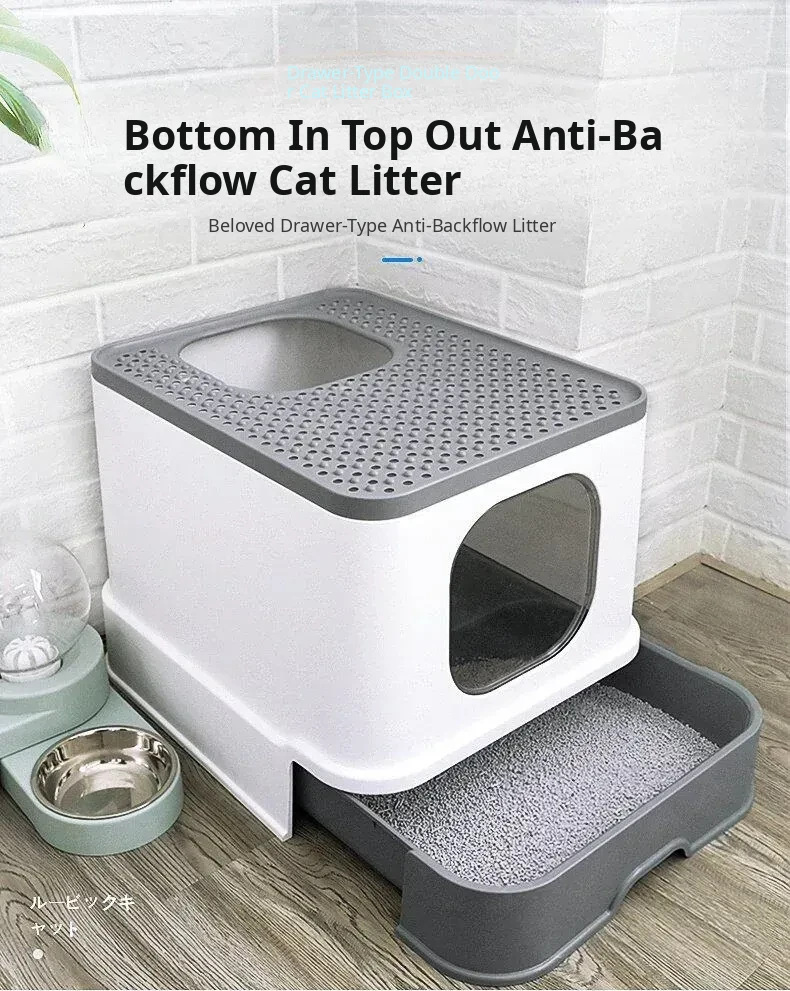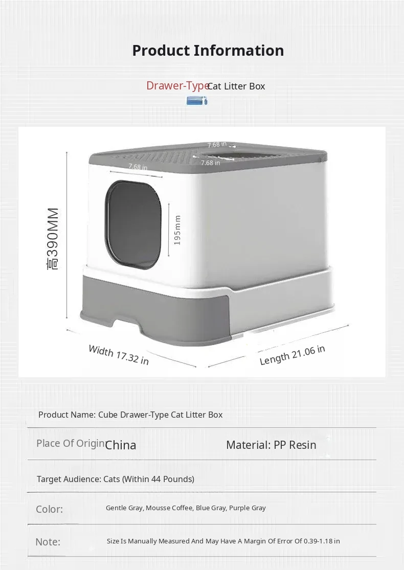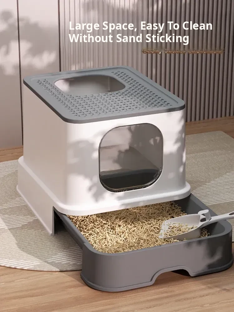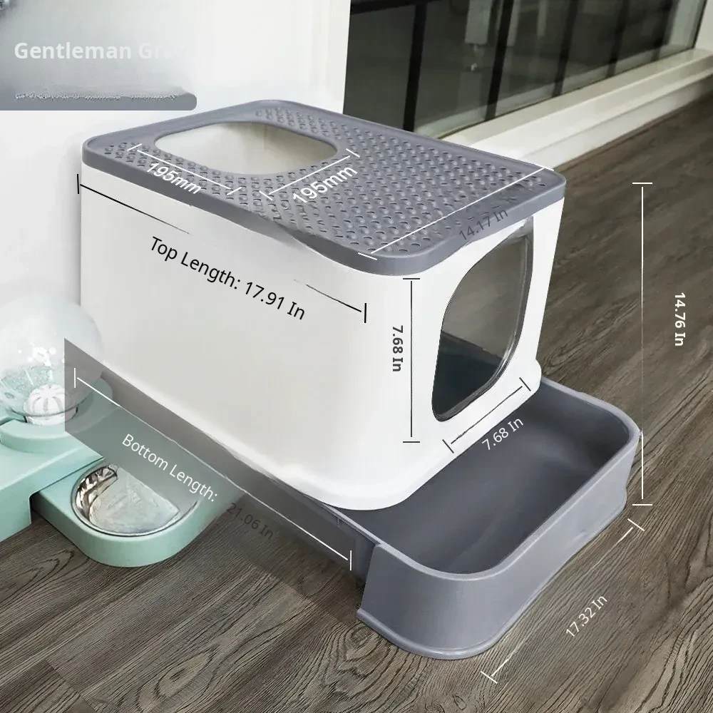 (Hot-Selling Model) Large Double-Door Drawer Top Entry - Gentleman Gray - Free Cat Litter Scoop - Recoinended by the Owner