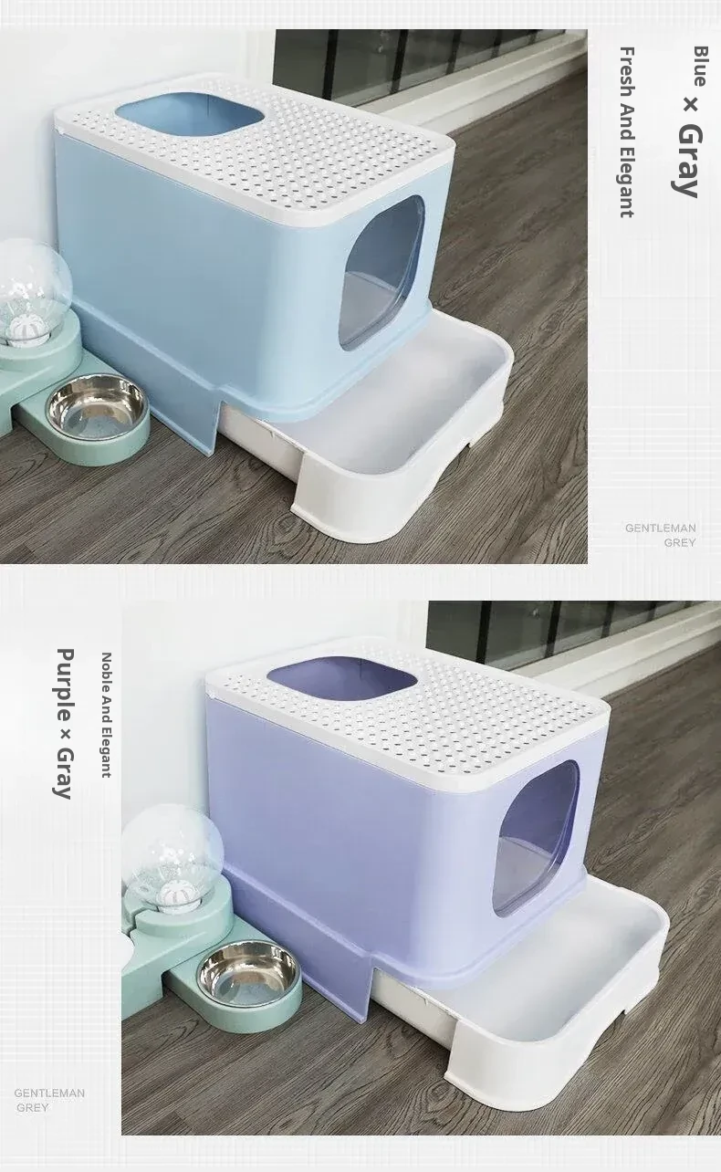 Large Double-Door Drawer Top Entry - Purple Gray - Free Cat Litter Scoop - Limited Edition