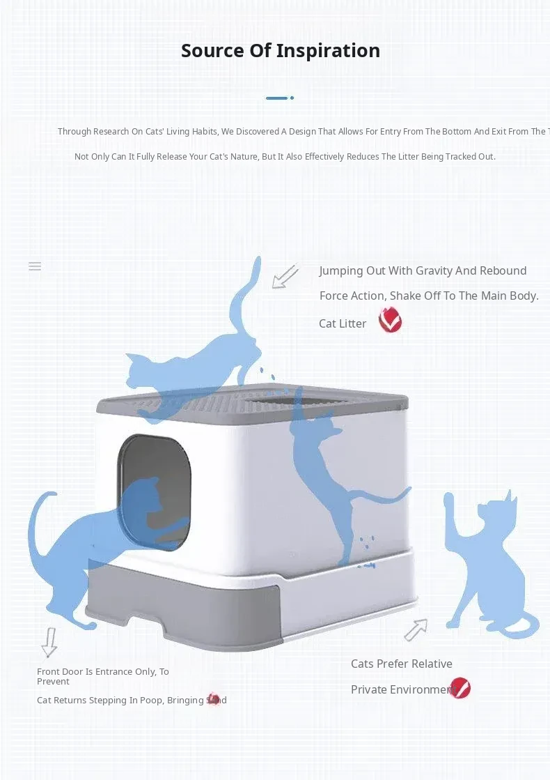 Extra Large Enclosed Cat Litter Box with Splash-Proof Top – Ideal for Kittens and Large Cats, Perfect for Mess-Free Cleanups!