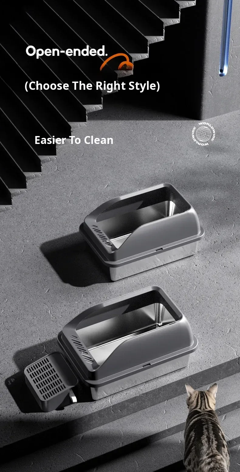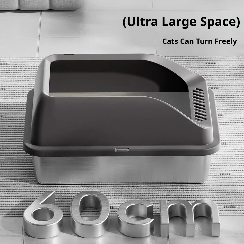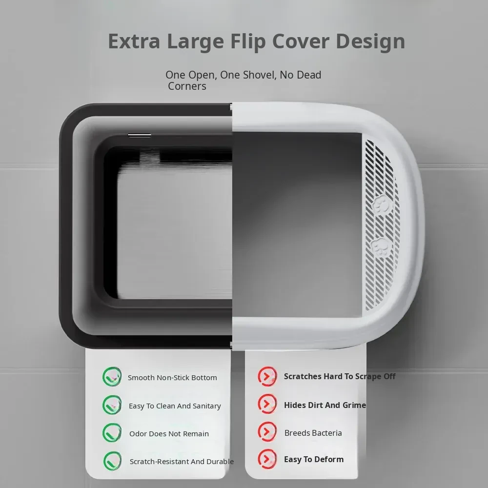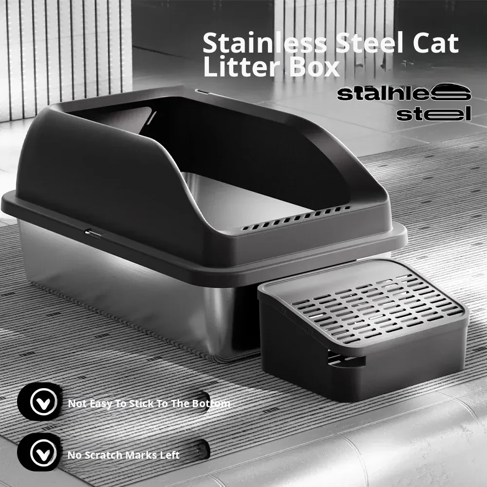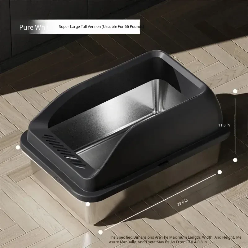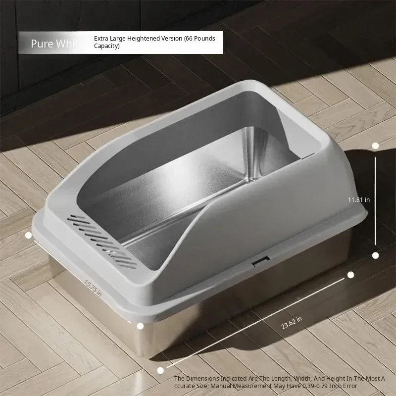Extra Large Stainless Steel Cat Litter Box - High Sides to Prevent Spills, Semi-Closed Design for Convenient Use, Open-Style Pet Litter Tray专为您的爱猫设计,确保干净舒适的环境!