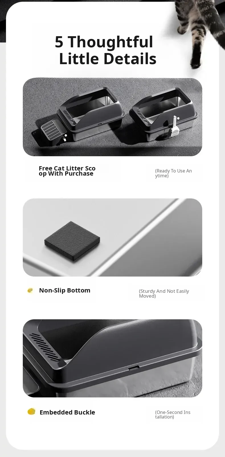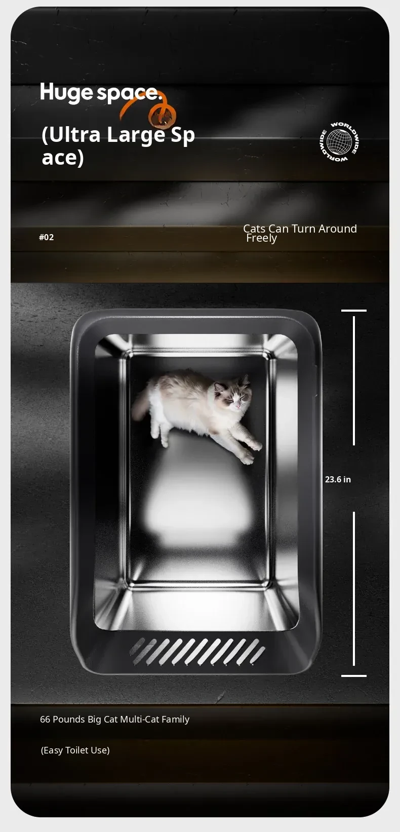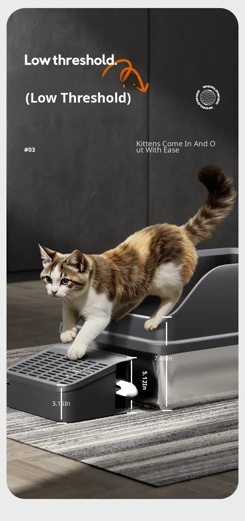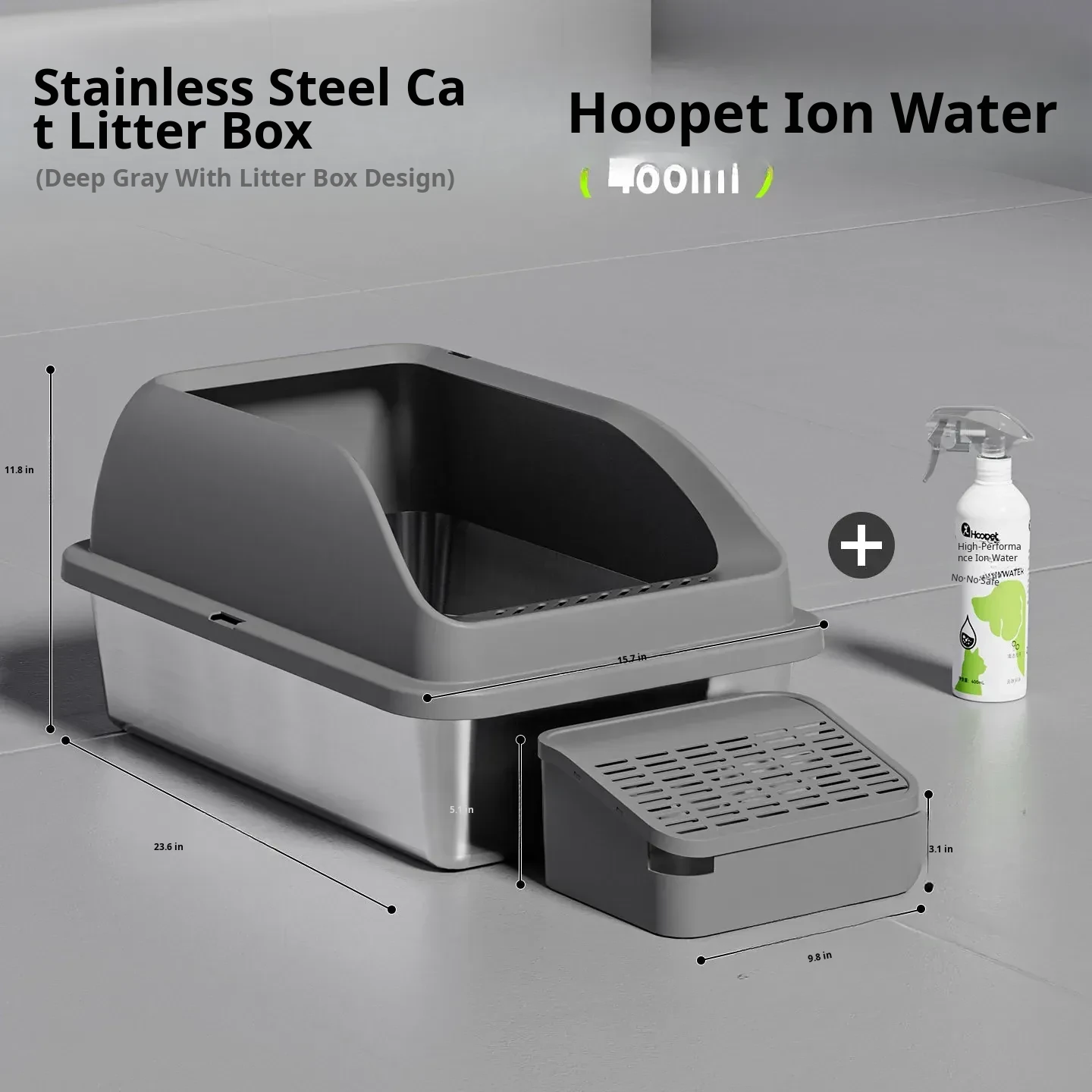 Extra Large Stainless Steel Cat Litter Box - High Sides to Prevent Spills, Semi-Closed Design for Convenient Use, Open-Style Pet Litter Tray专为您的爱猫设计,确保干净舒适的环境!