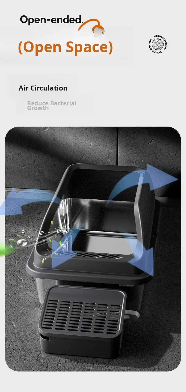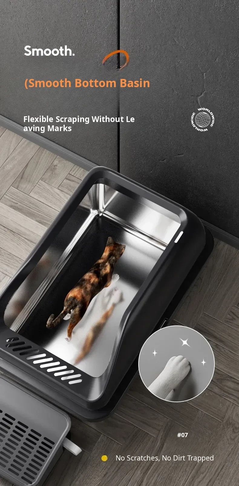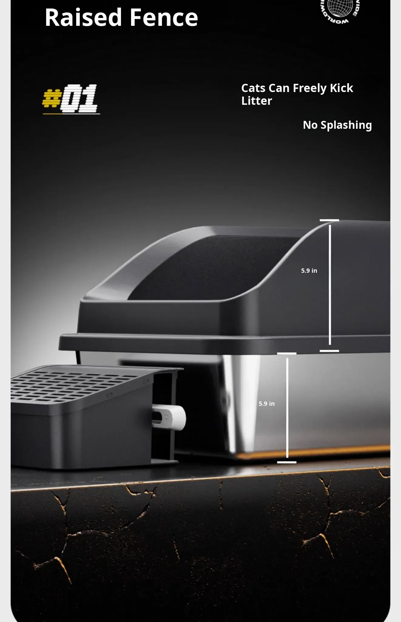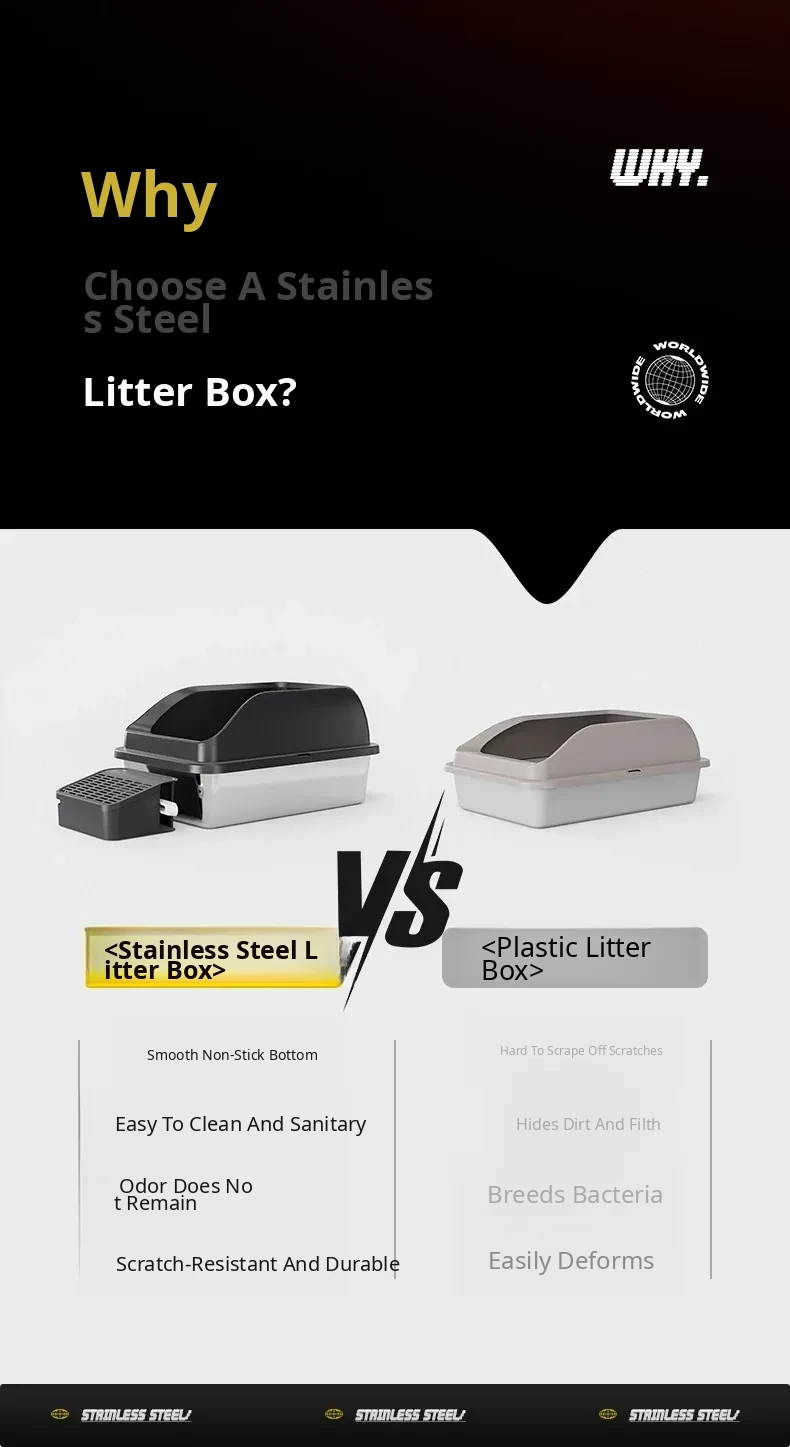 Extra Large Stainless Steel Cat Litter Box - High Sides to Prevent Spills, Semi-Closed Design for Convenient Use, Open-Style Pet Litter Tray专为您的爱猫设计,确保干净舒适的环境!
