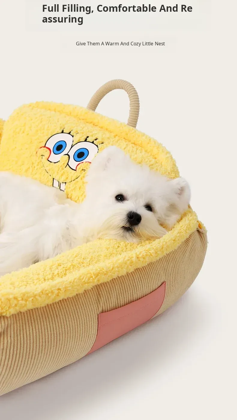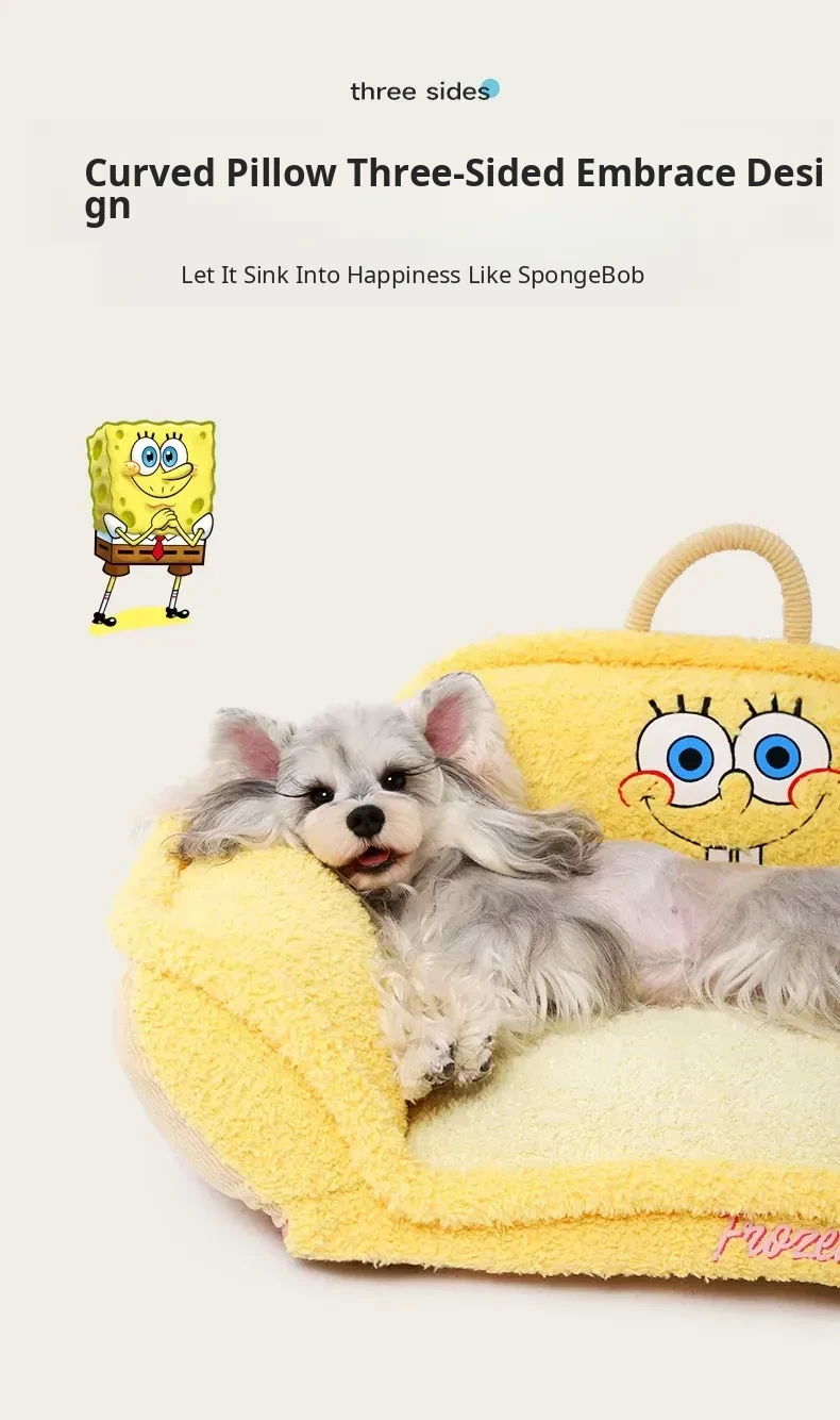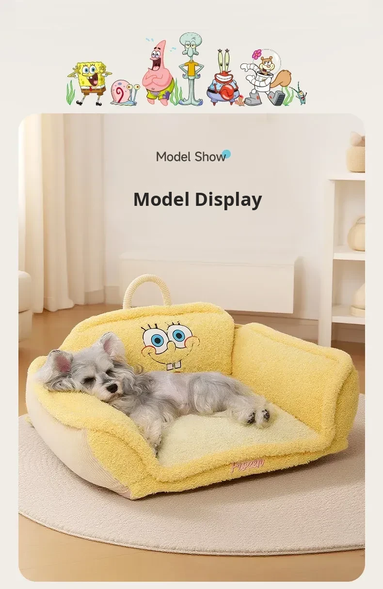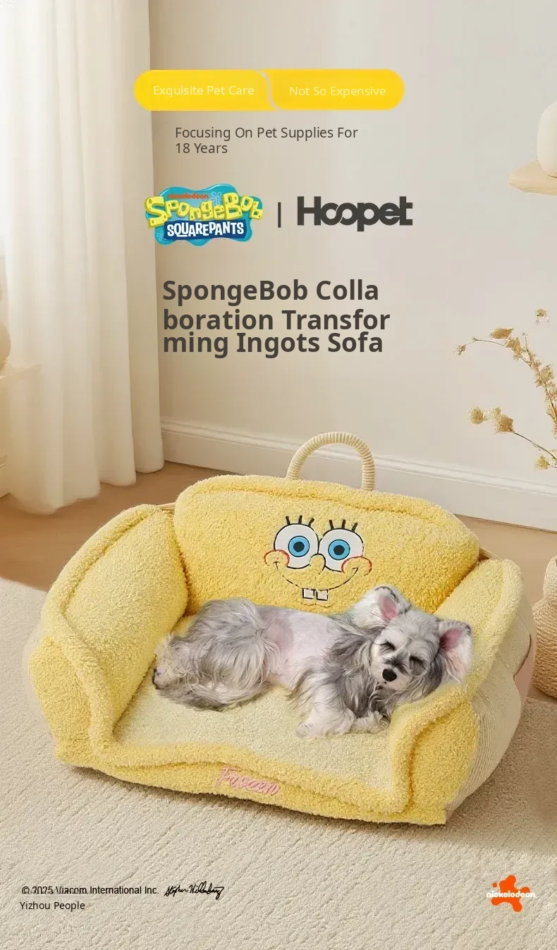 Hoopet × SpongeBob SquarePants Collaboration Cozy Pet Sofa Bed - All-Season, Removable and Washable Sleeping Mat for Small Cats and Dogs